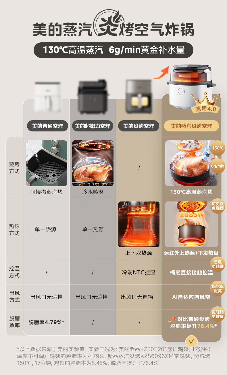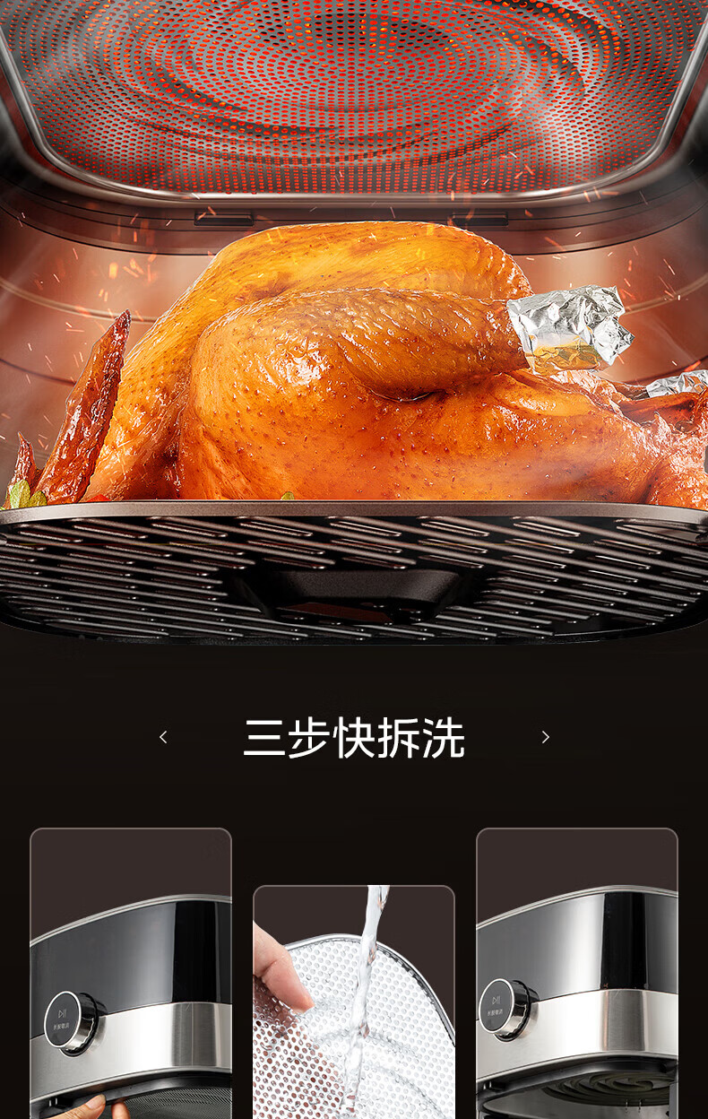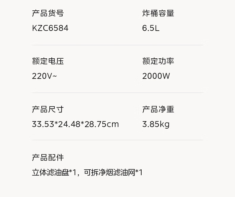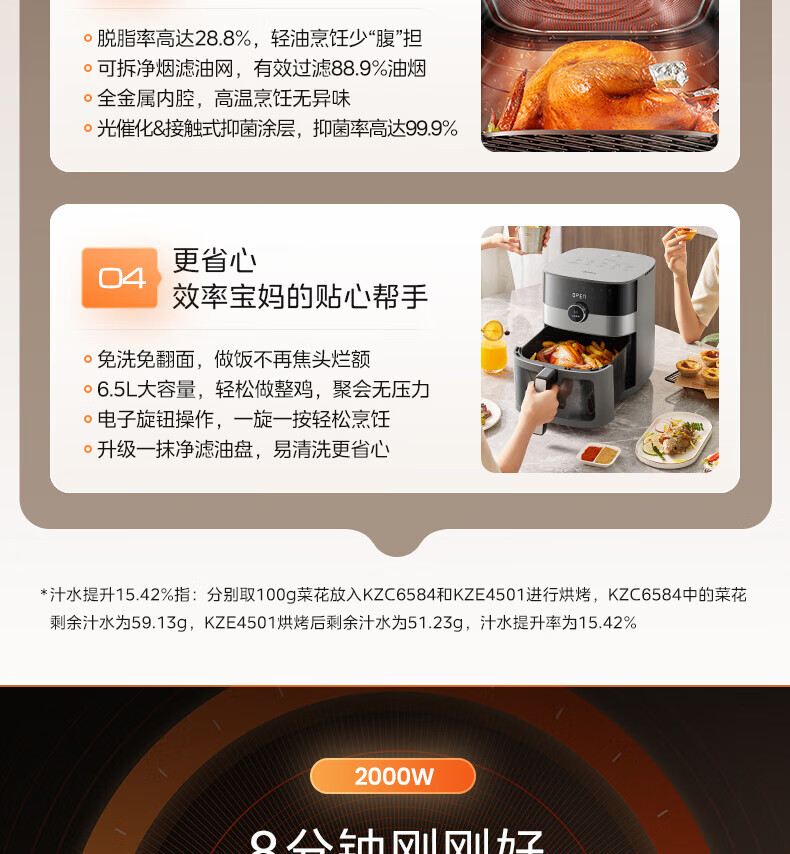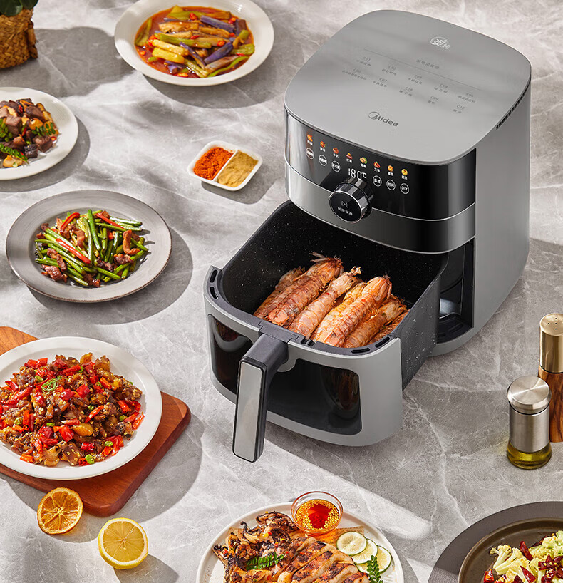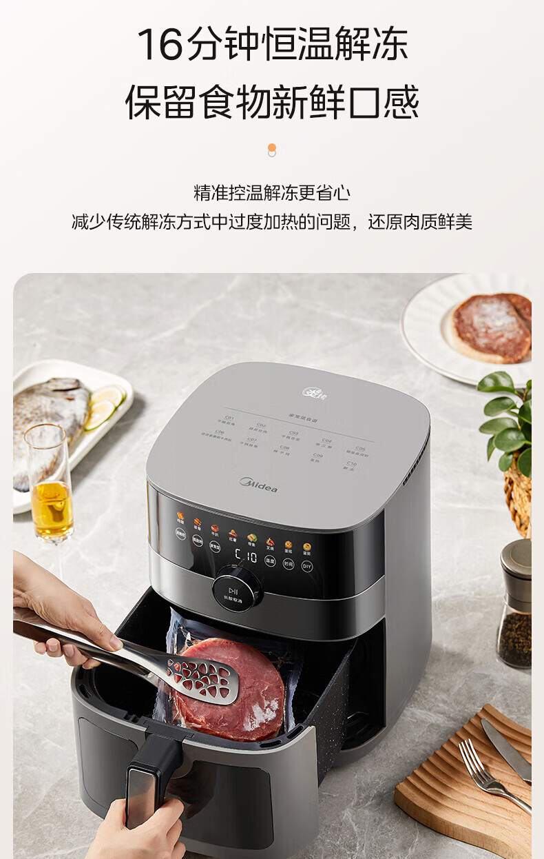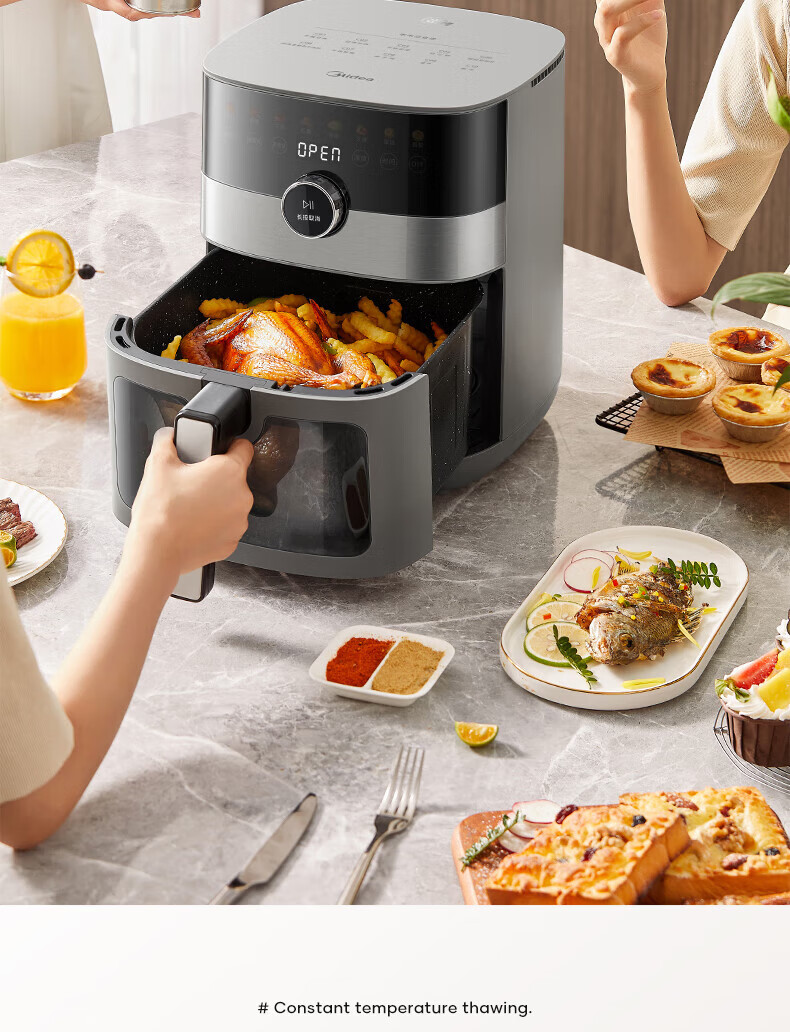 美的(Midea)空气炸锅 炎烤王烹饪机 家用6.5L大容量免翻面多功能 蒸汽嫩炸可视窗口旋钮操控一体煎烤炸锅 MF-KZC6584 6.5L
