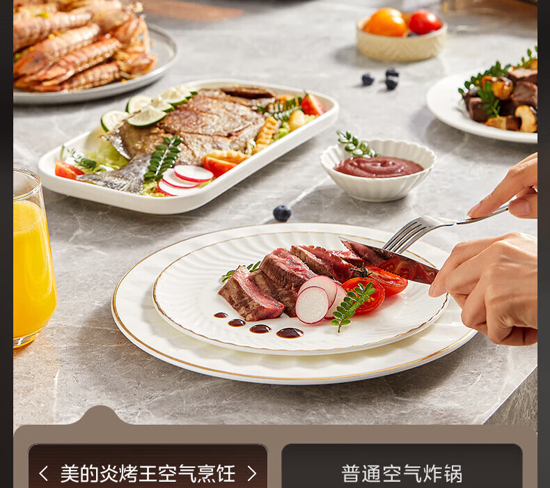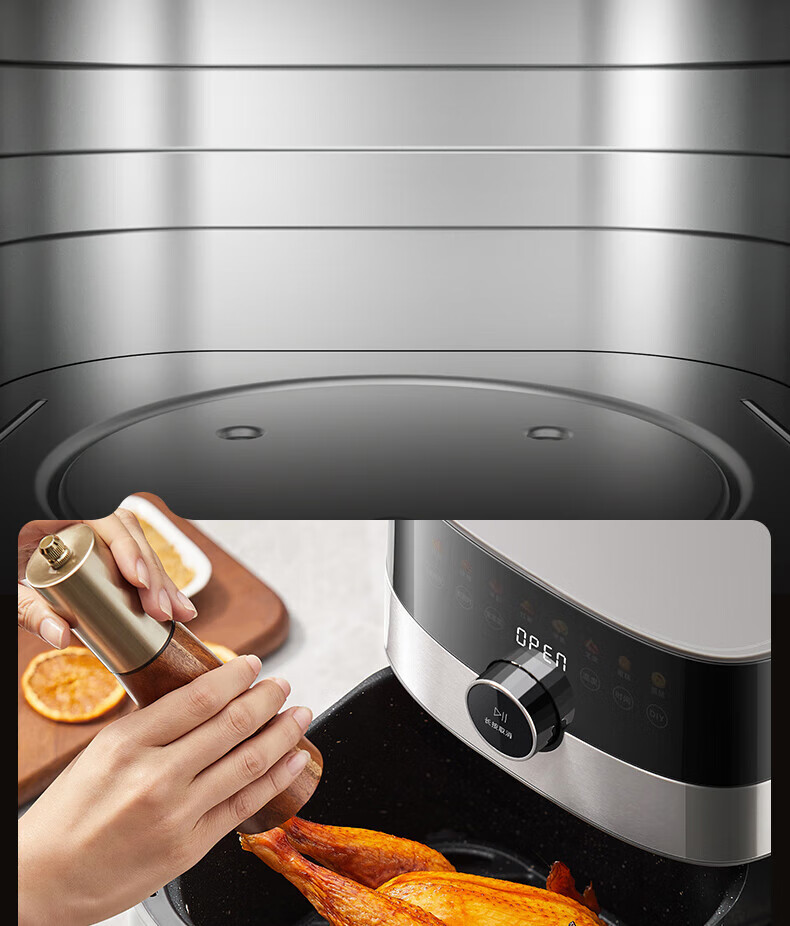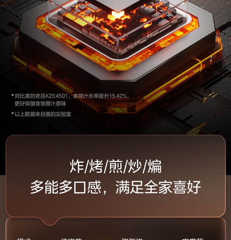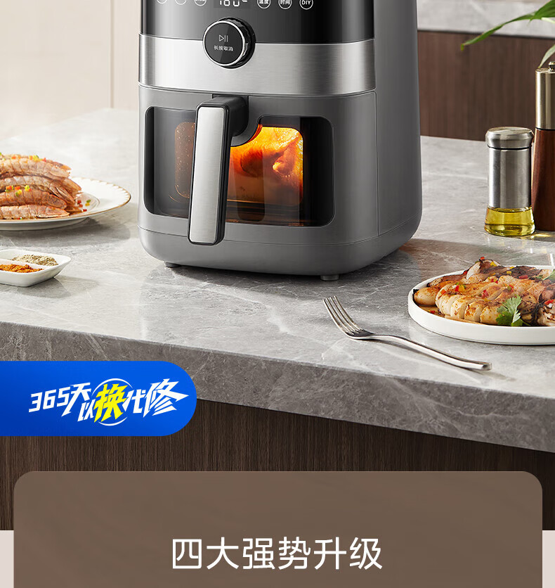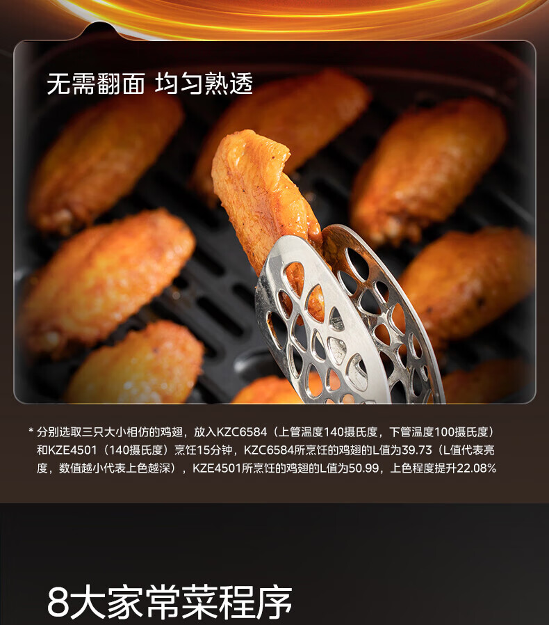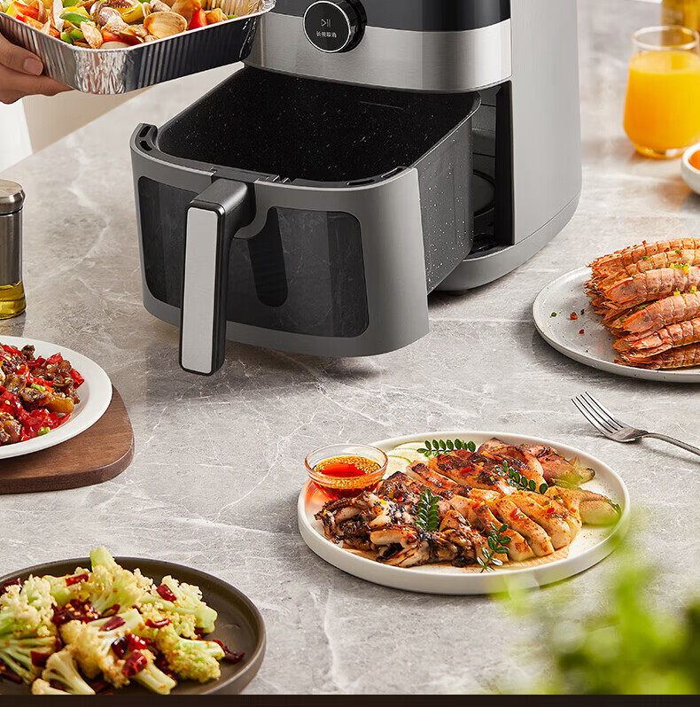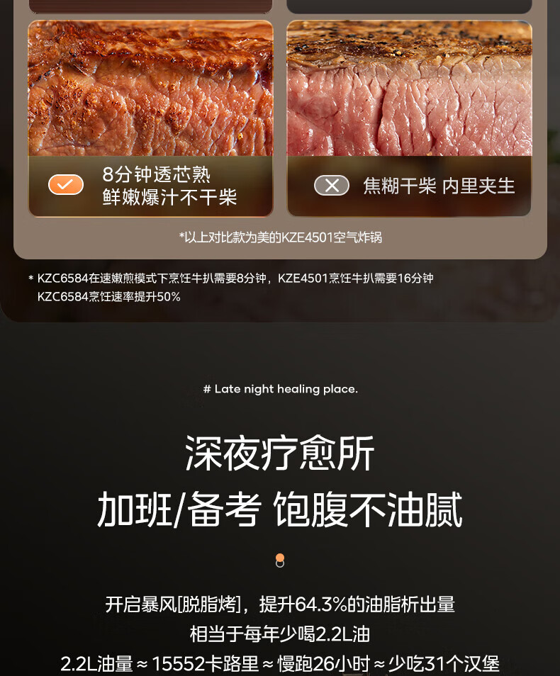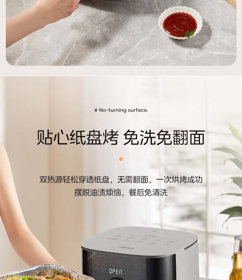 美的(Midea)空气炸锅 炎烤王烹饪机 家用6.5L大容量免翻面多功能 蒸汽嫩炸可视窗口旋钮操控一体煎烤炸锅 MF-KZC6584 6.5L