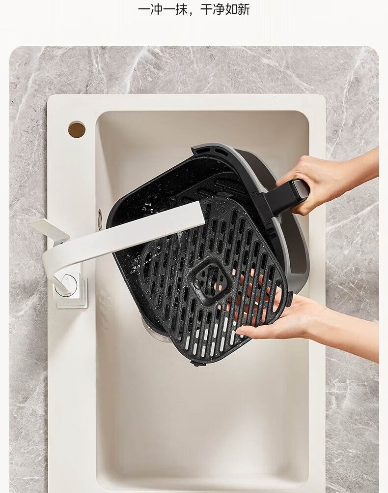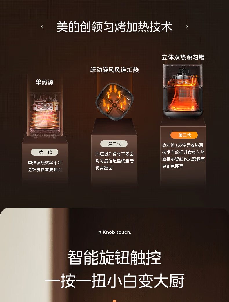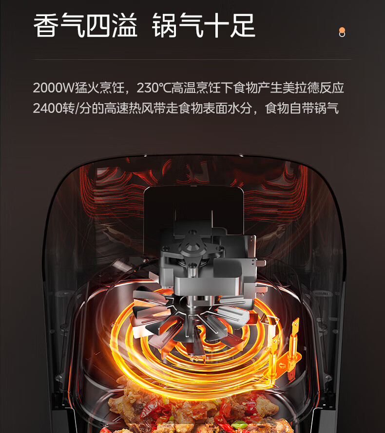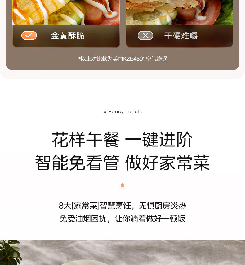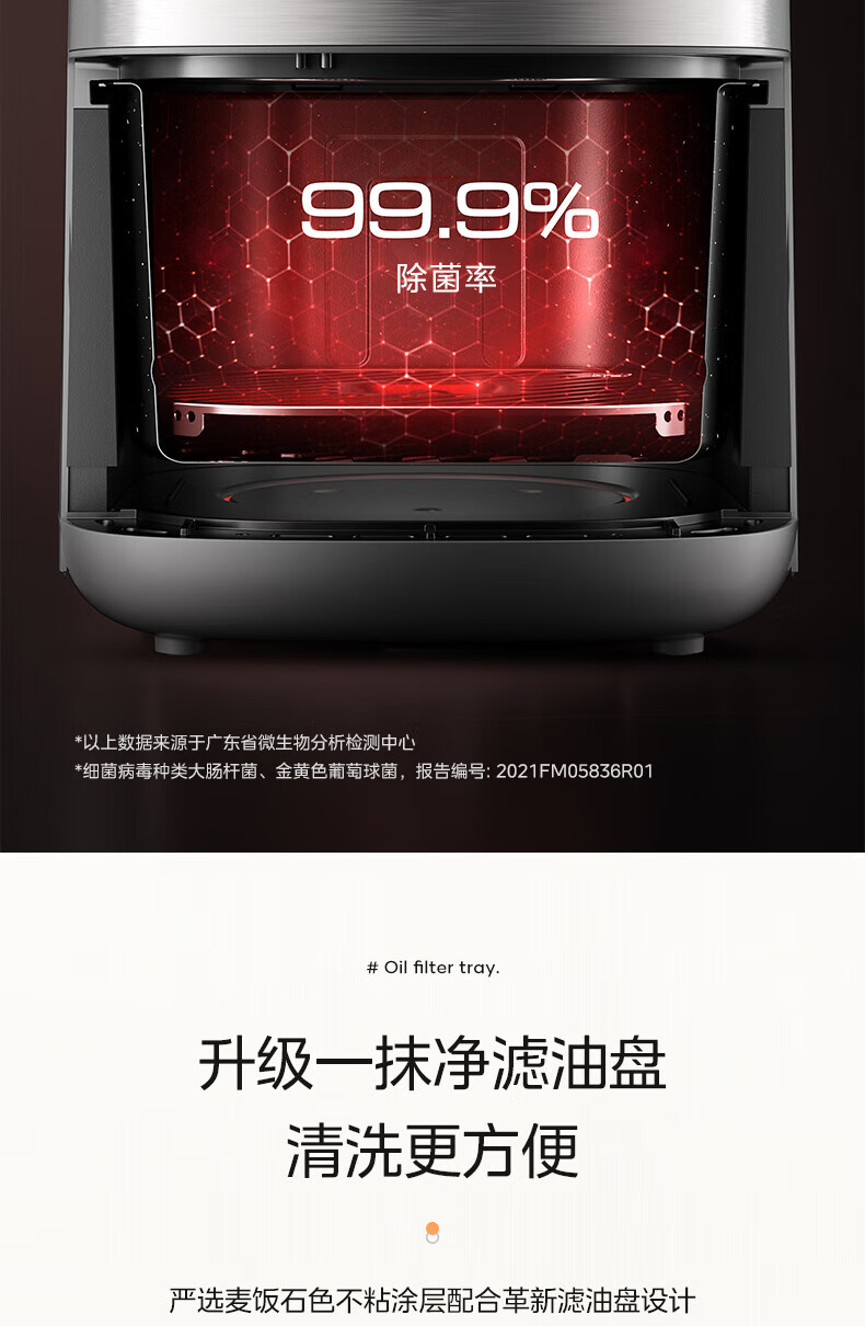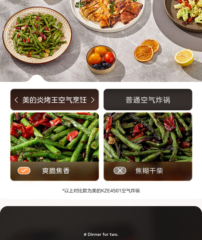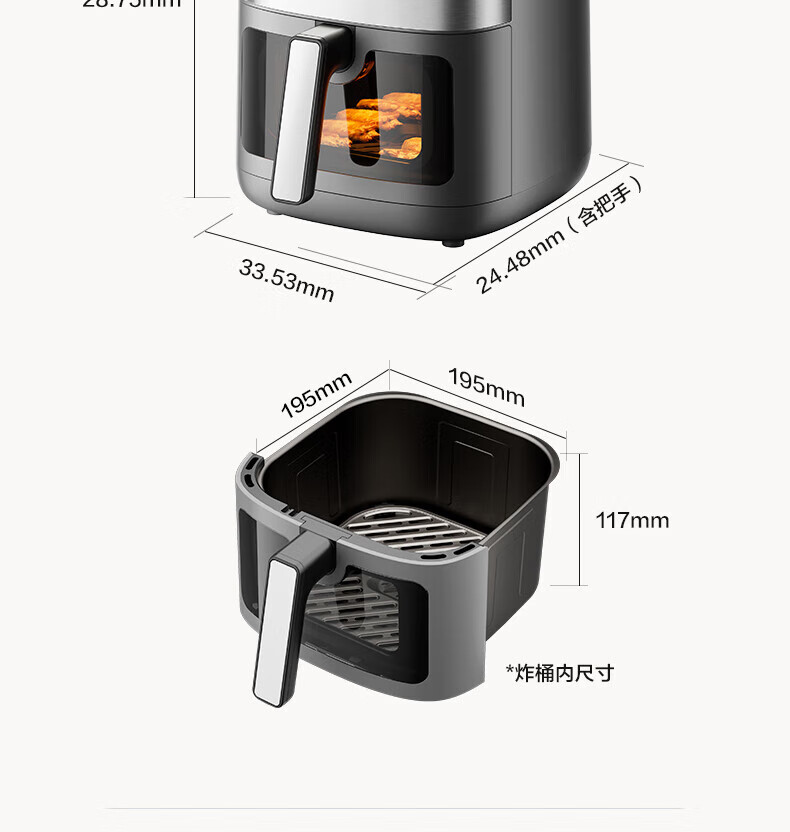 美的(Midea)空气炸锅 炎烤王烹饪机 家用6.5L大容量免翻面多功能 蒸汽嫩炸可视窗口旋钮操控一体煎烤炸锅 MF-KZC6584 6.5L