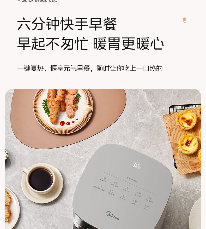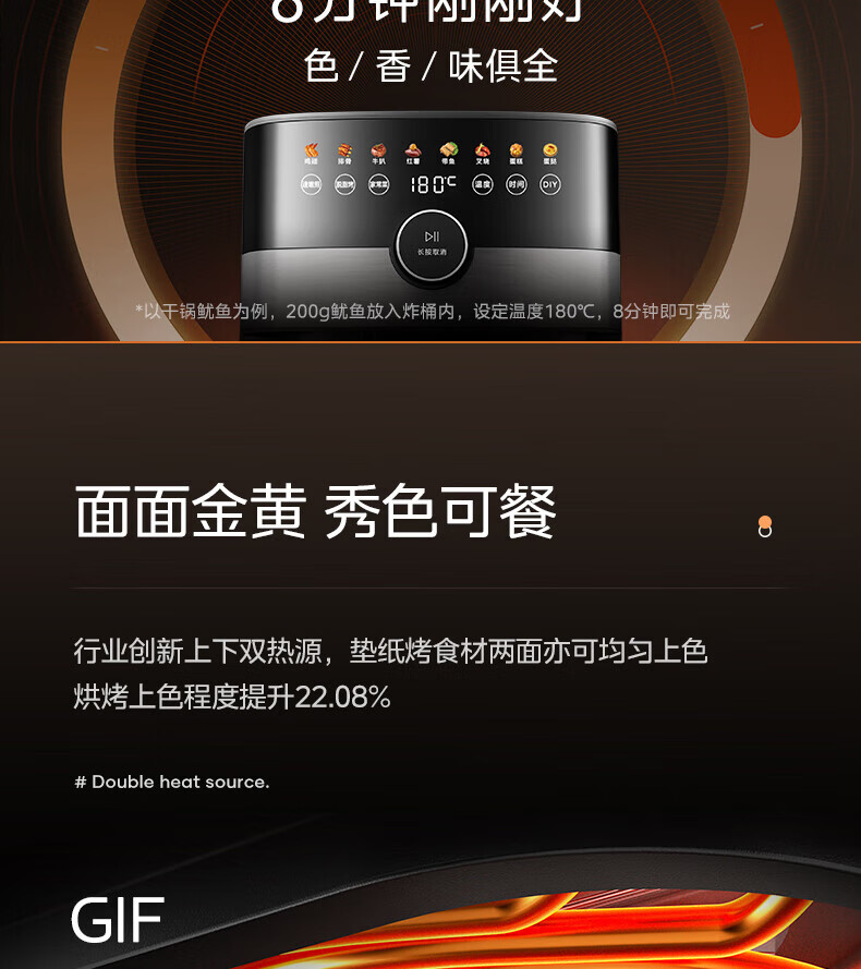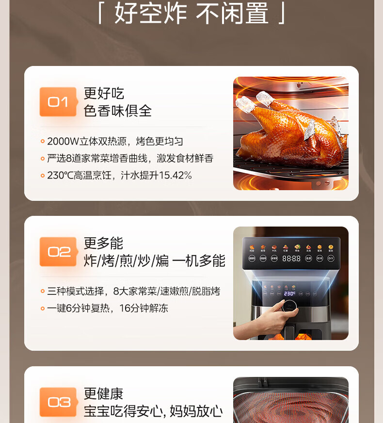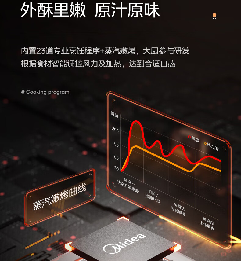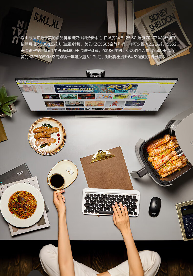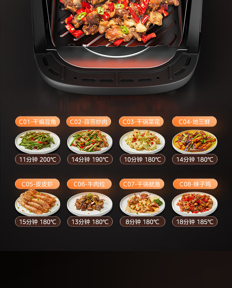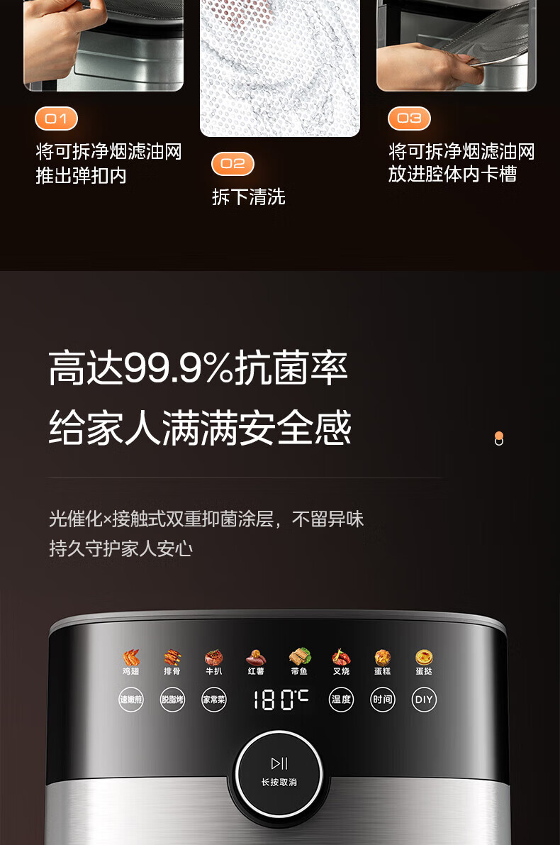 美的(Midea)空气炸锅 炎烤王烹饪机 家用6.5L大容量免翻面多功能 蒸汽嫩炸可视窗口旋钮操控一体煎烤炸锅 MF-KZC6584 6.5L