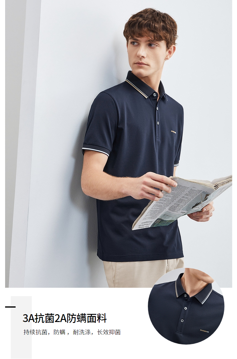 【3A抗菌/2A防螨】柒牌短袖男polo衫夏季薄款时尚休闲青年翻领T恤124T70180