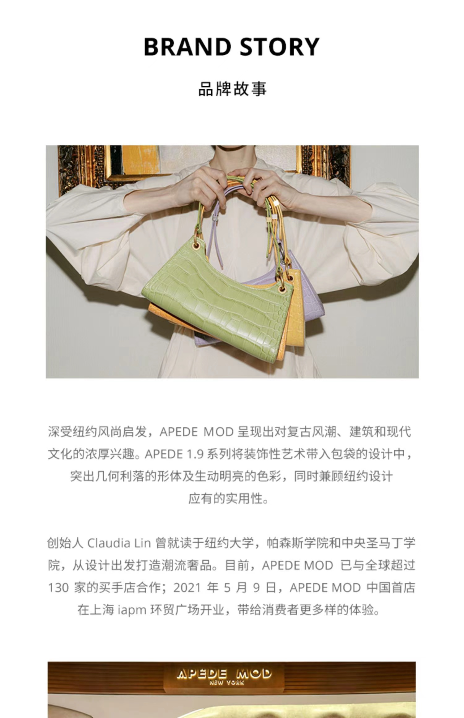 - Apede Mod是由一位设计师和一位时尚买手在美国纽约共同创立的时尚包袋品牌。