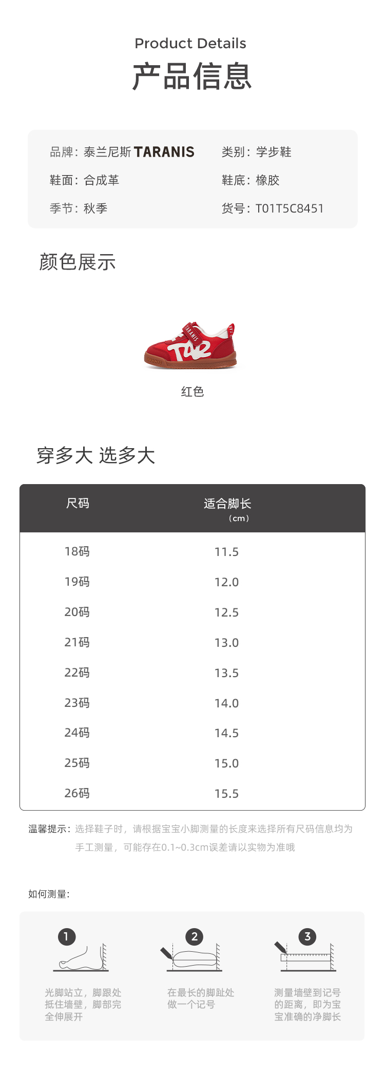 【新品】泰兰尼斯秋季婴童段舒适休闲面包鞋学步鞋T01T5C8451