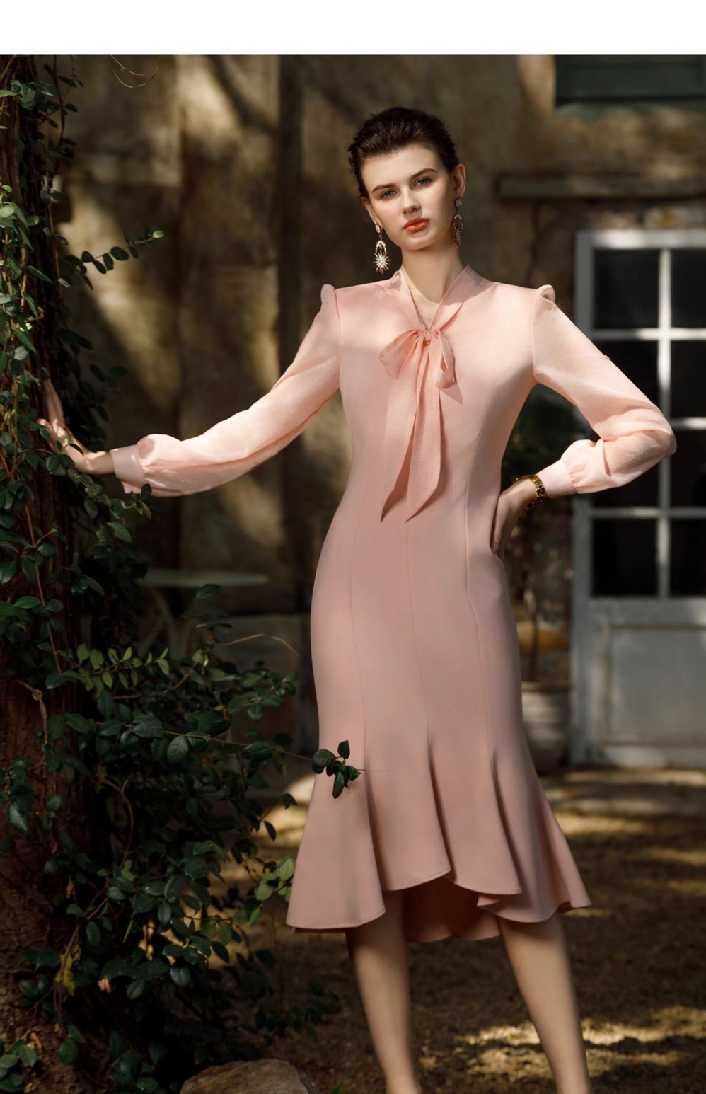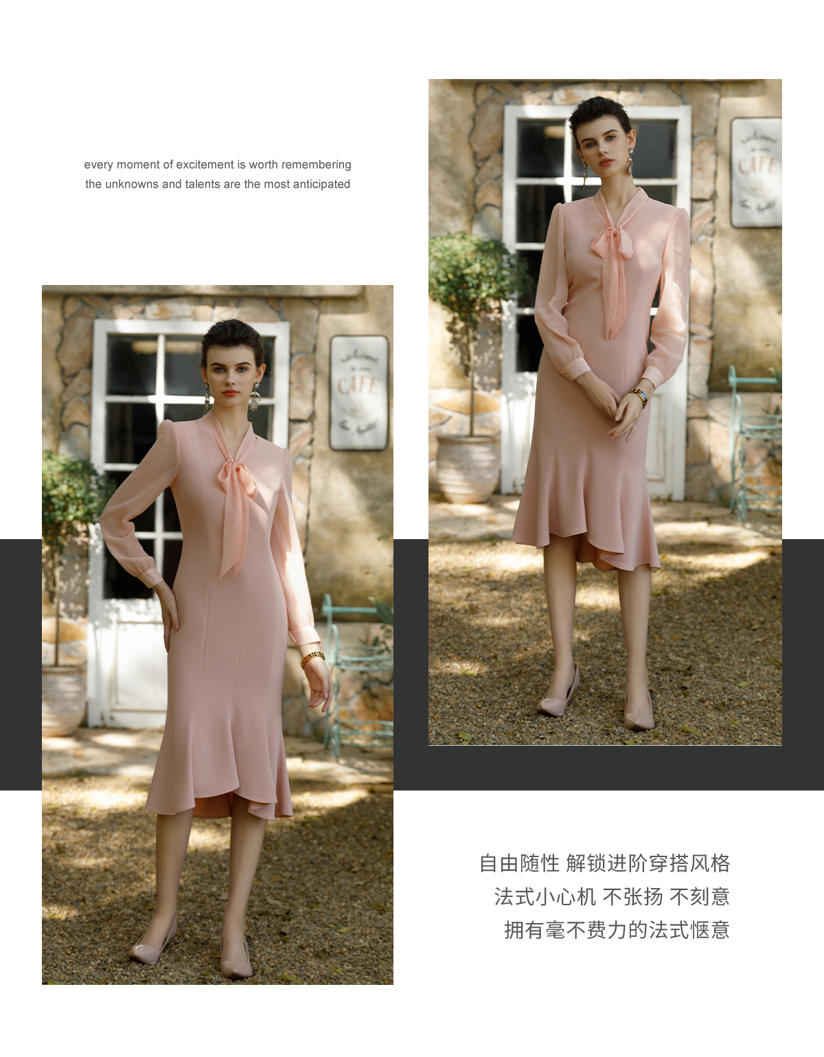 IWY/气质优雅粉西装连衣裙女夏季宴会礼服纱裙收腰显瘦包臀鱼尾裙Q1055-P