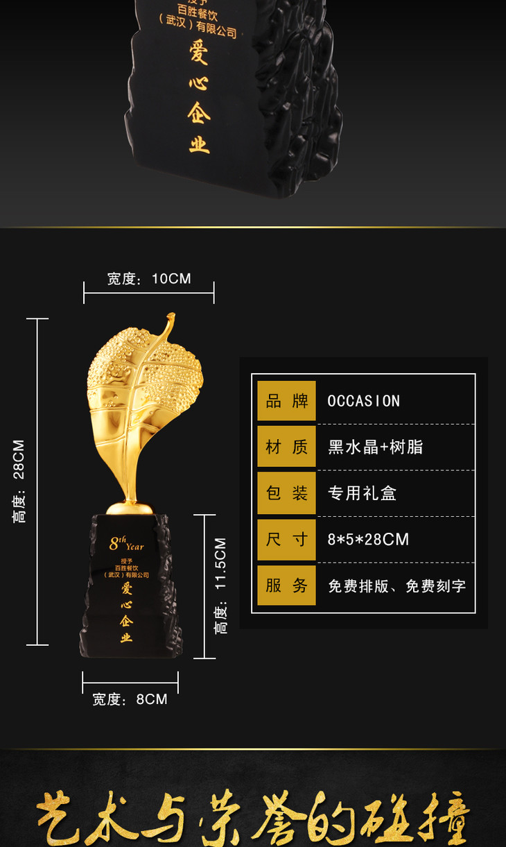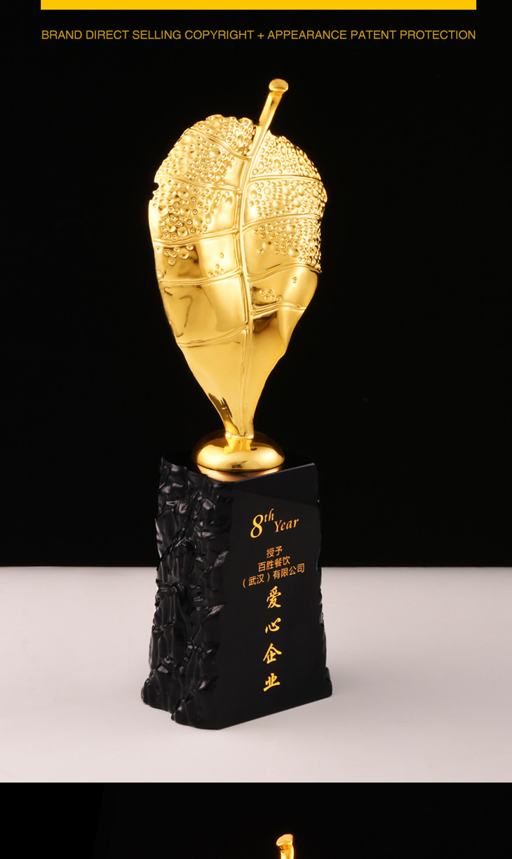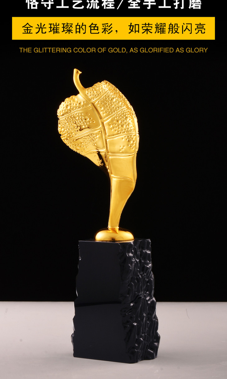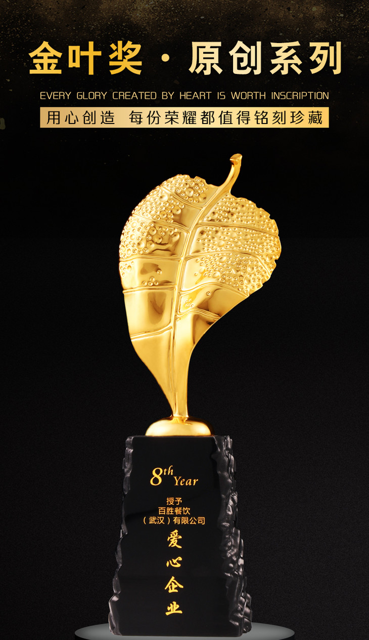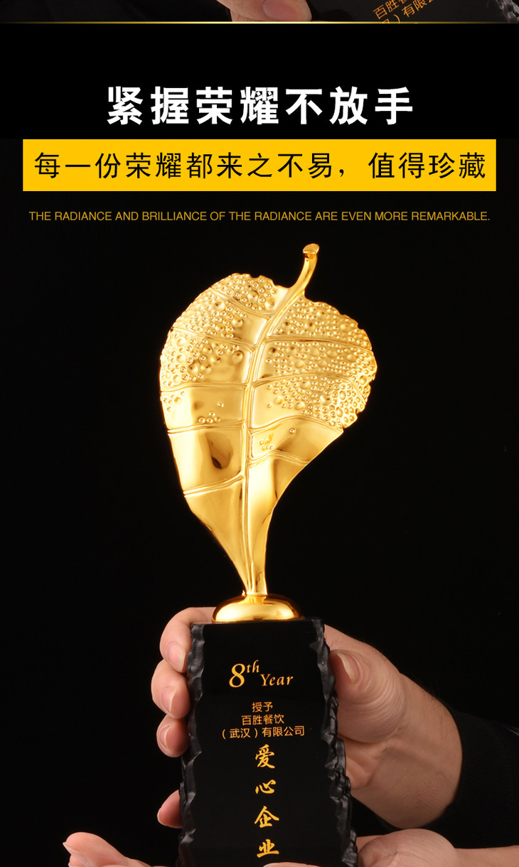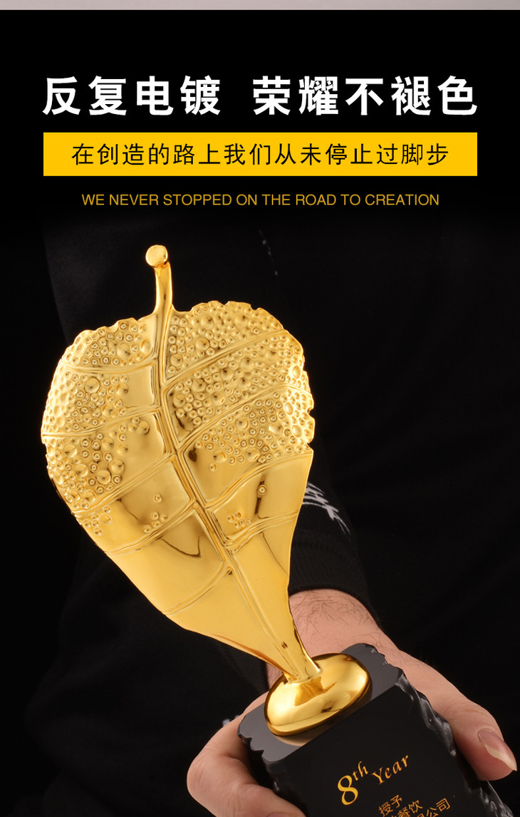 盛典金叶子奖杯定制创意奖杯金属浮雕纪念牌优秀员工年会颁奖奖杯