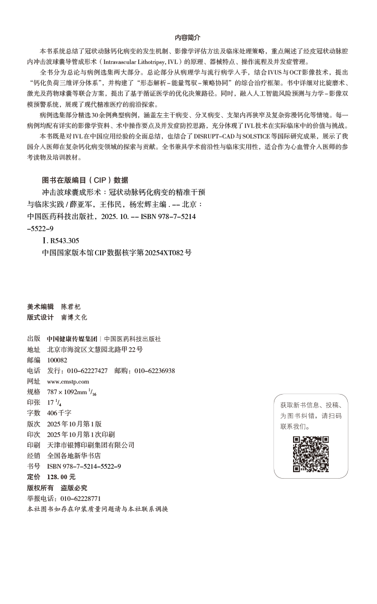 冲击波球囊成形术:冠状动脉钙化病变的精准干预与临床实践 薛亚军 王伟民 杨宏辉 主编 9787521455229 中国医药科技出版社