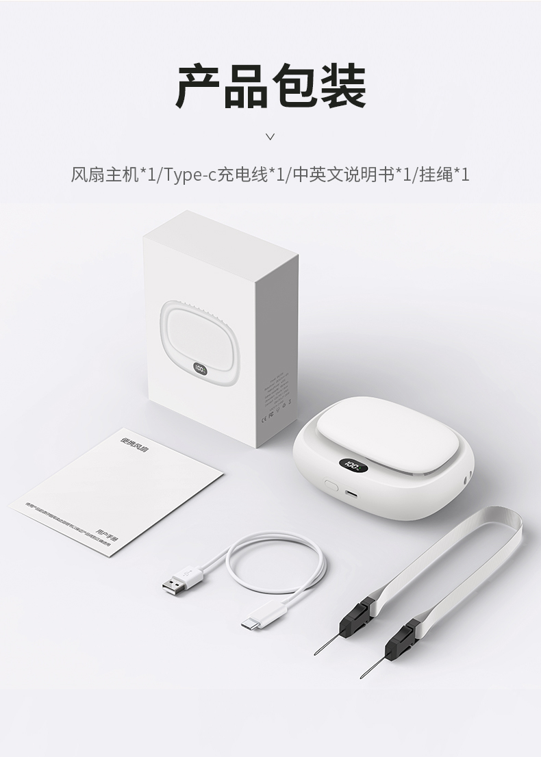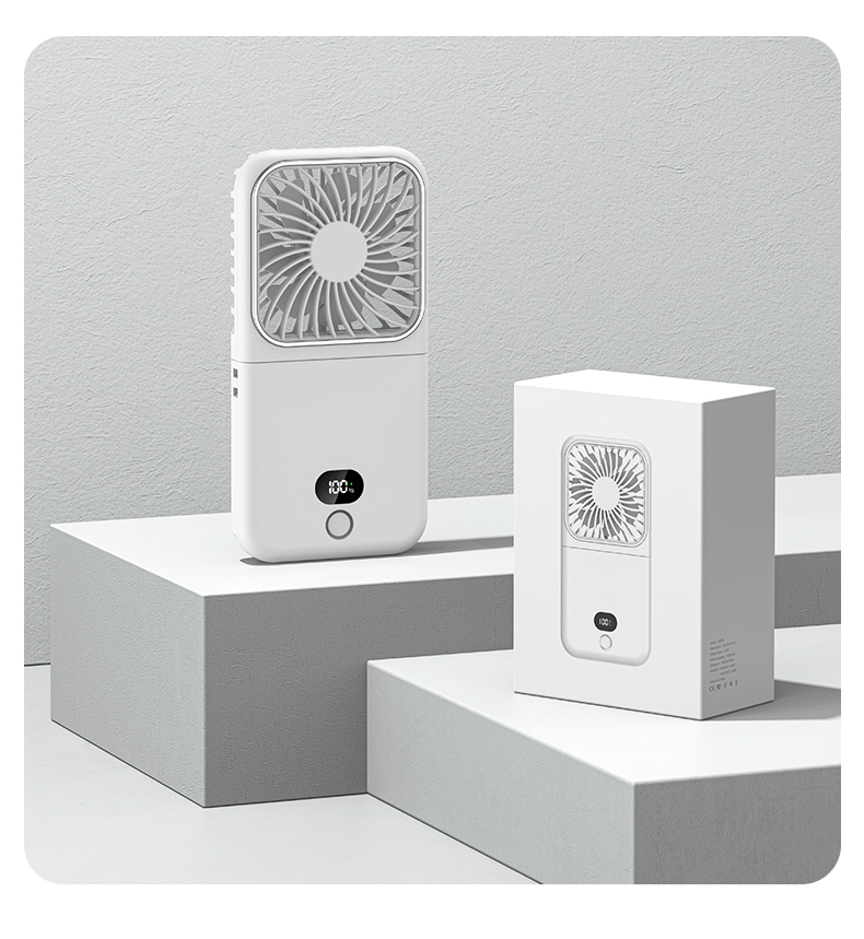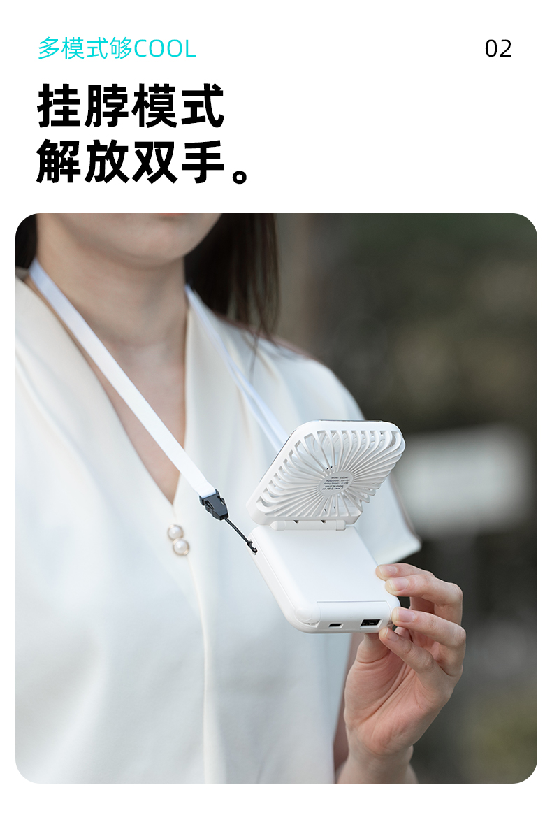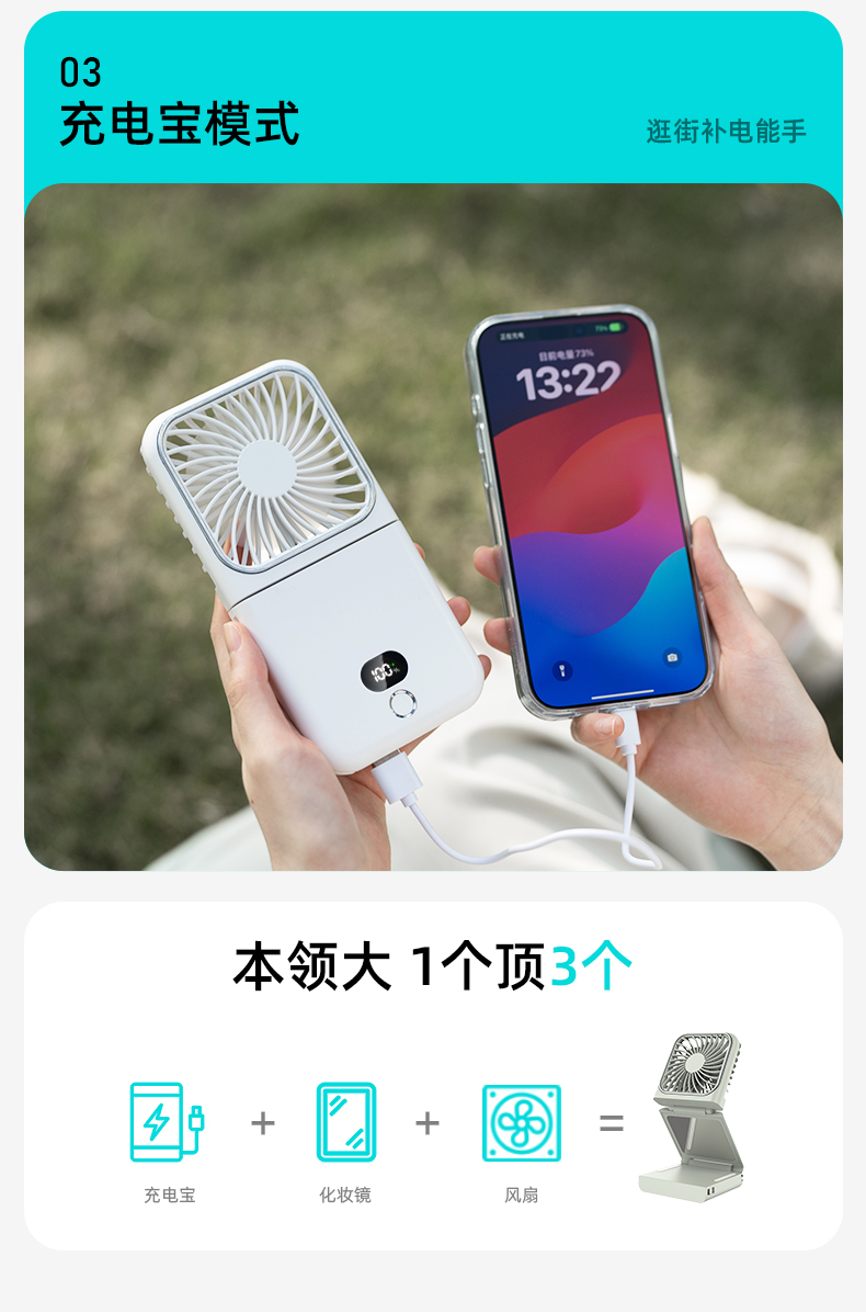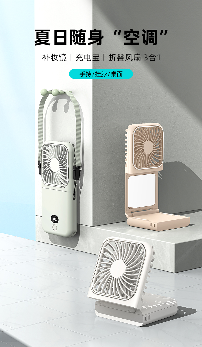补妆镜/充电宝/折叠风扇 3合1 折叠挂脖风扇