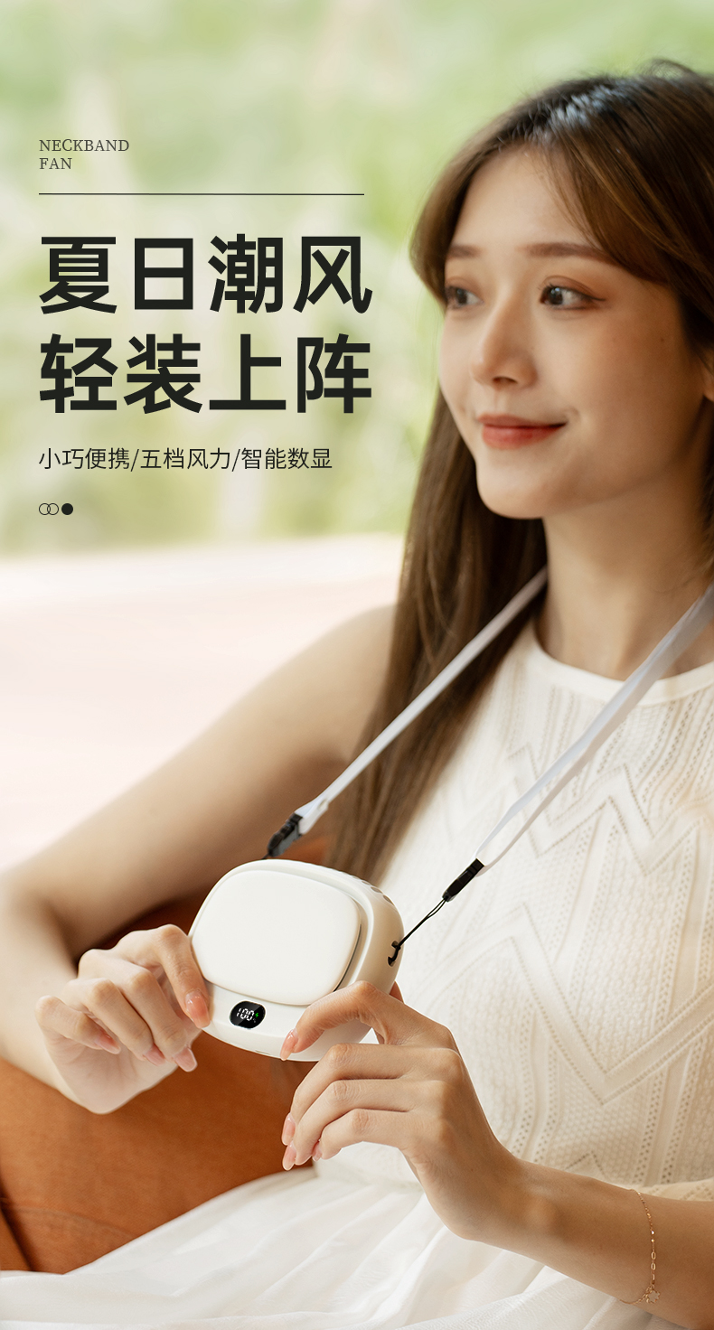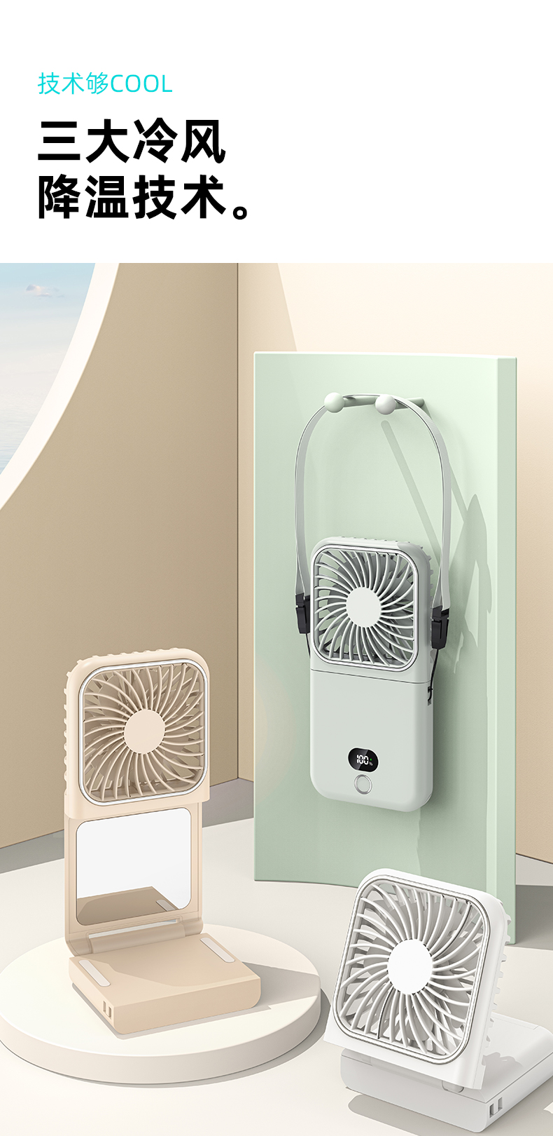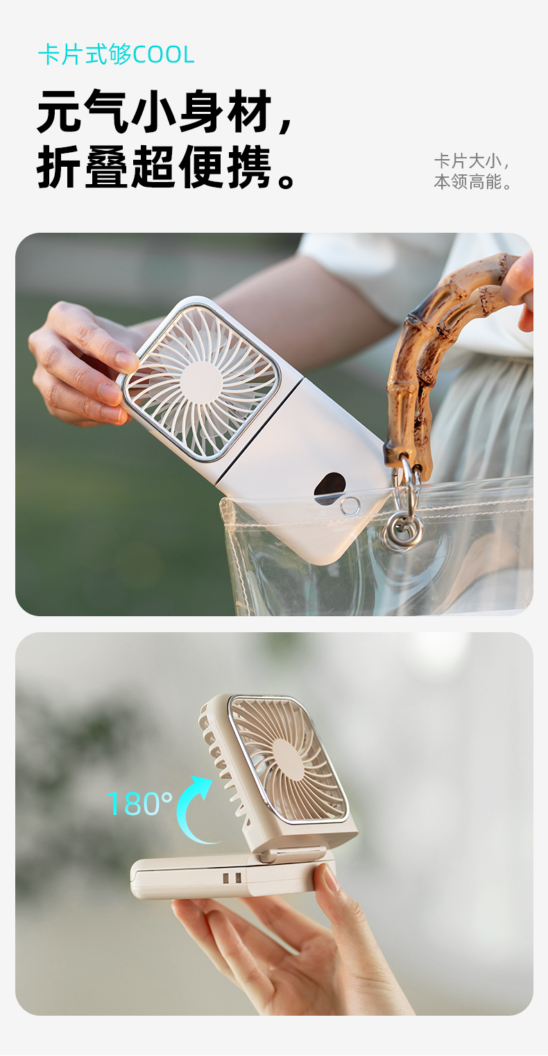 补妆镜/充电宝/折叠风扇 3合1 折叠挂脖风扇