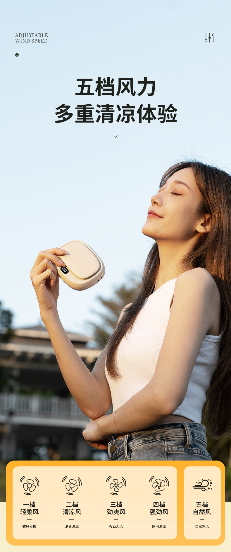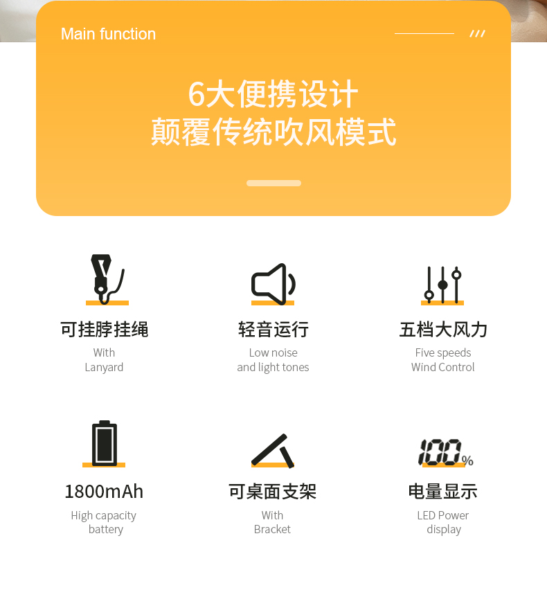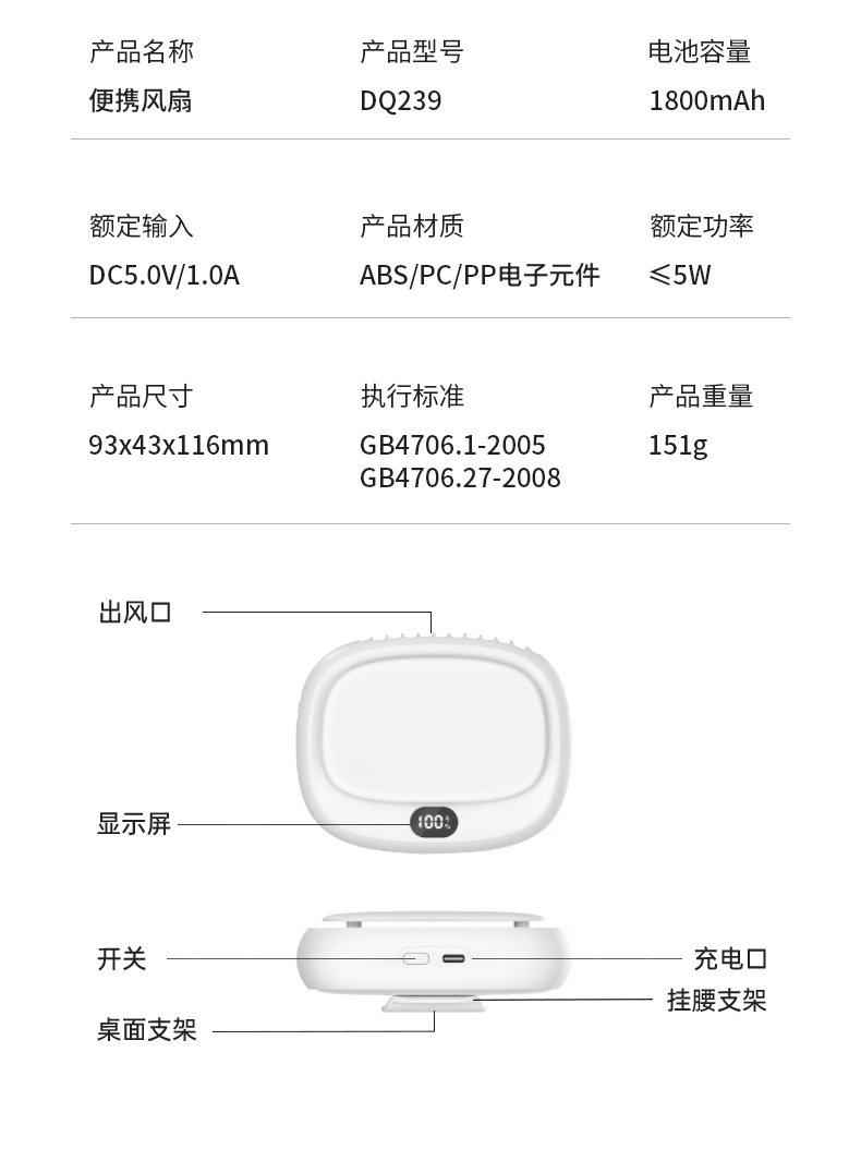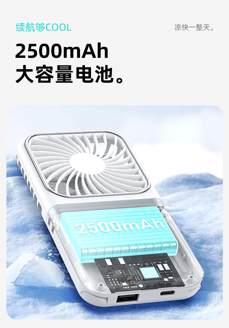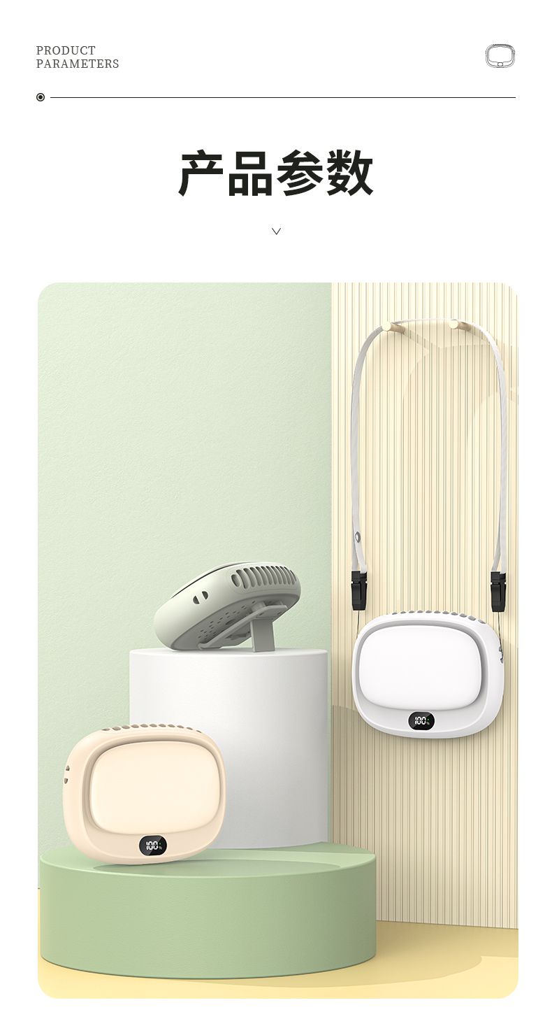 补妆镜/充电宝/折叠风扇 3合1 折叠挂脖风扇