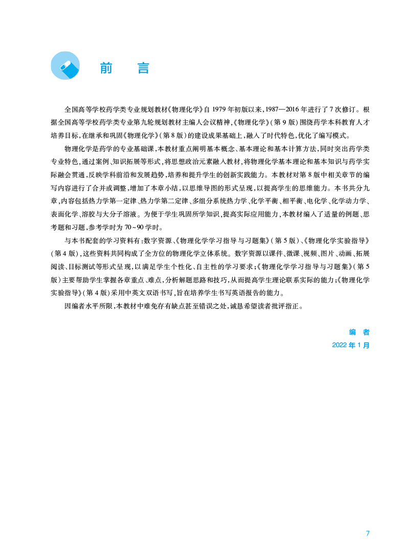 物理化学 第9版 十四五规划教材 全国高等学校药学类专业第九轮规划教材 供药学类专业用 崔黎丽主编 人民卫生出版社9787117337458