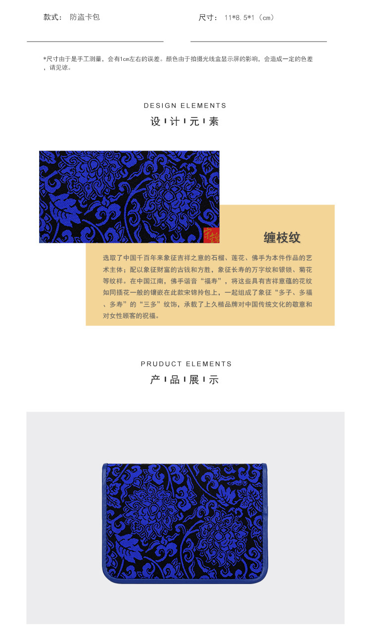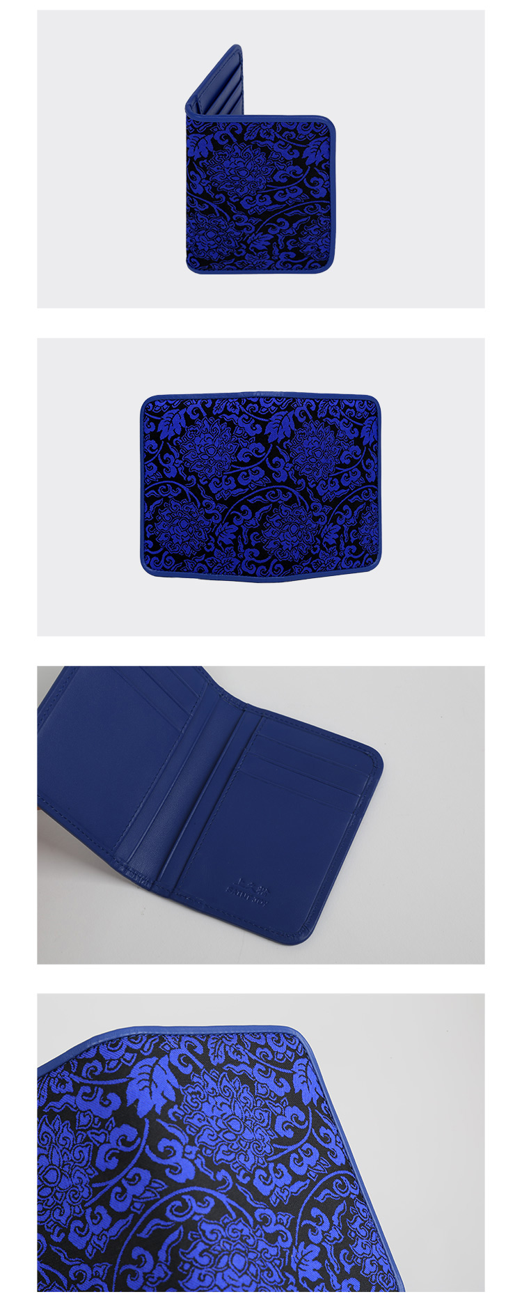 SAINTJOY/上久楷宋锦卡包 黑宝蓝缠枝莲花纹BWS19K0401