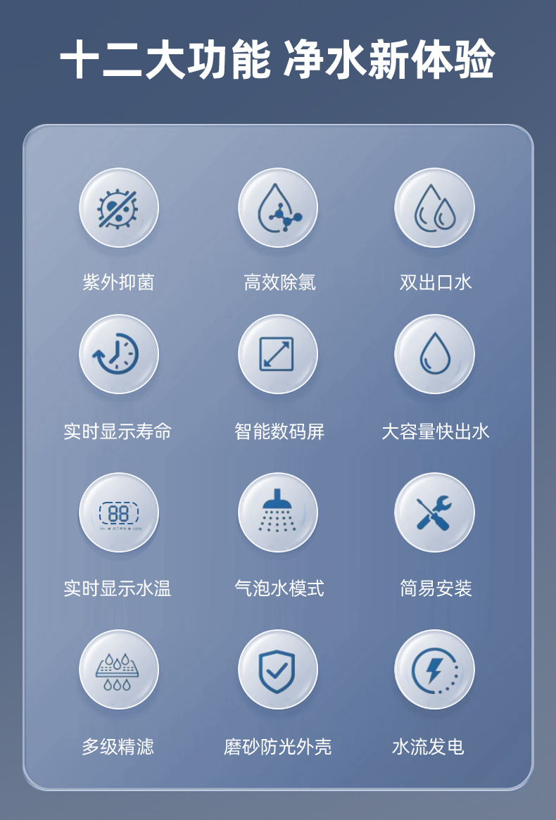 【除氯去异味多重物理精滤】新款蓝光数显净水器水龙头过滤器家用自来水前置超滤厨房净水机。ja