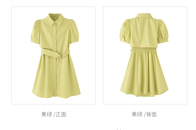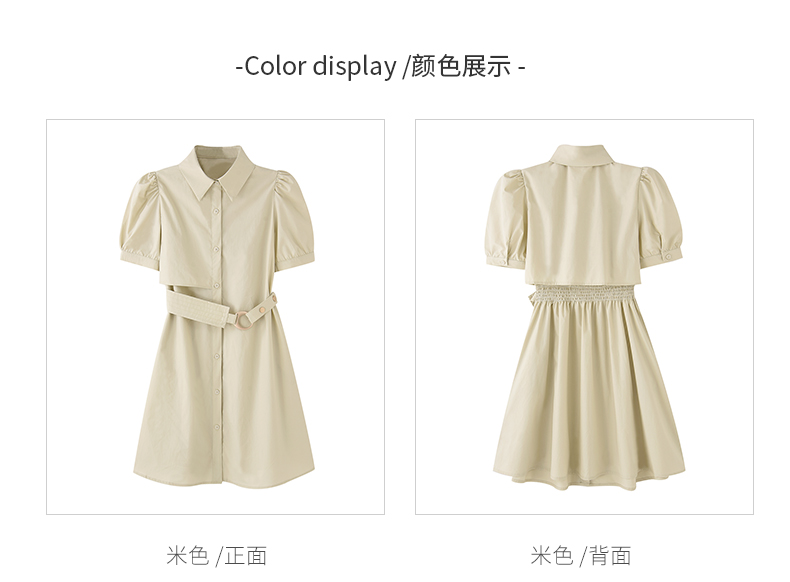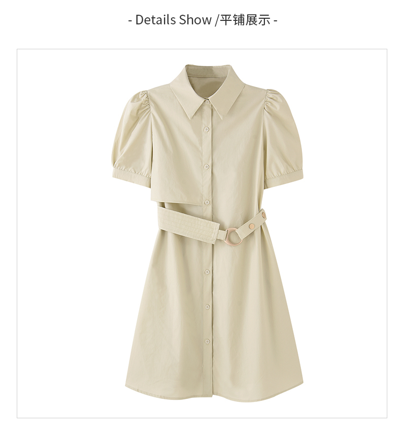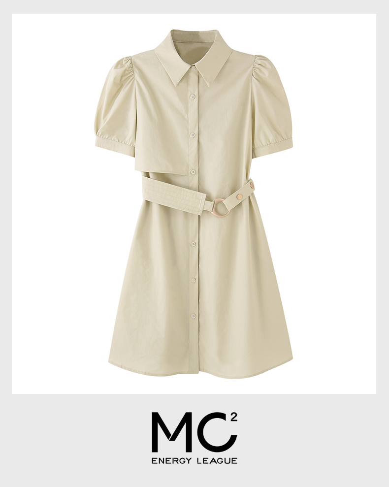 mc2翻领短袖连衣裙女装夏款腰部金属扣腰带收腰显瘦设计感衬衫裙