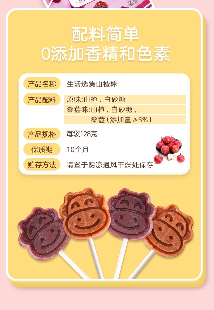 ³【生活选集酸酸甜甜山楂棒棒糖】128g*4袋 每袋约12支 酸酸甜甜软糯又好吃 XN03-CRMM-SHXJ