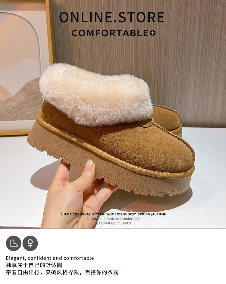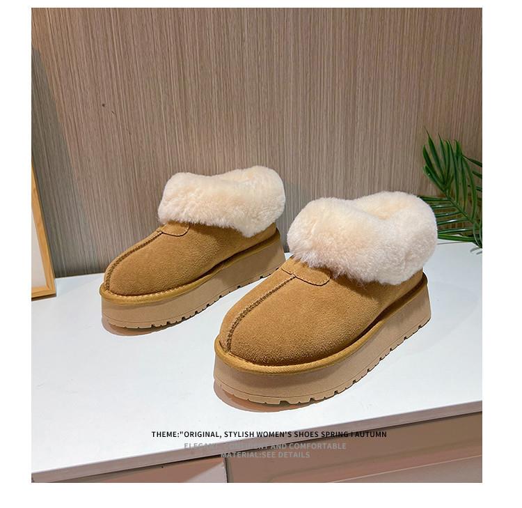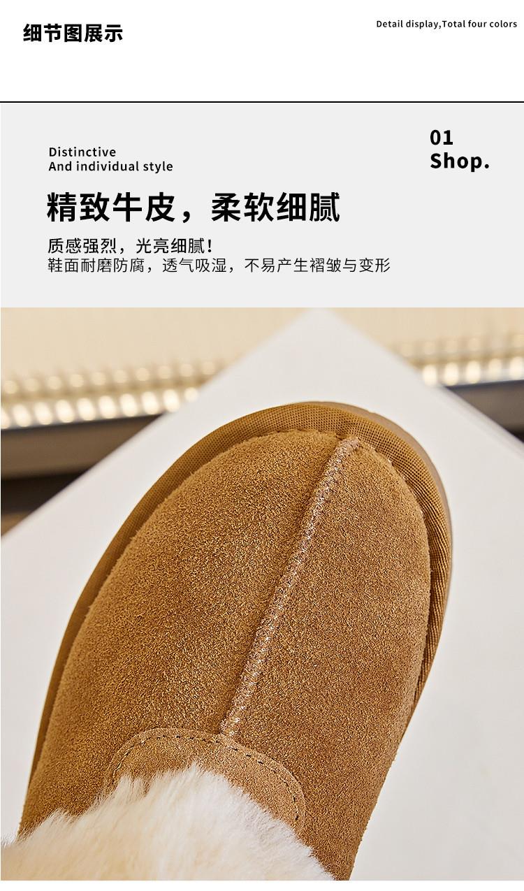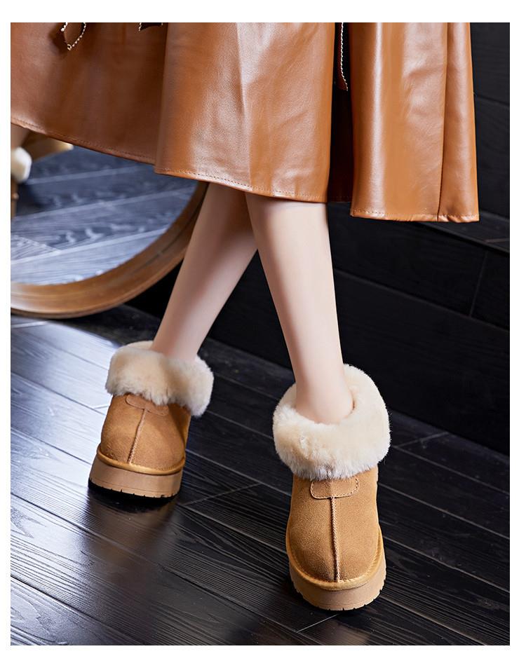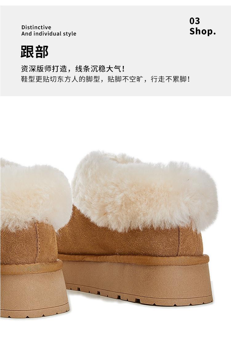 真皮雪地靴女2023冬季新款厚底加绒保暖真毛短靴休闲时尚面包女靴