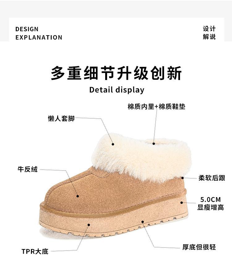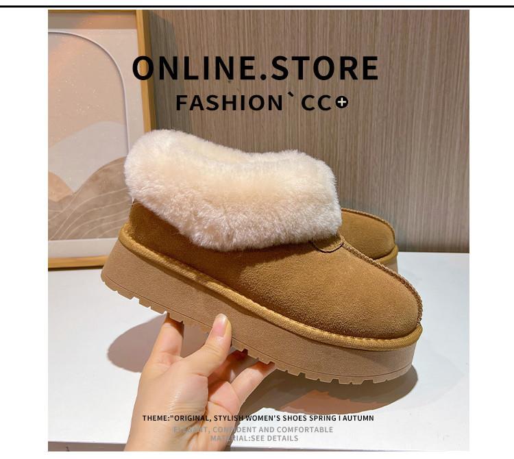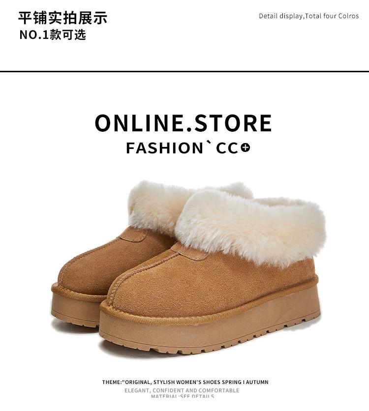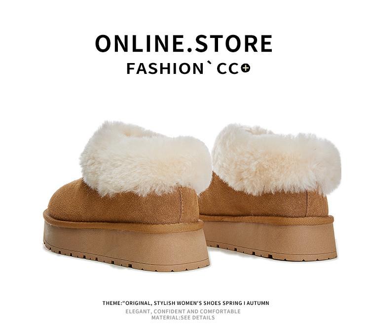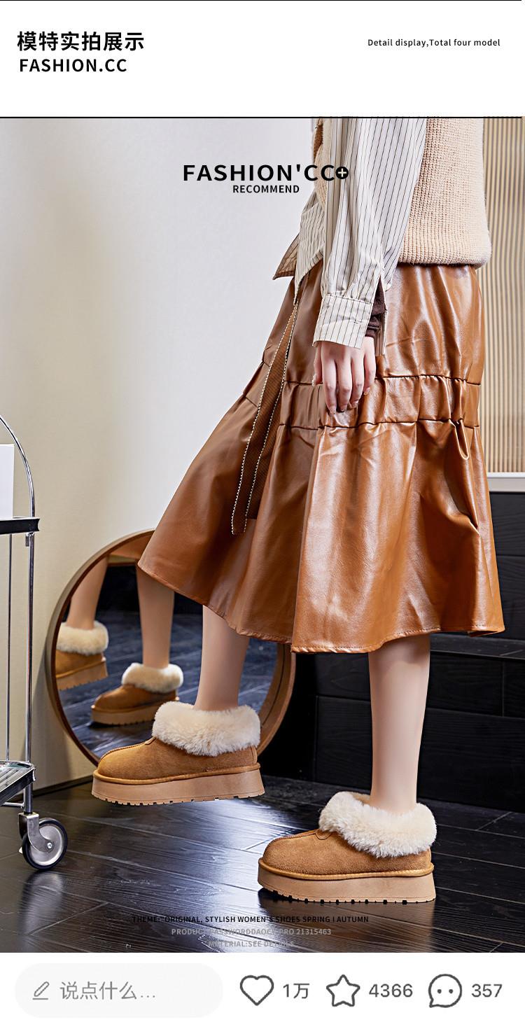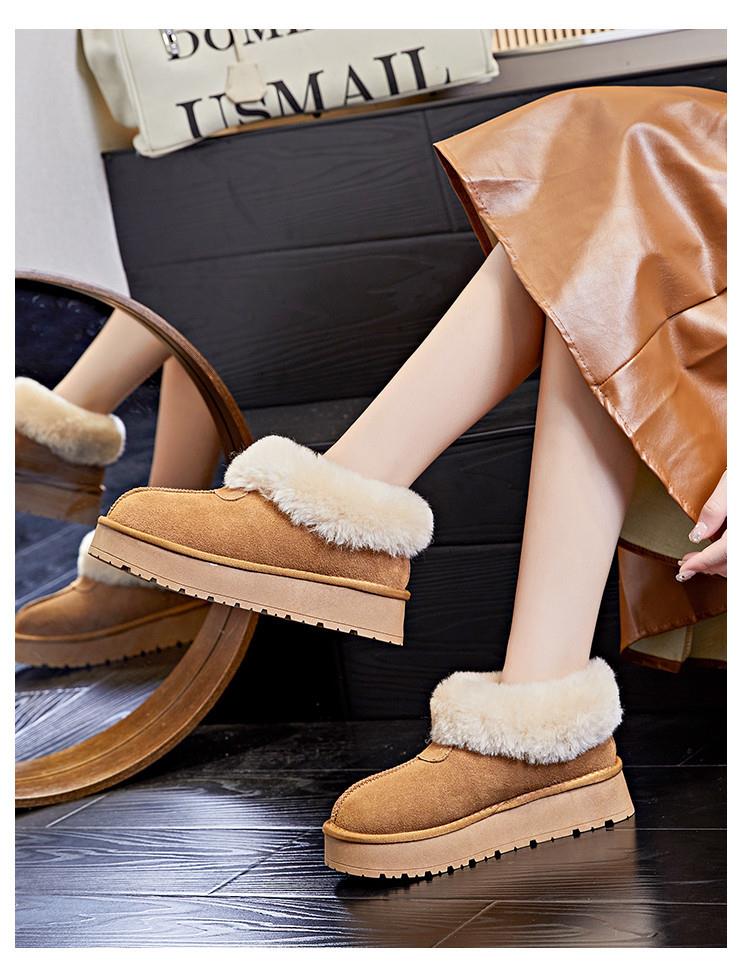 真皮雪地靴女2023冬季新款厚底加绒保暖真毛短靴休闲时尚面包女靴