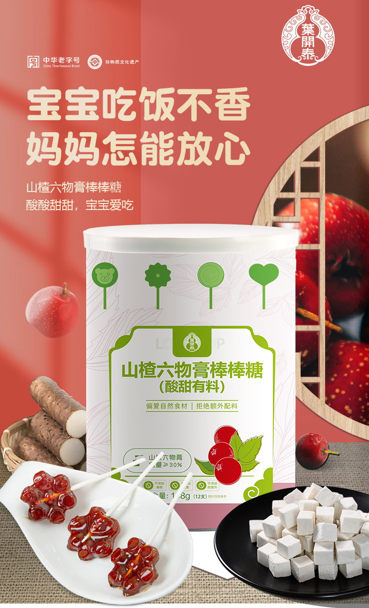 叶开泰山楂膏棒棒糖108g(12支)/盒