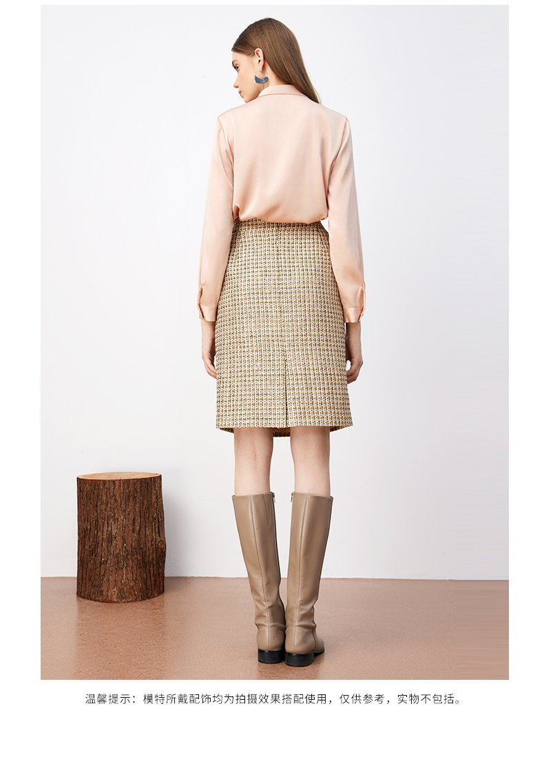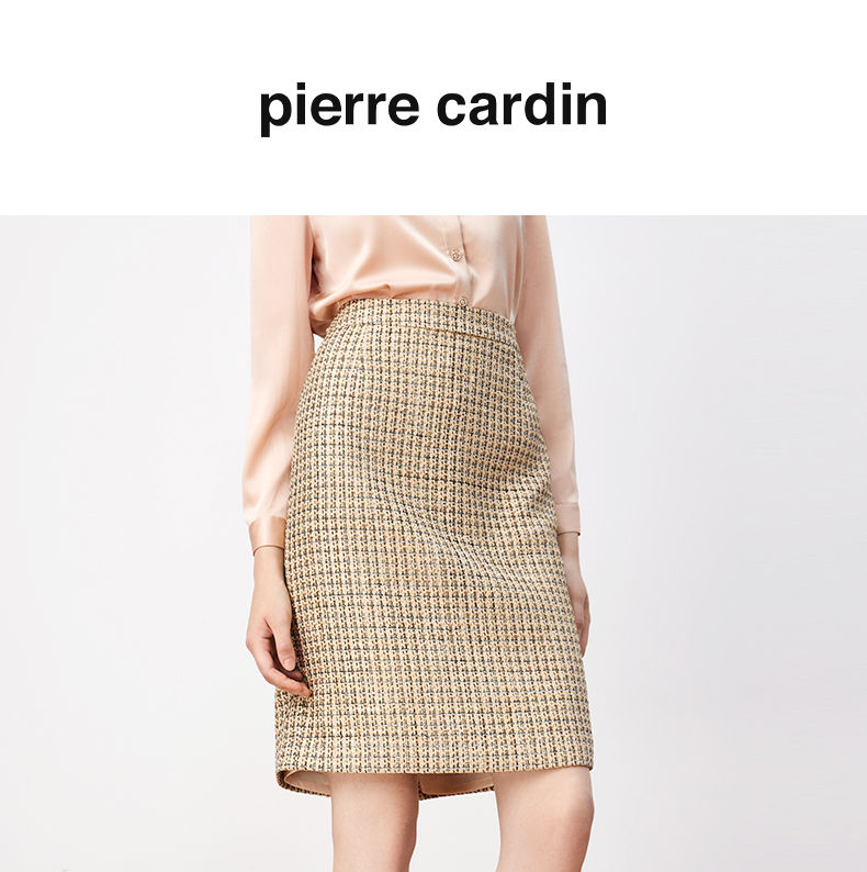 皮尔卡丹女装半身裙黄色春秋知性优雅H型小香风半裙P3353S3989M1