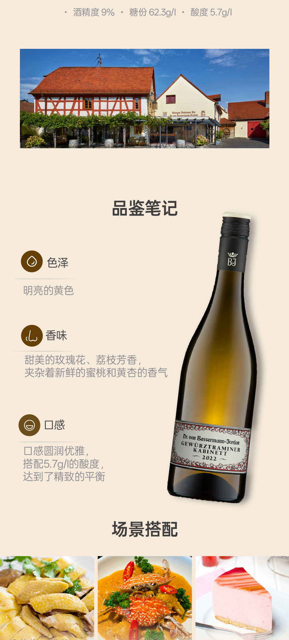 巴斯曼琼瑶浆珍藏白葡萄酒2022 甜型 9%vol 750ml