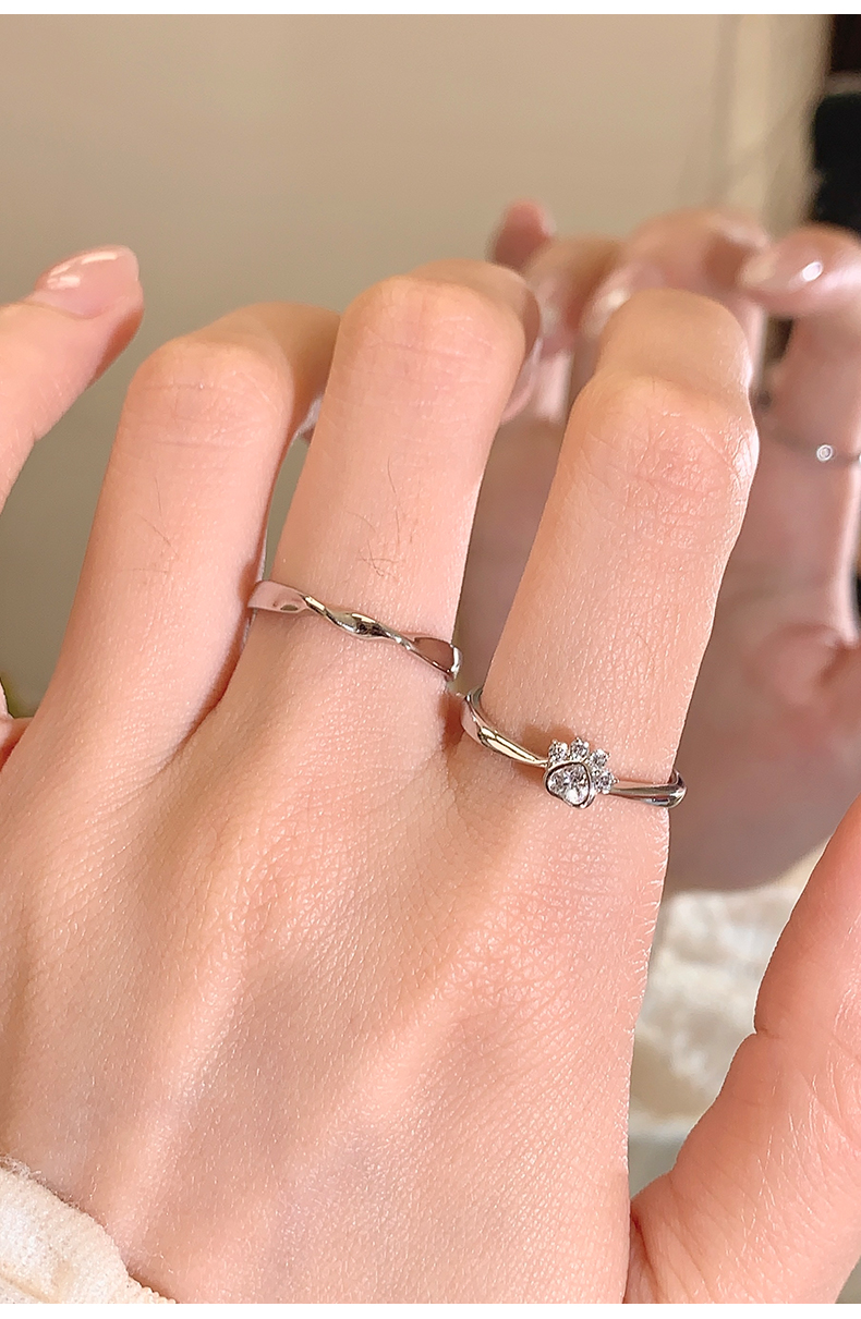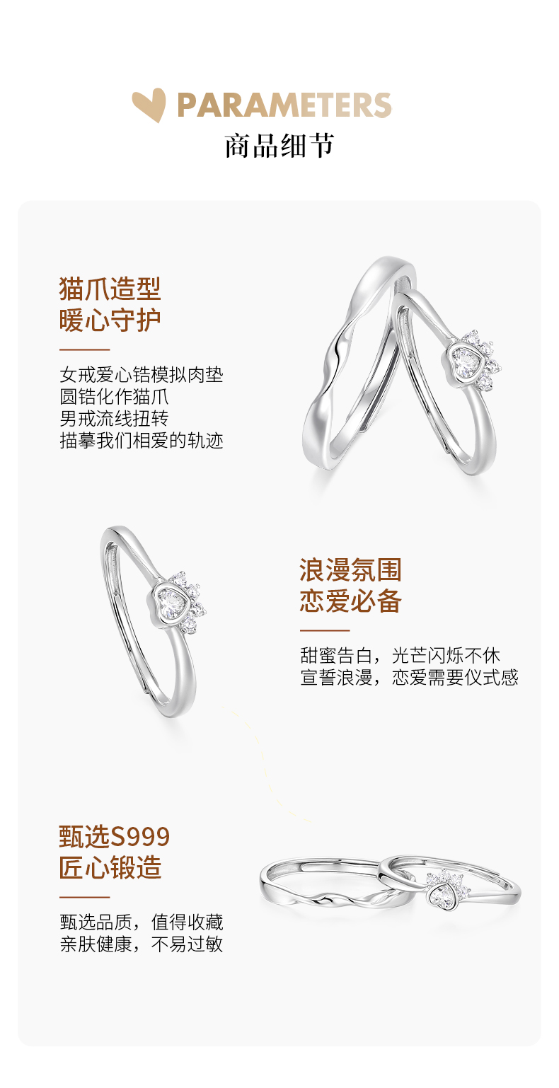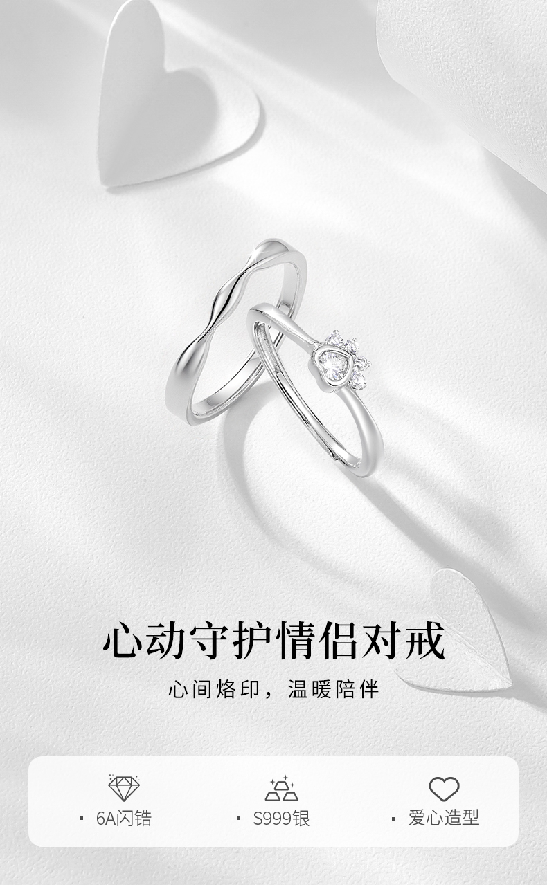 卡蒂罗KADER 心动守护情侣对戒 莫比乌斯环原创俏皮招财猫爪可爱甜美浪漫氛围感可调节一对 日常百搭通勤约会必备