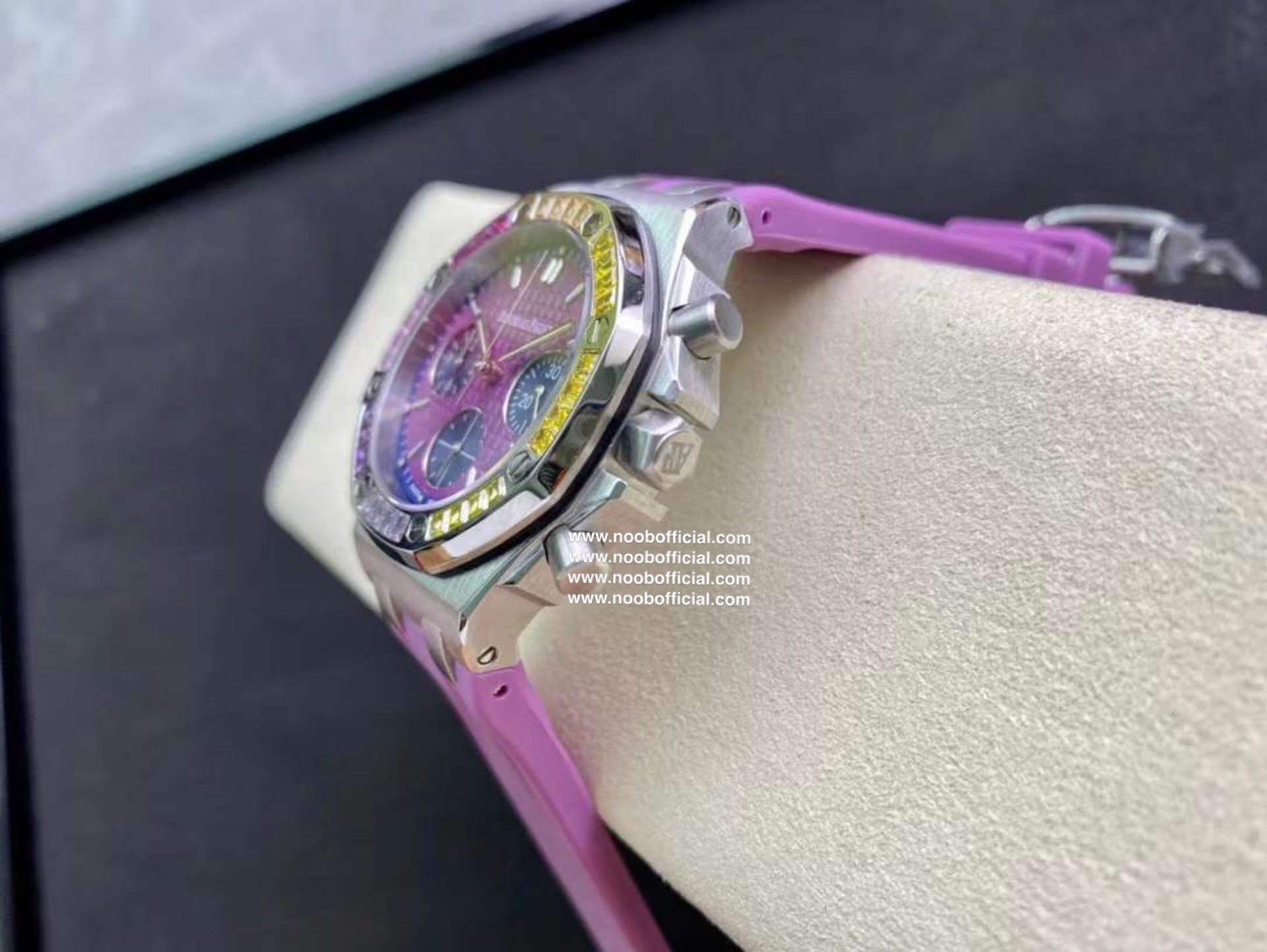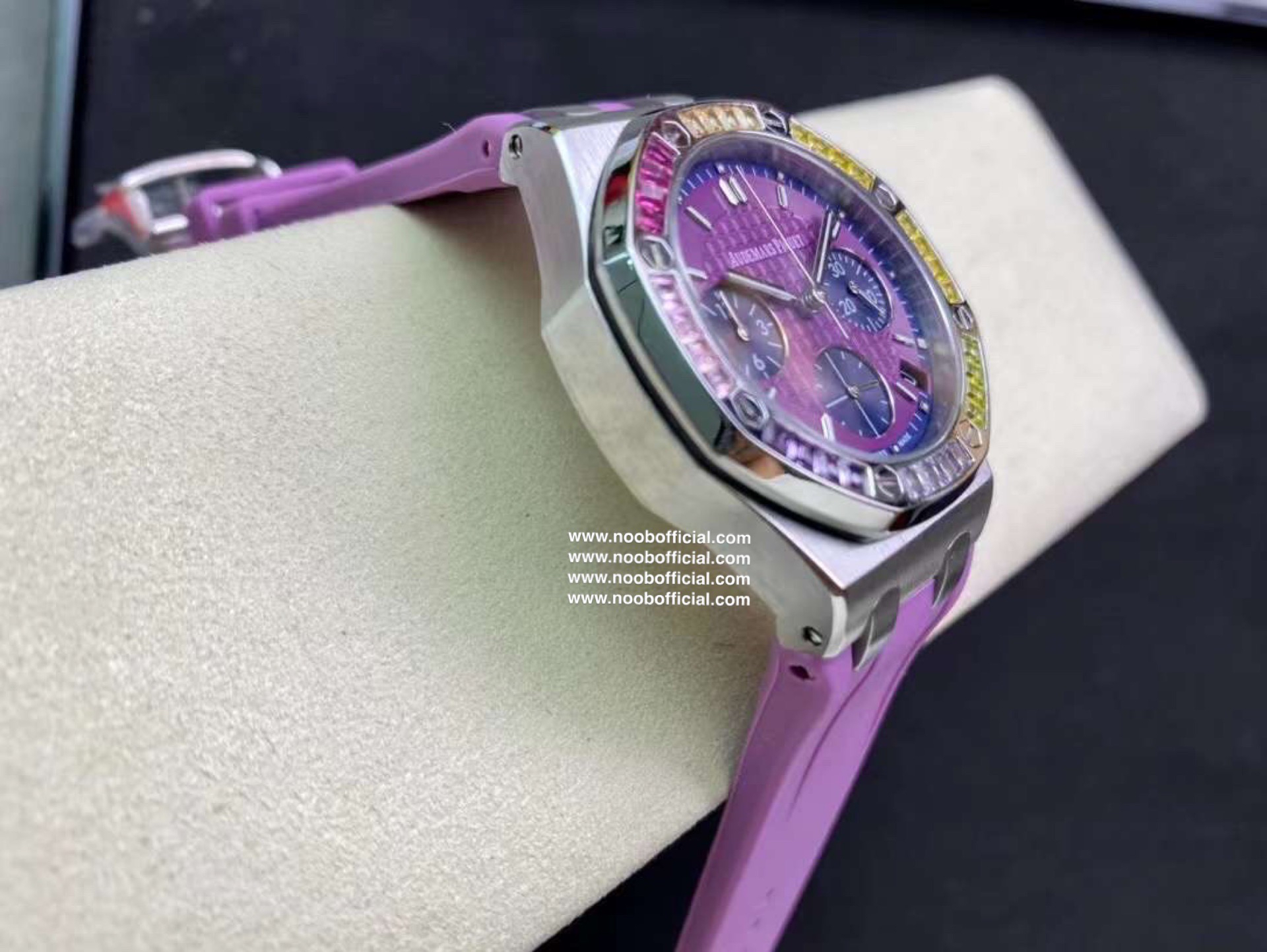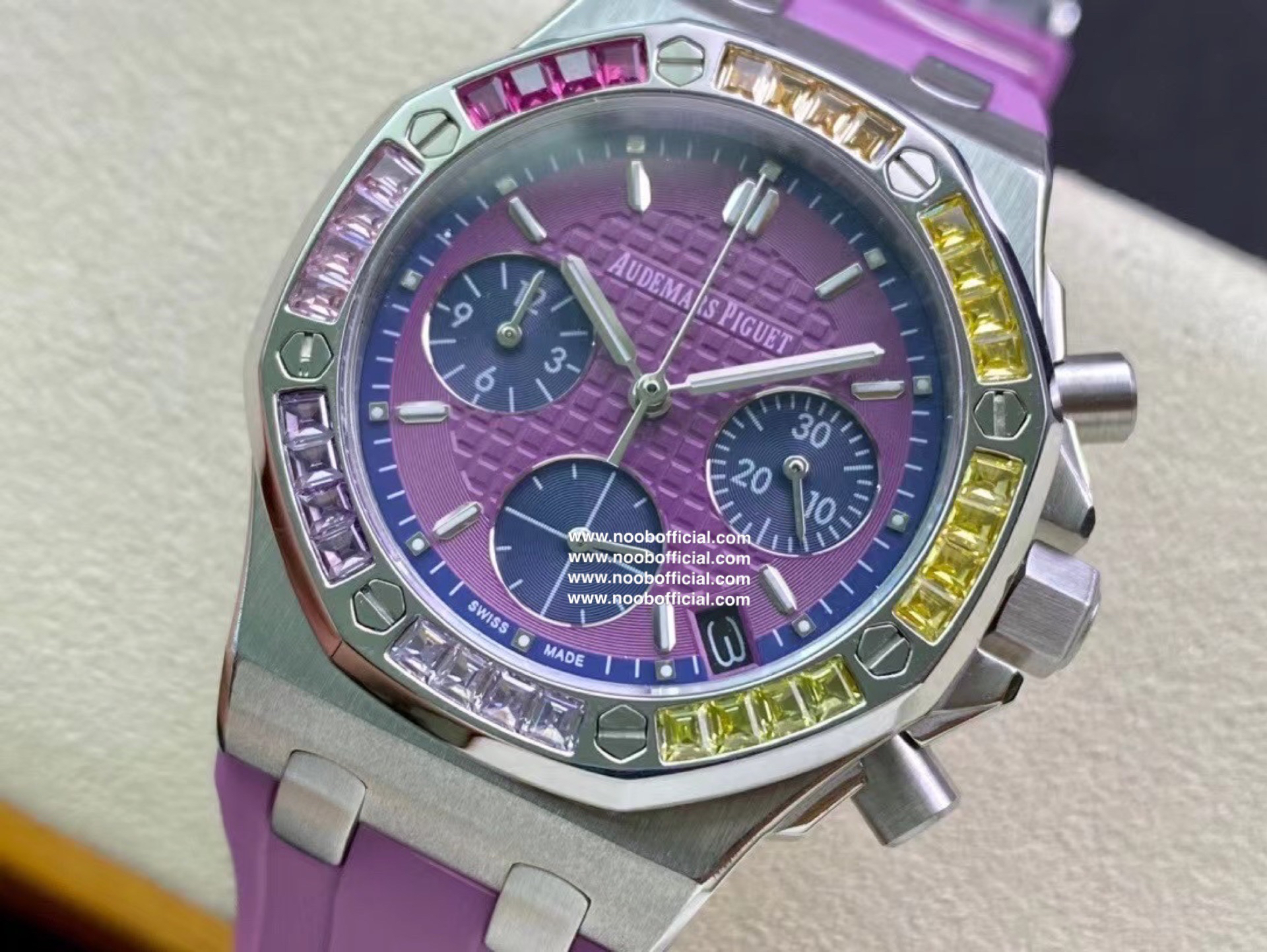 316精钢表壳镶钻八角钻石壳边设计 进口瑞士多动能石英机芯 稳定带计时功能 蓝宝石水晶镜面刮不花玻璃 采用食品级别安全橡胶表带亲肤无毒性 百搭尺寸37mm任何女士手型都可以佩戴,MF厂高版本值得拥有💯🥇网红爆款爱彼皇家橡树香芋紫来货🌟🌟
