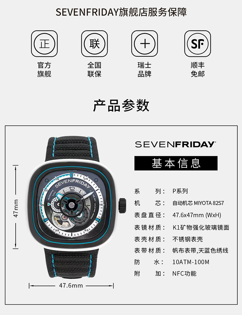 SevenFriday P系列皮带机械男表P3C-08 特别版