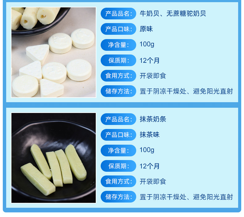 【草原直发!内蒙谷特产鲜奶乳酪】驼奶奶片奶酪棒原味草原奶酥牛奶奶片三角酪100g