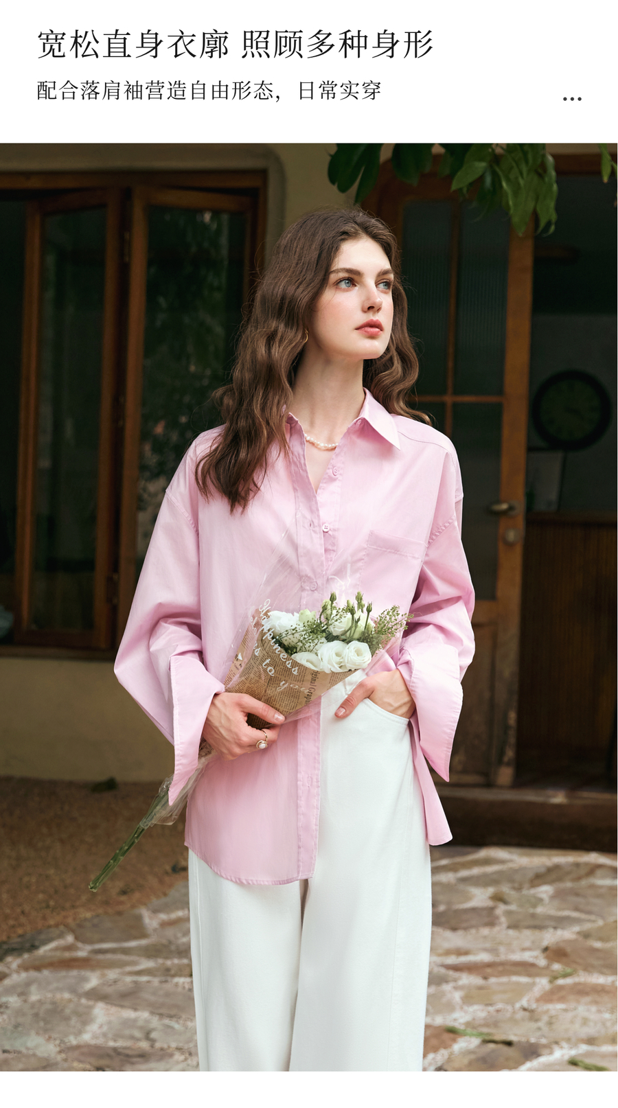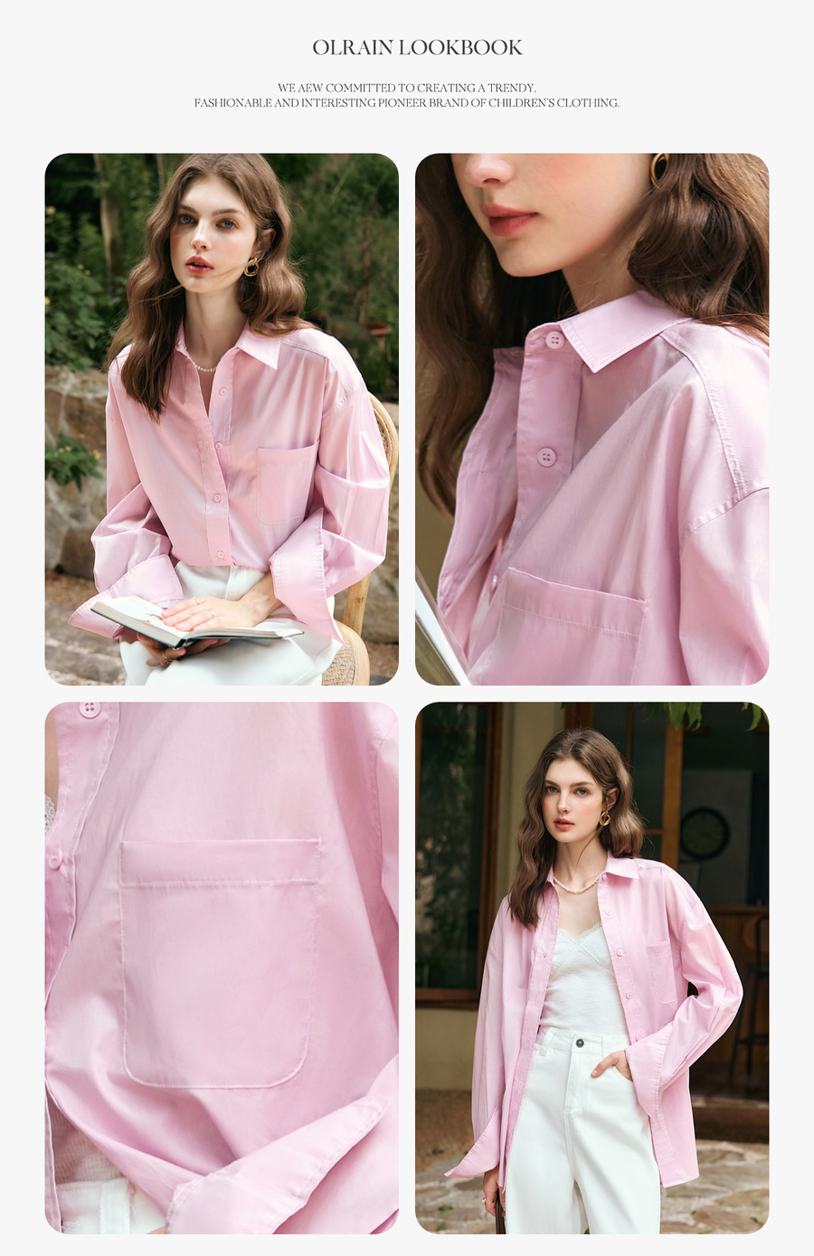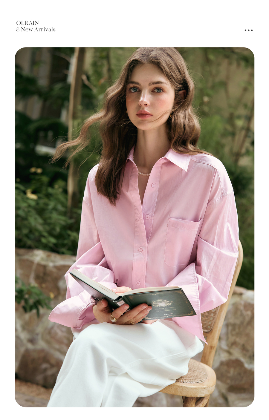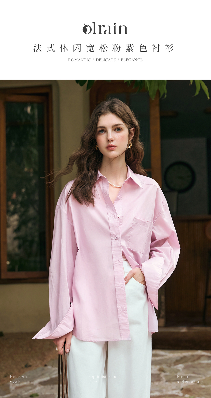OLrain欧芮儿法式粉紫色衬衫女春季2025年新款通勤百搭翻领外套