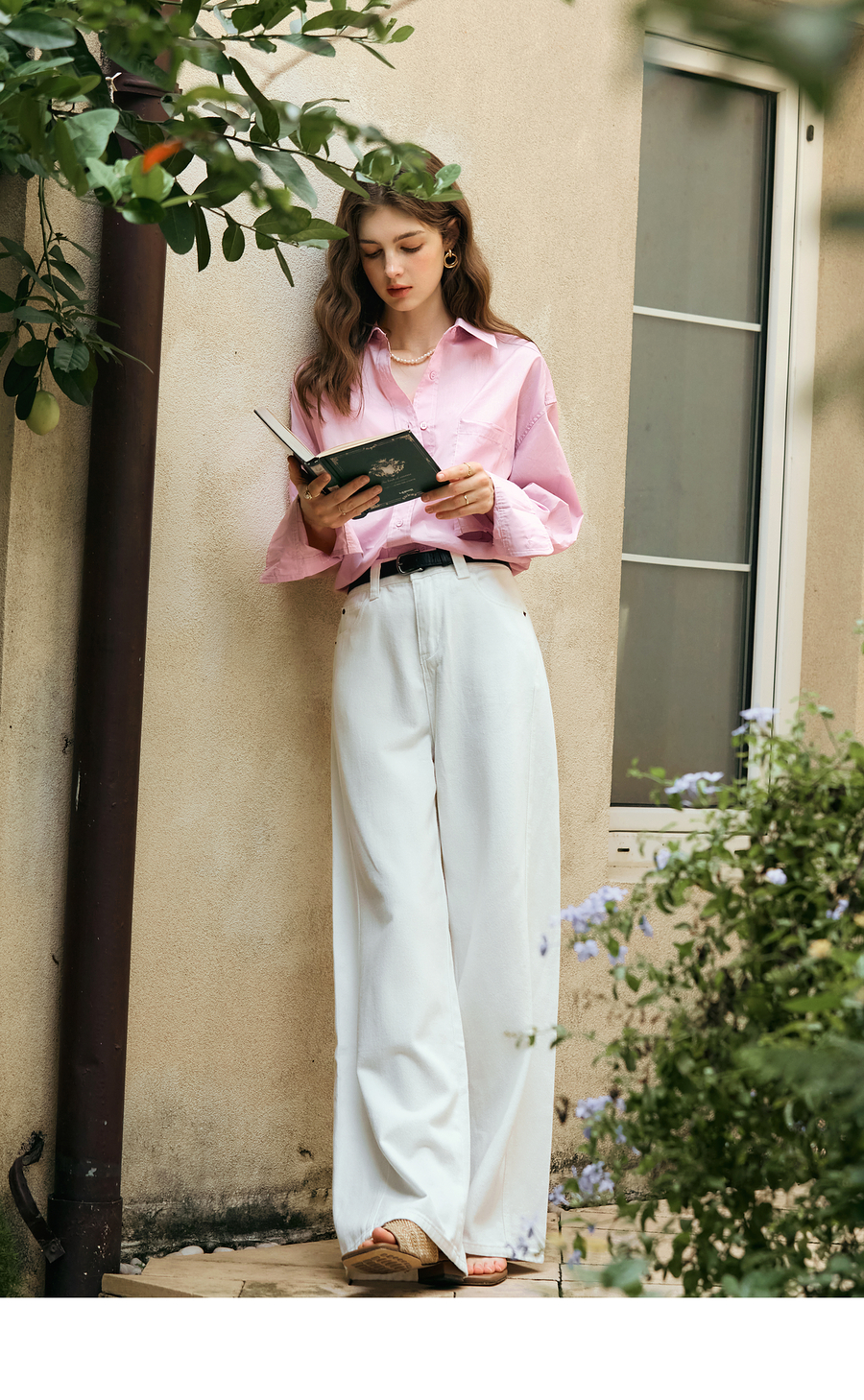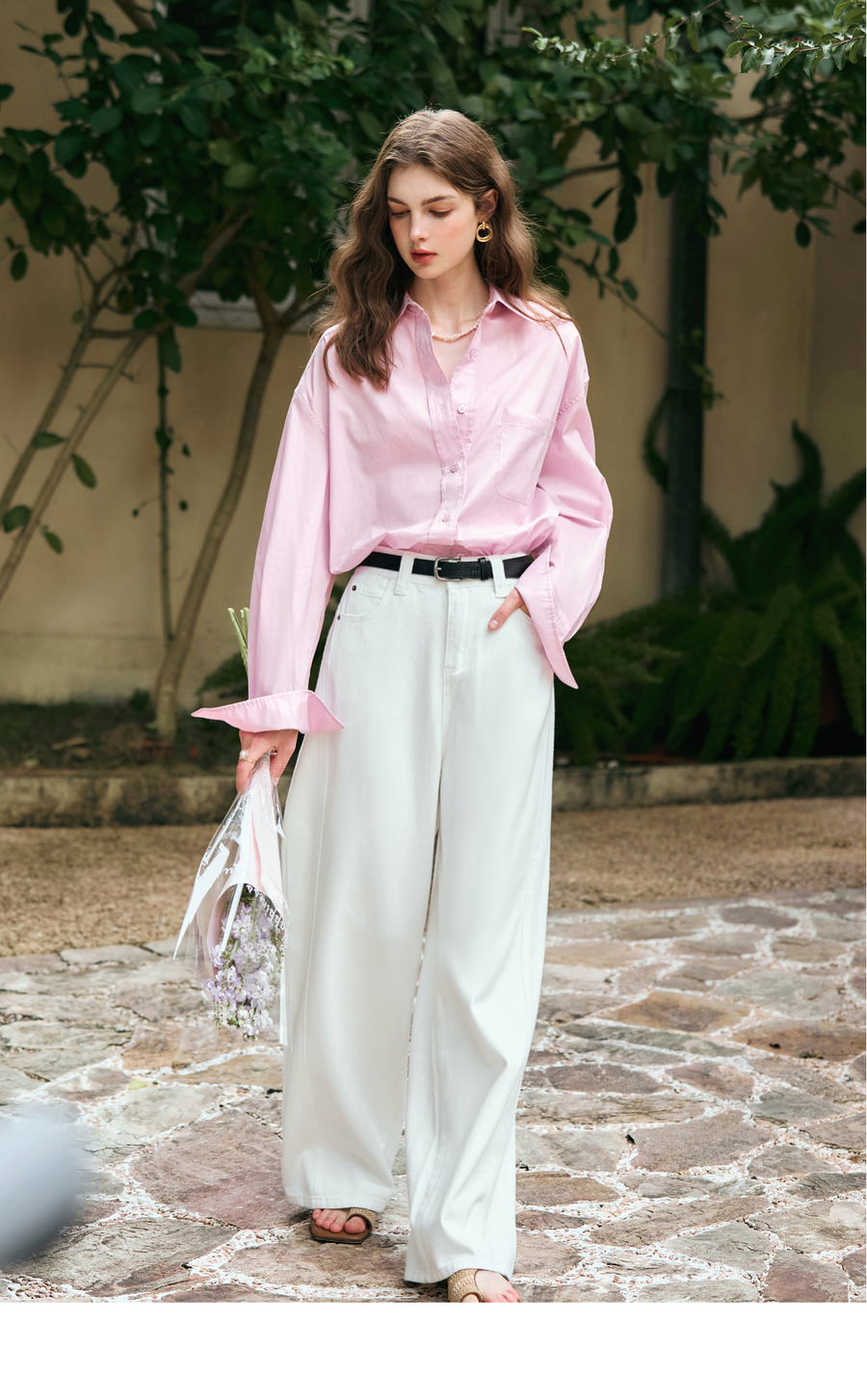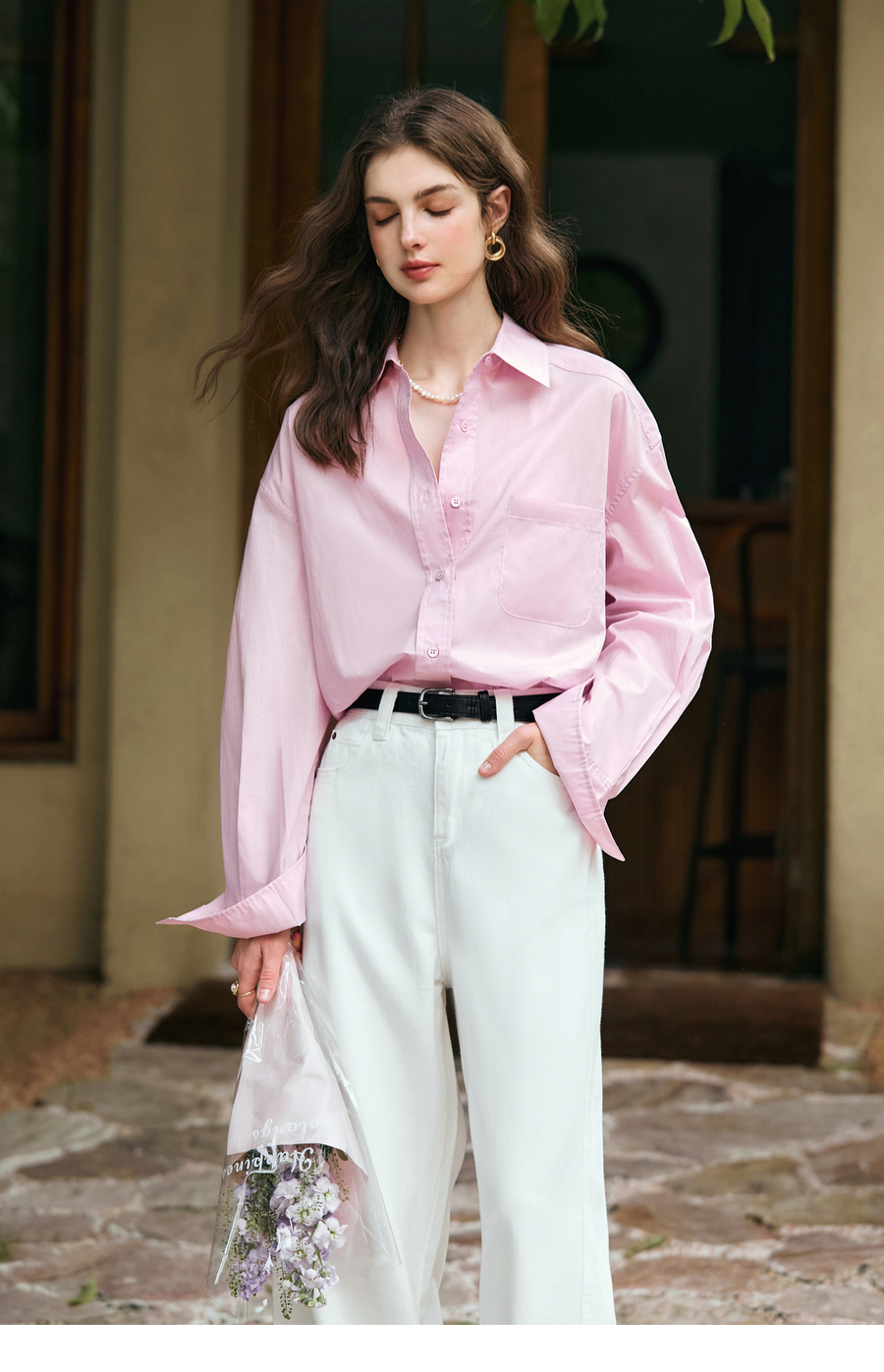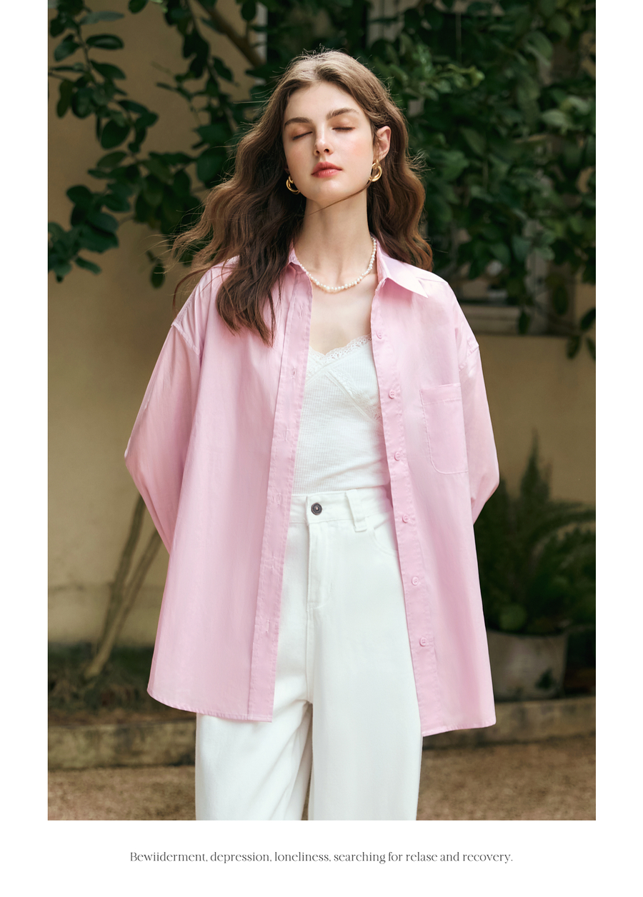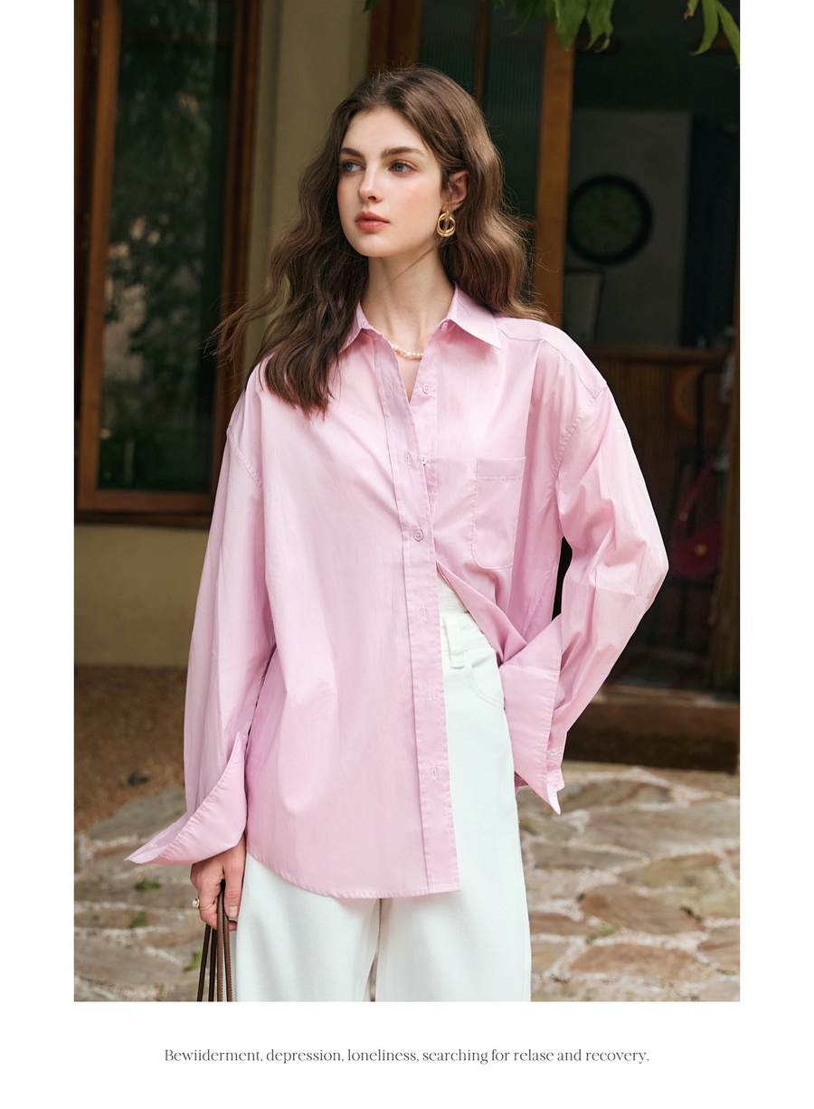 OLrain欧芮儿法式粉紫色衬衫女春季2025年新款通勤百搭翻领外套