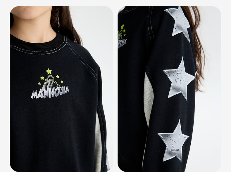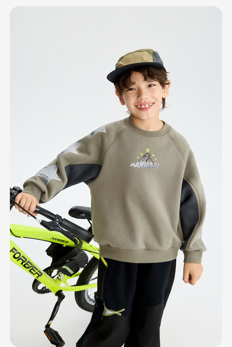 漫画家【星星卫衣】儿童卫衣冬新品男童轻暖耐磨潮流拼色卫衣
