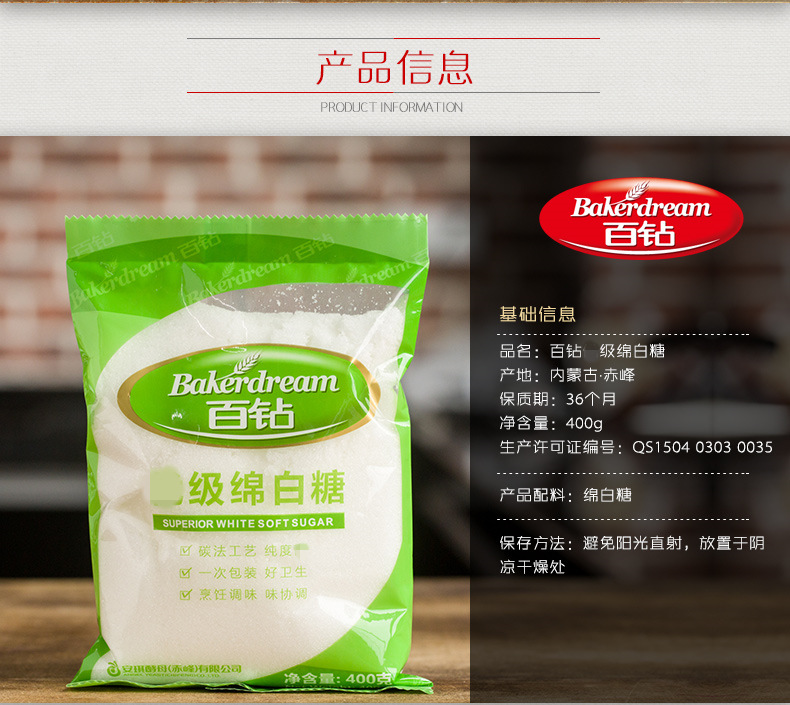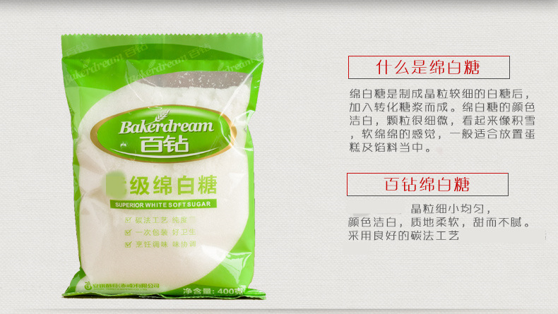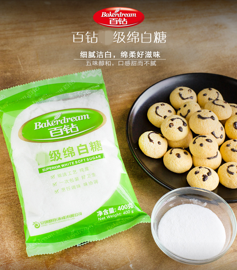 百钻绵白糖 400g 棉白糖食糖厨房烘焙调味品 烘焙原料