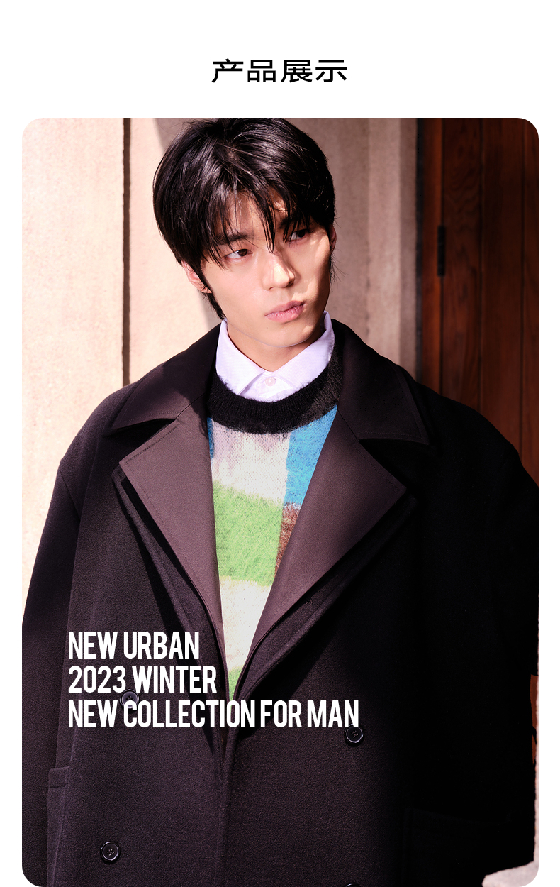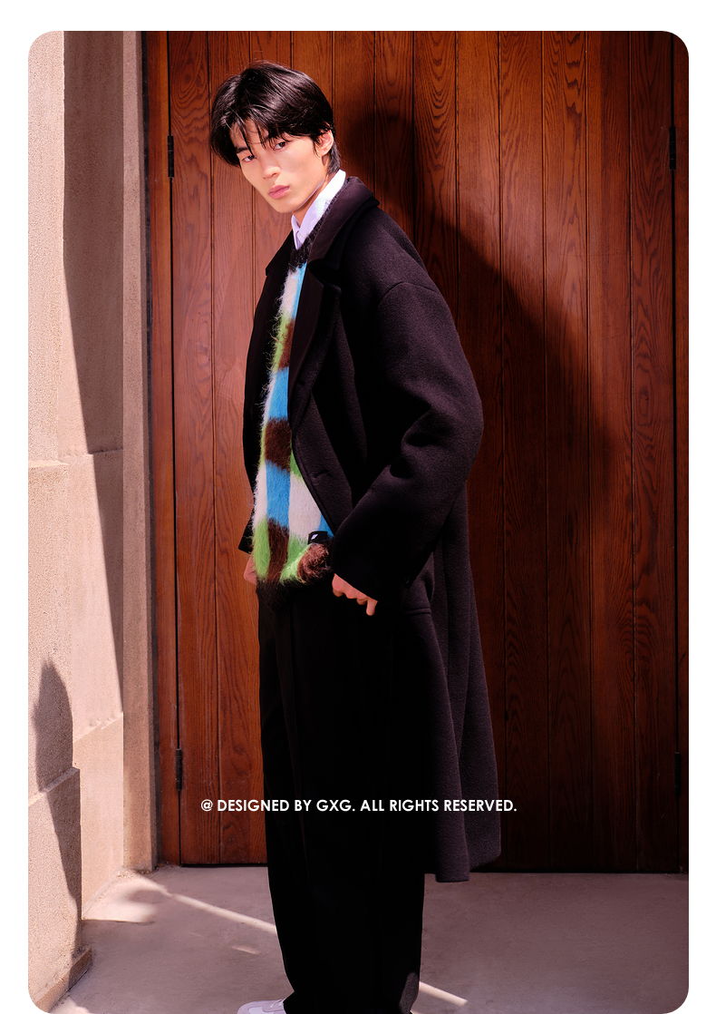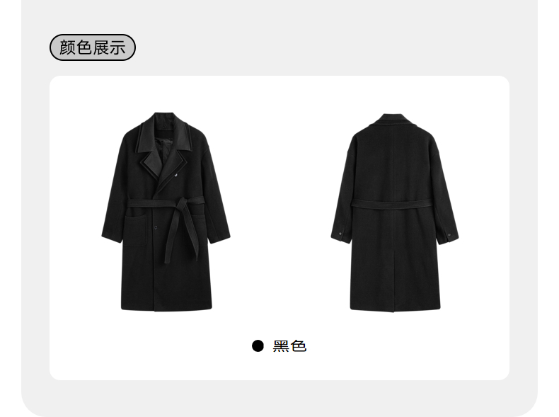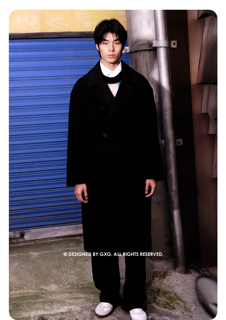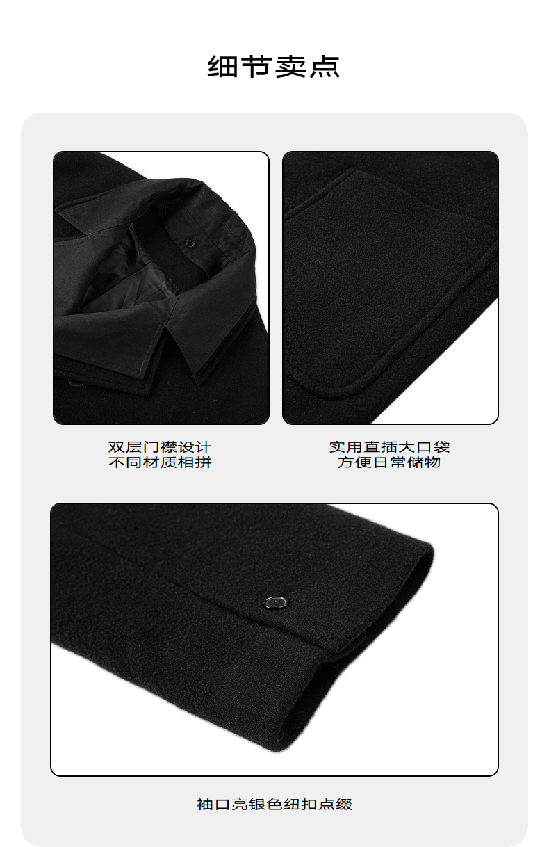 GXG男装 黑色双门襟时尚毛呢大衣男呢大衣风衣外套 冬季热卖大衣