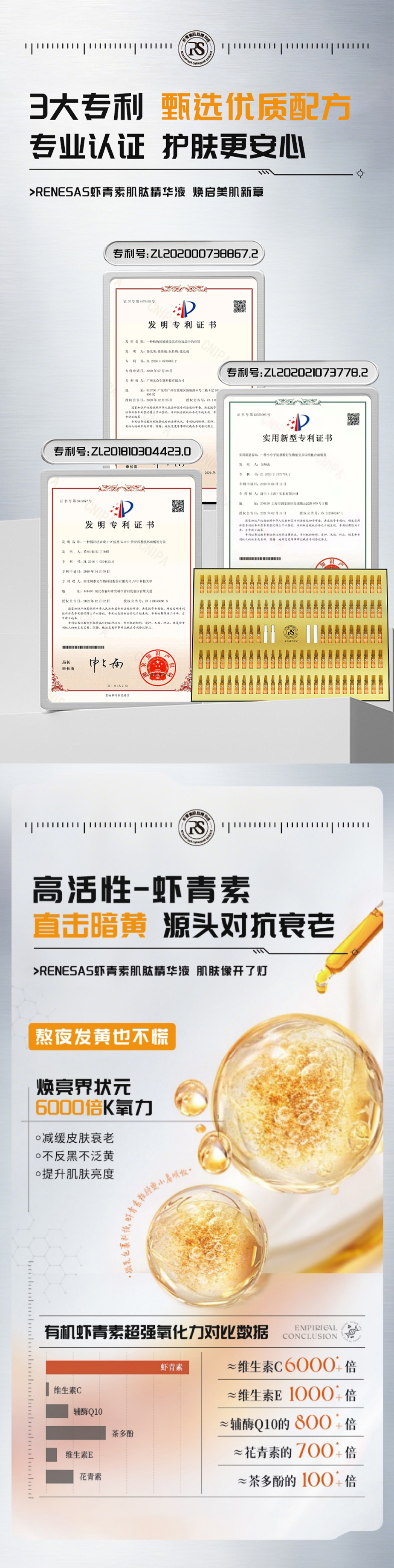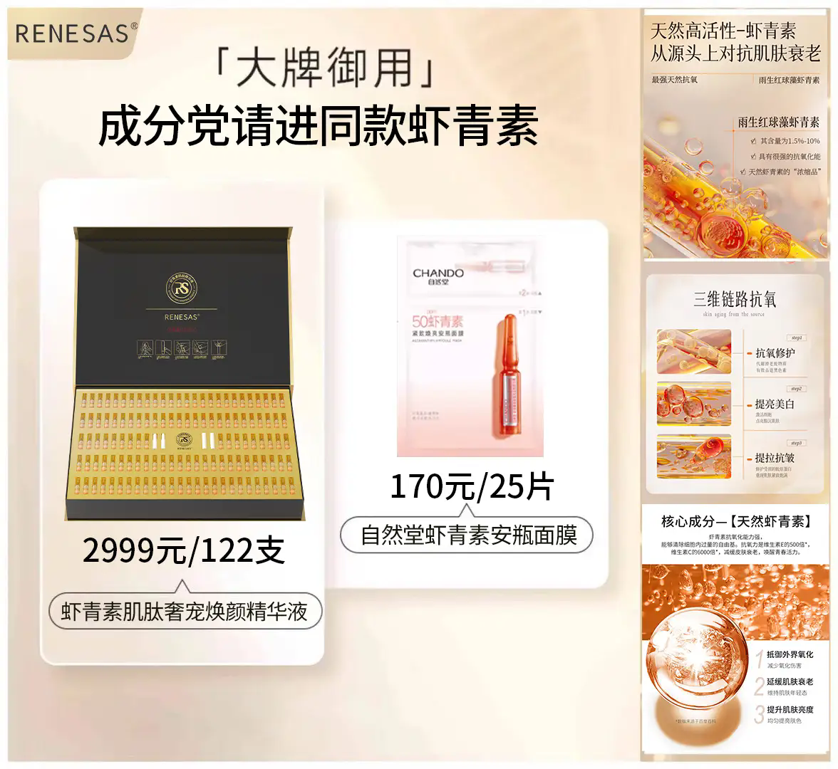 ⭐ 产品名称:RENESAS虾青素肌肽精华液套盒