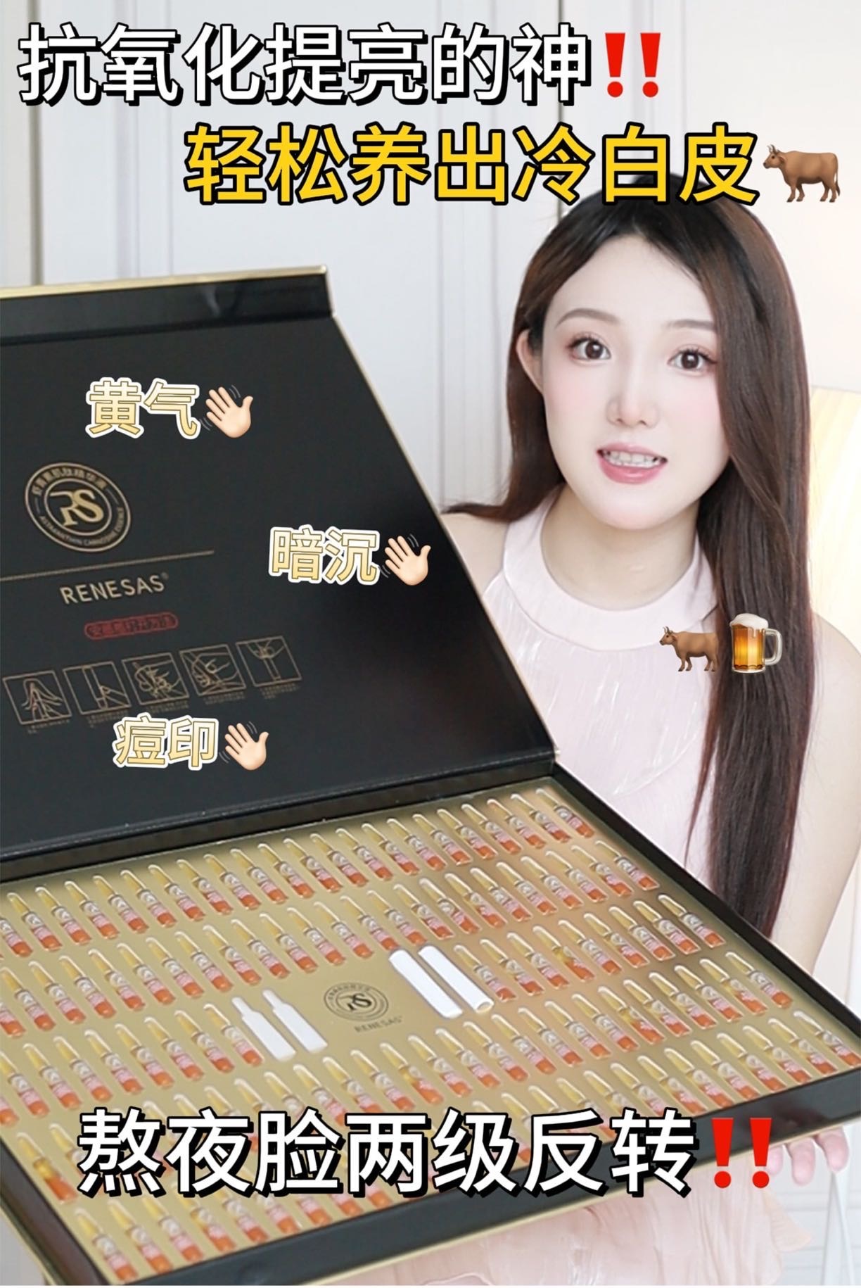 【多妈团购 RENESAS虾青素肌肽精华液套盒共122支】糖化氧化双杀!1支=10瓶普通精华,保湿、祛黄、抗糖,毛孔粗大,细纹频生,垮脸直接闭眼入-金克丝