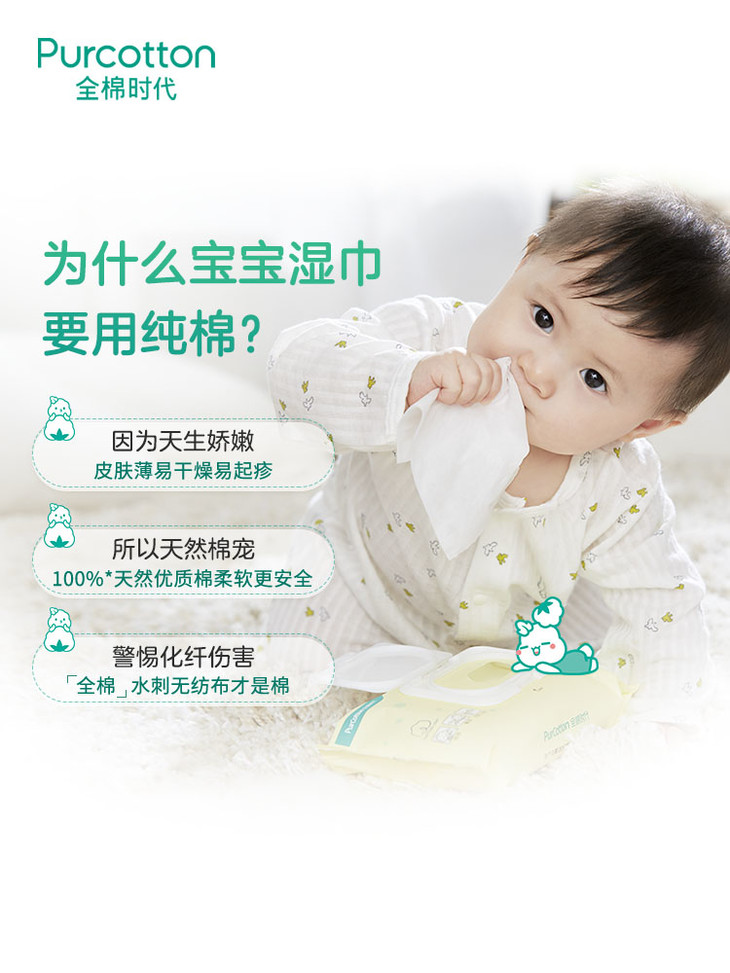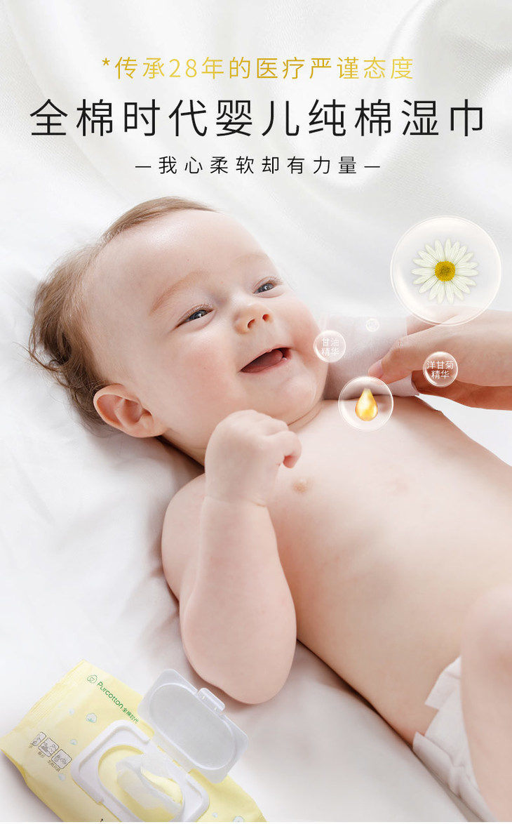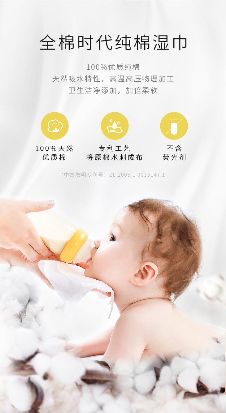 (超值)全棉时代 婴儿纯棉湿巾 新生宝宝 80片*3包
