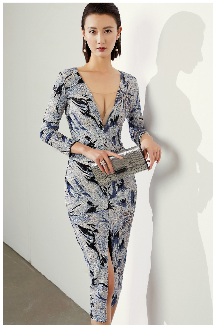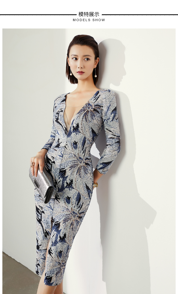 礼服 连衣裙-J4190A 珠片装新款通勤修身女士气质时尚包臀连衣裙颈袖添香