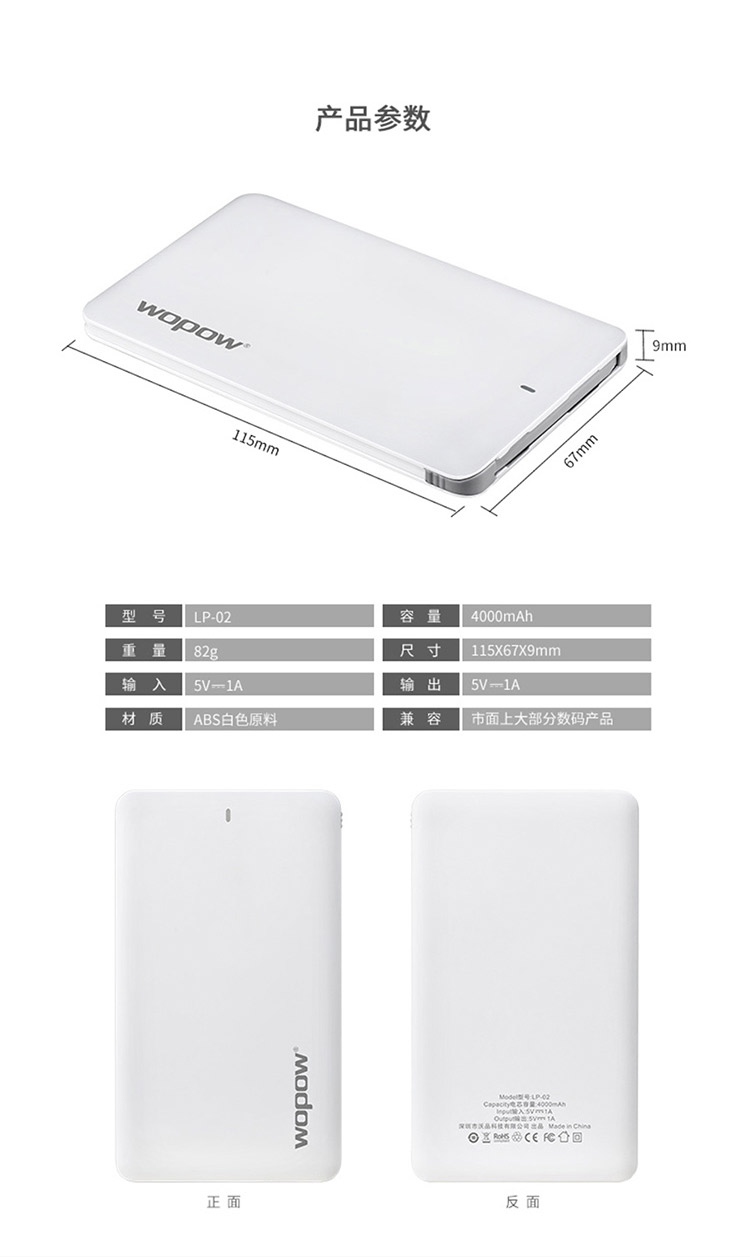 沃品 超薄移动电源 LP-02