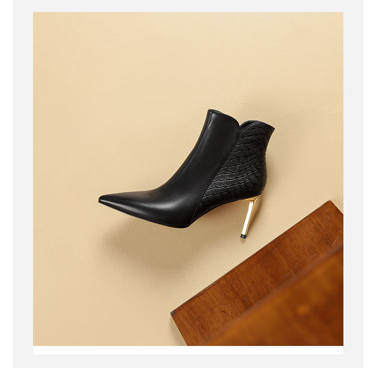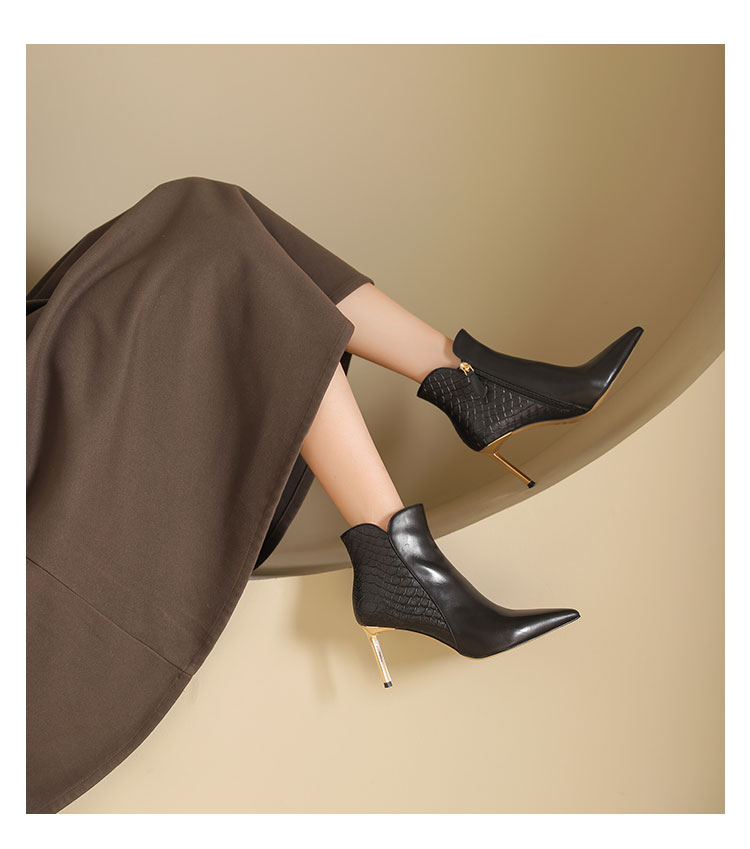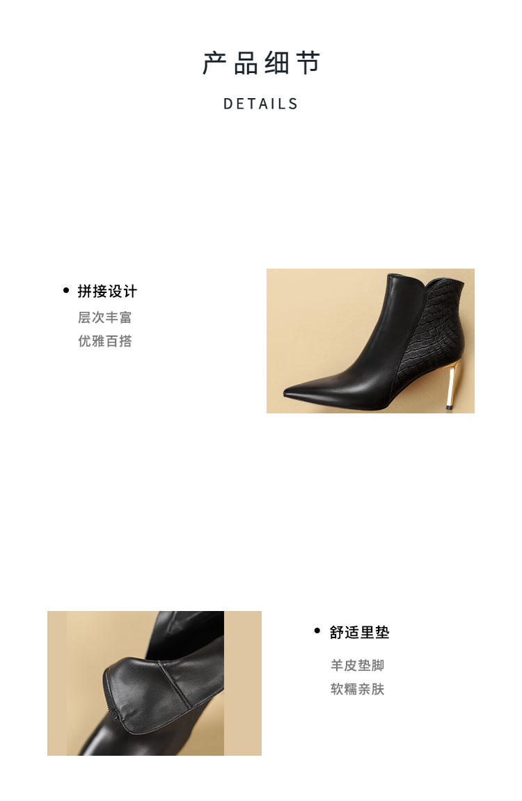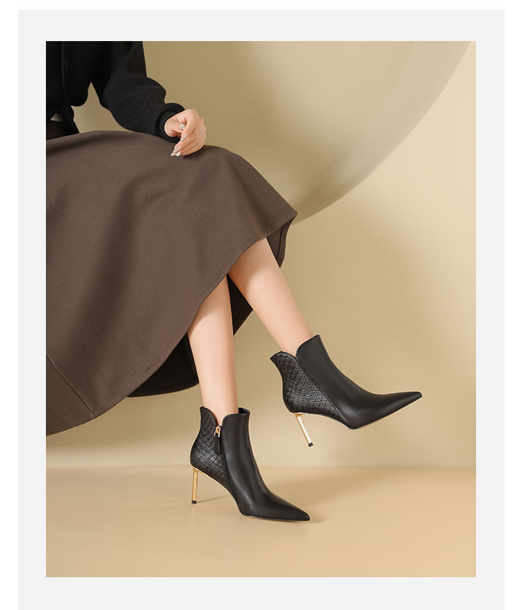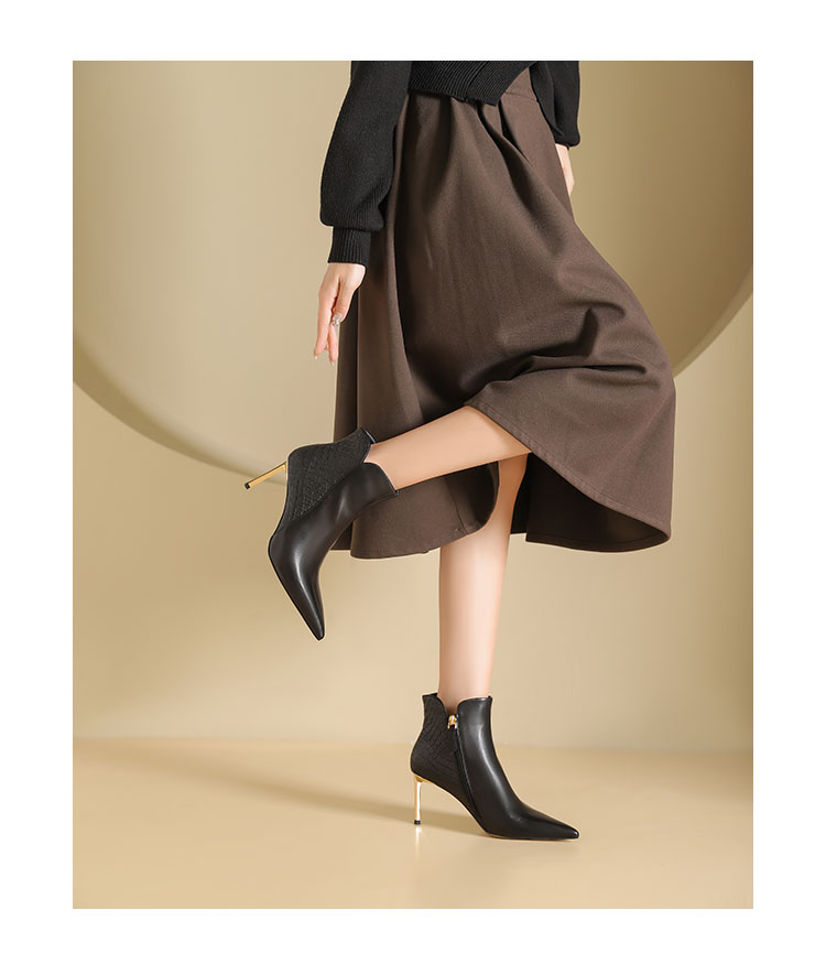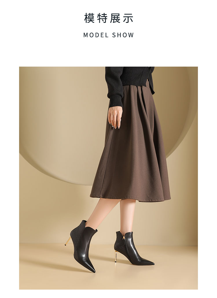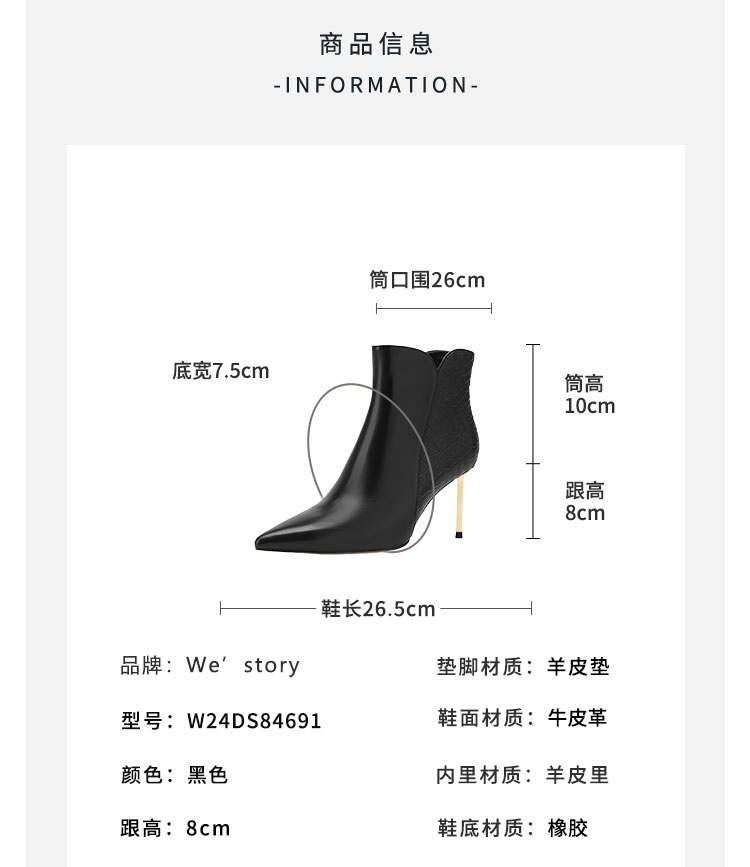 westory2024年秋冬新款优雅风细高跟小尖头短靴切尔西靴W24DS84691