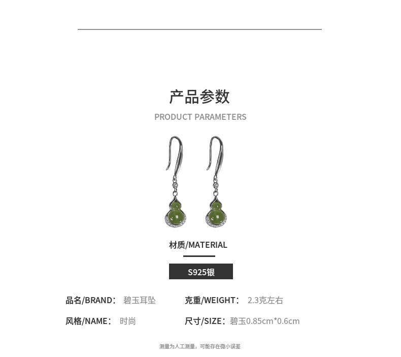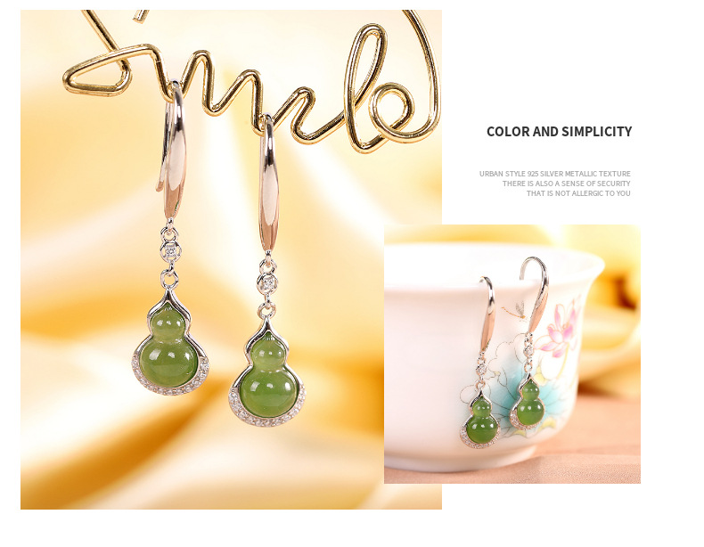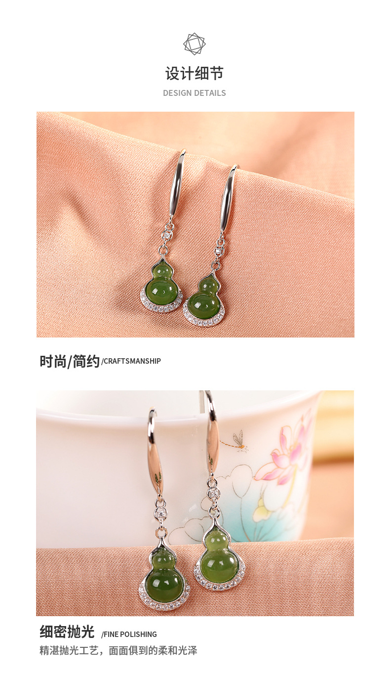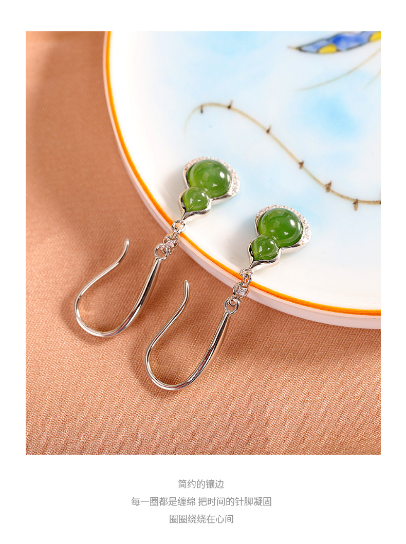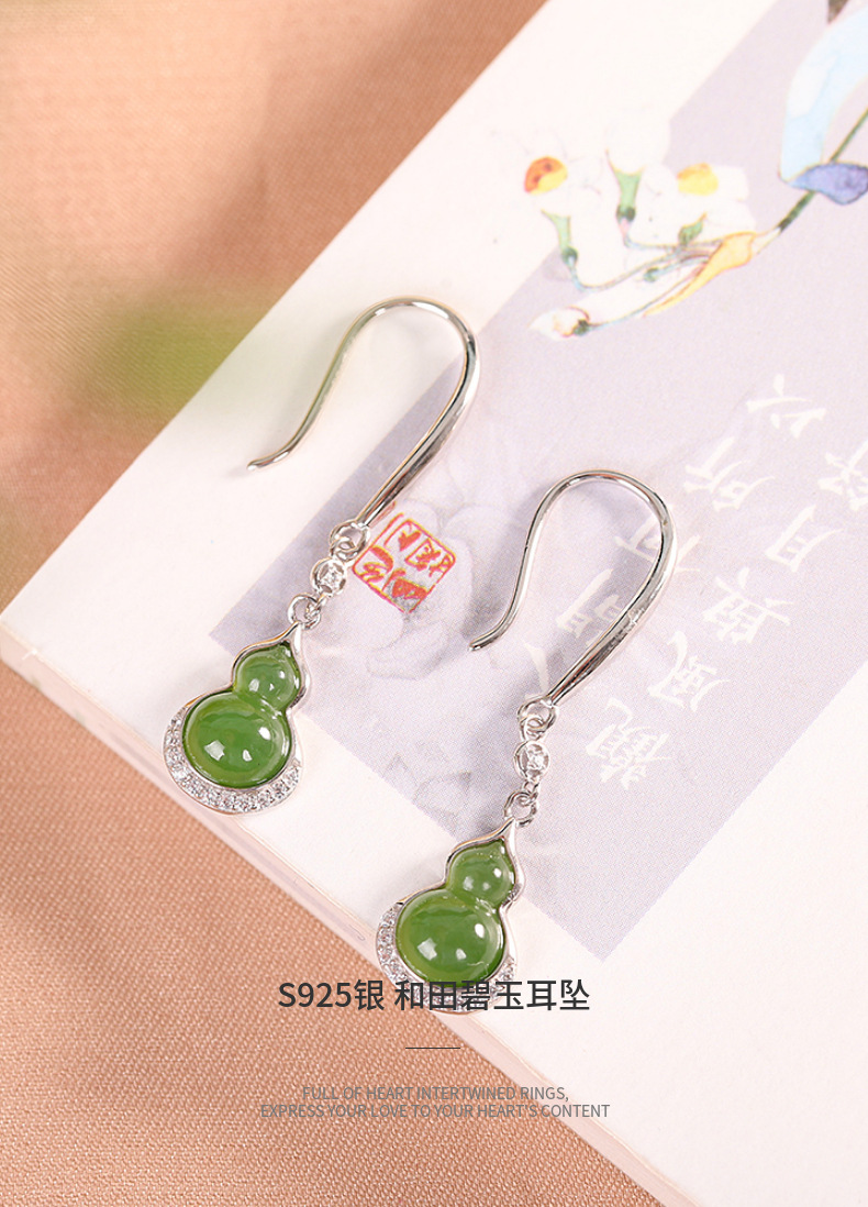 【福禄珍喜】S925纯银和田玉碧玉福禄葫芦耳饰【RP-EZ620027】