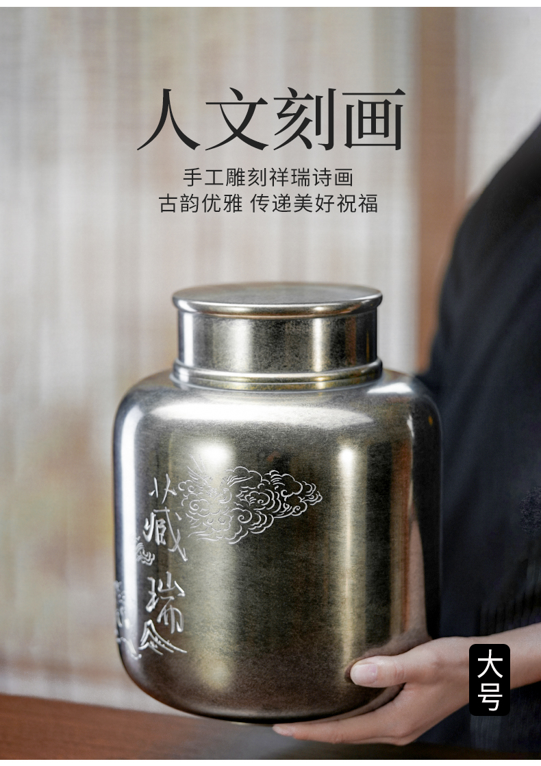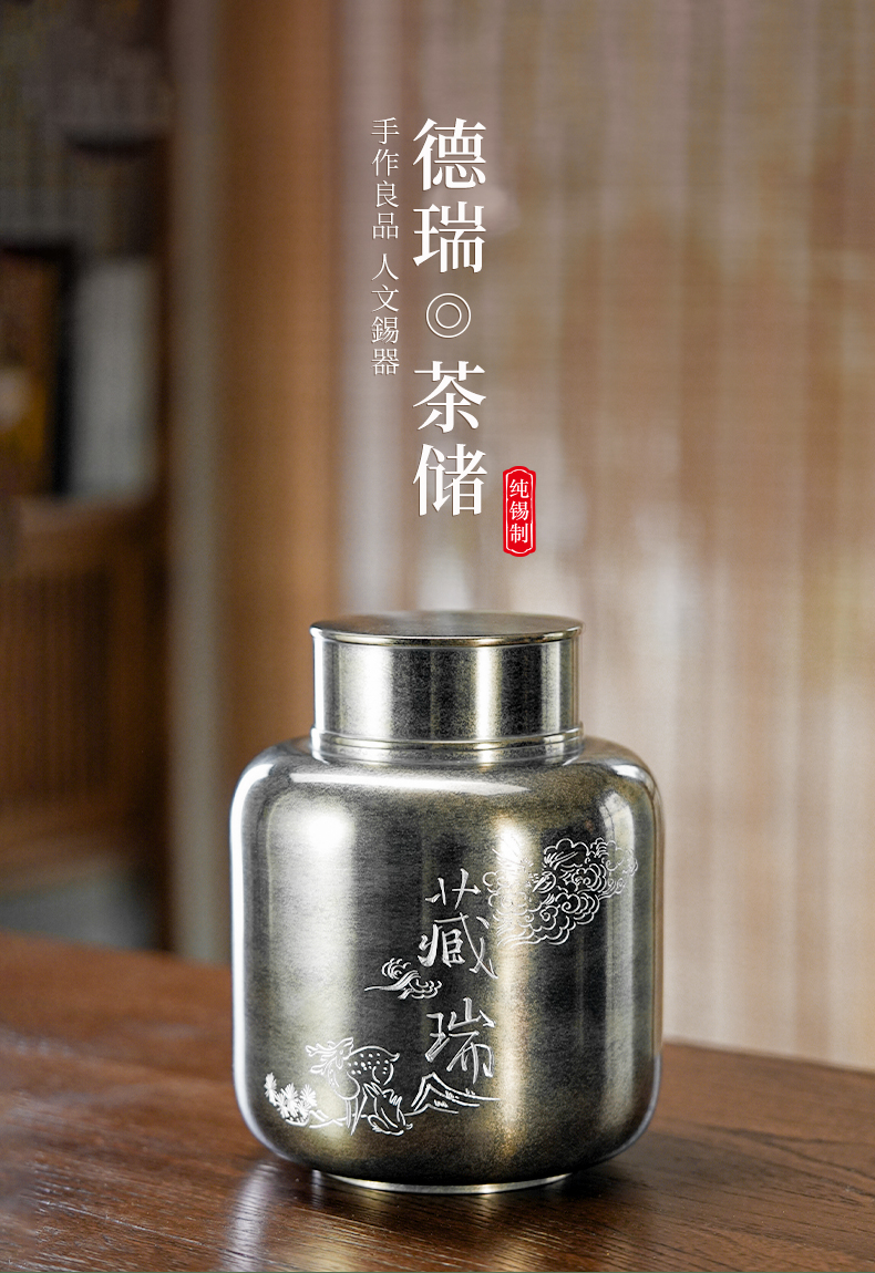 斑锡龙德瑞茶仓锡罐茶储超大号仿古茶叶罐纯锡手工密封储茶罐防潮保鲜