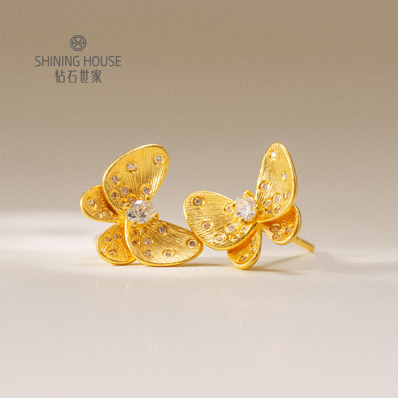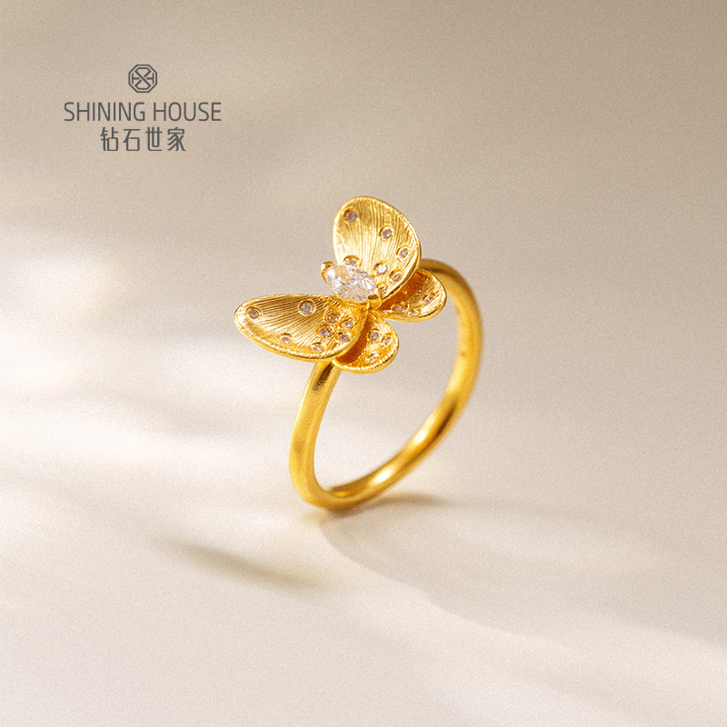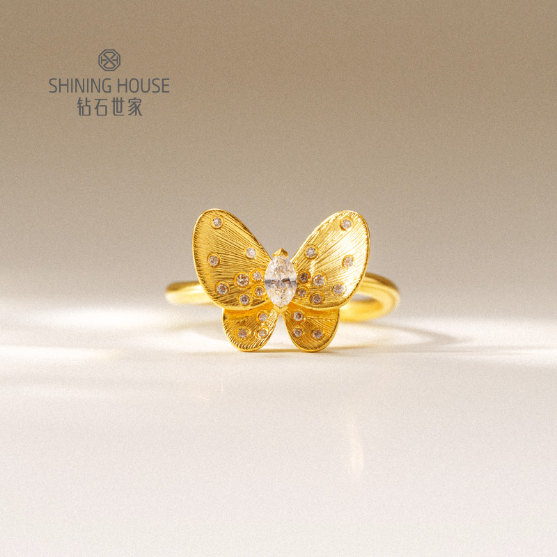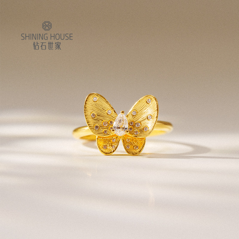 【梦蝶系列】钻石世家 足金钻石“梦蝶”系列套装 足金钻石项链、足金钻石戒指、足金钻石耳饰 【黄金产品不支持无理由退换货】预计3-5天发货