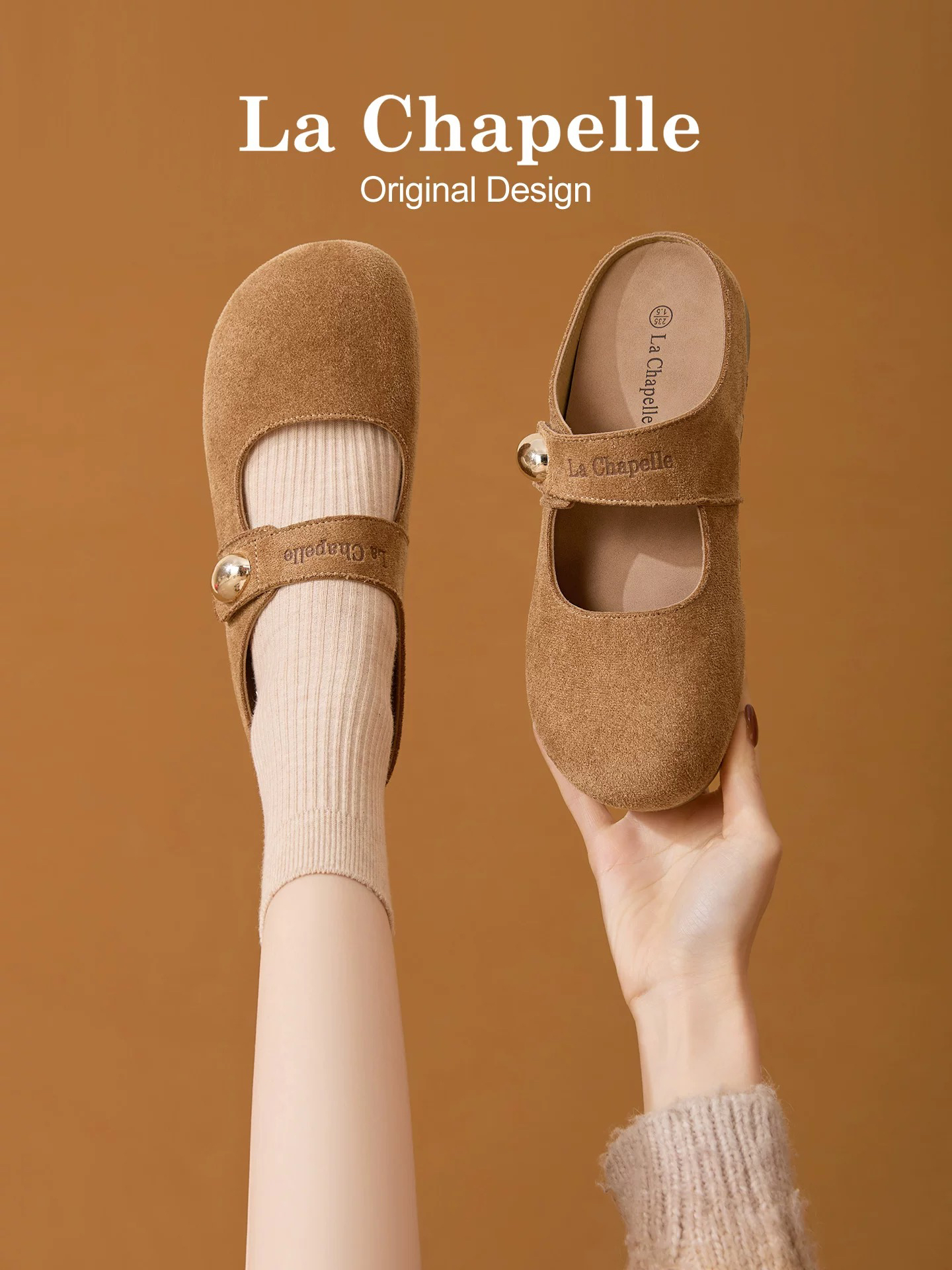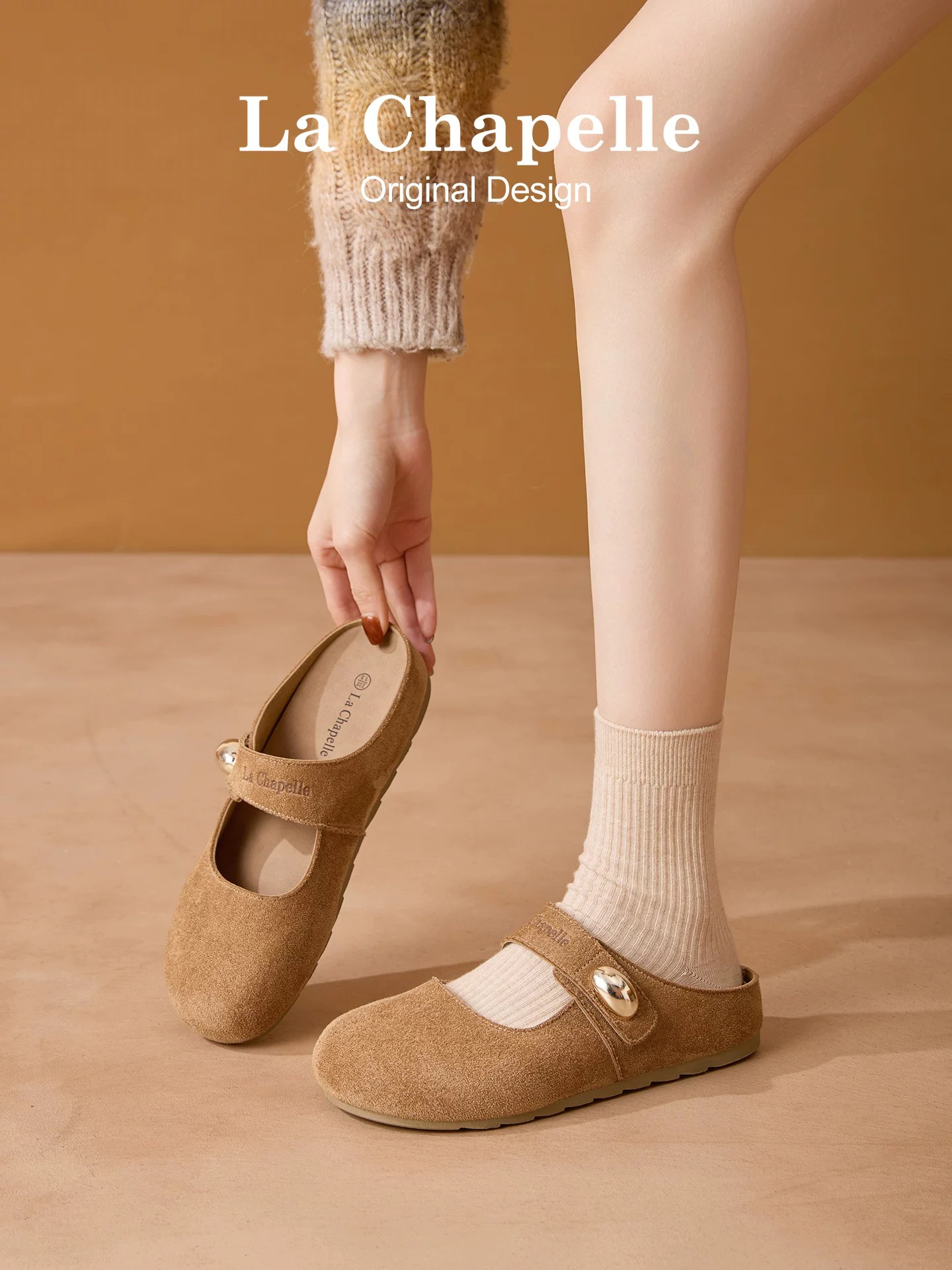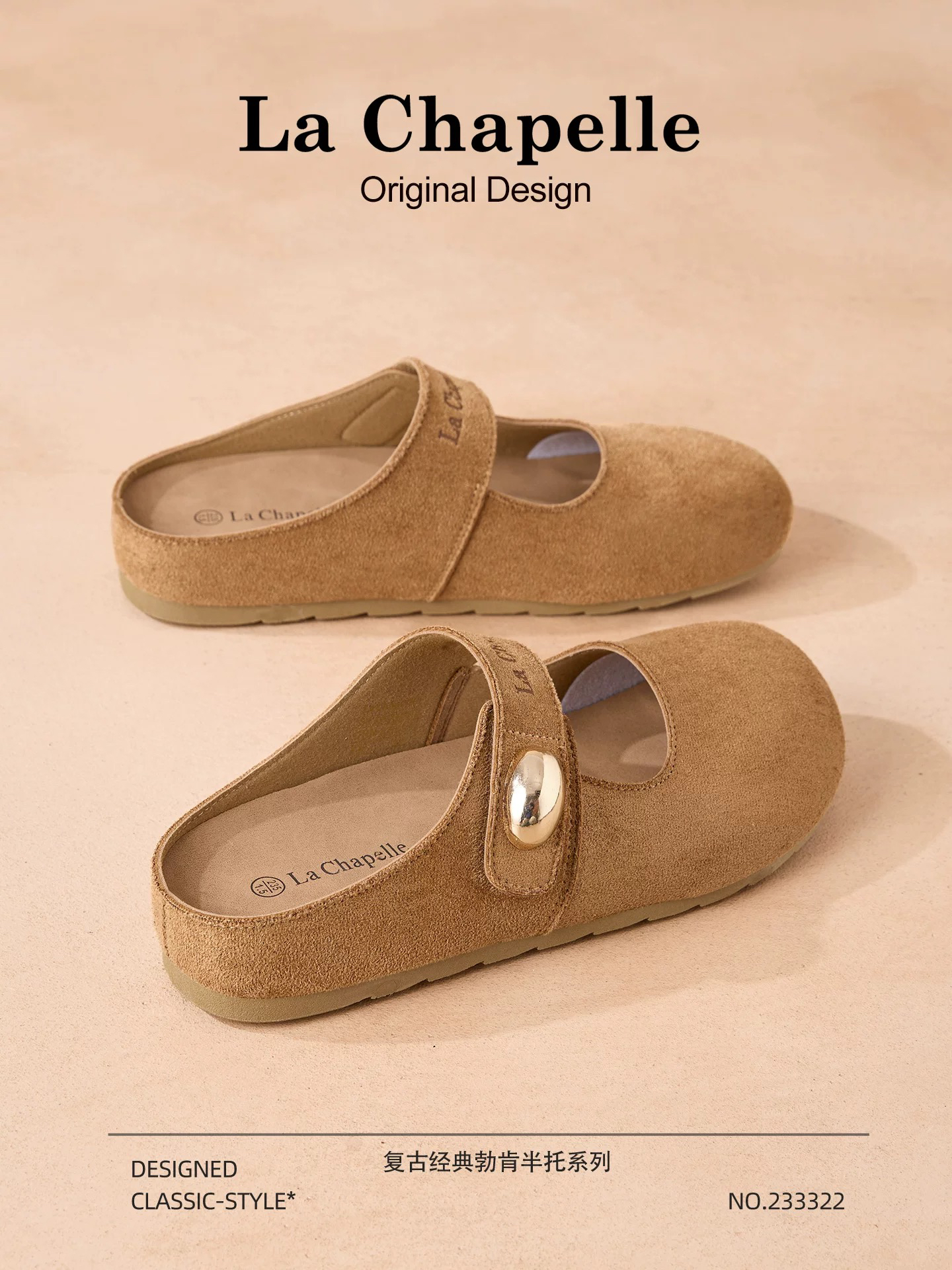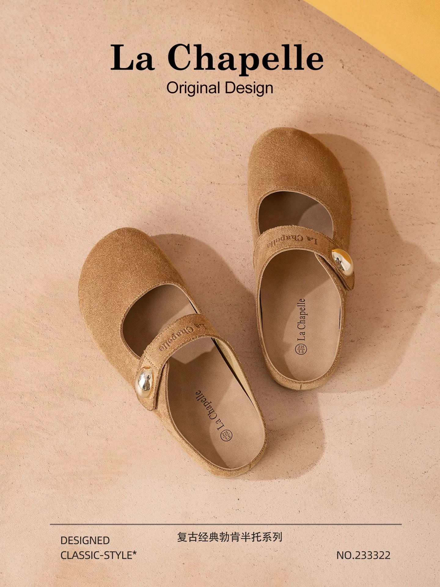 XY|拉夏贝尔勃肯鞋女包头半拖鞋一脚蹬懒人厚底博肯单鞋XXE578