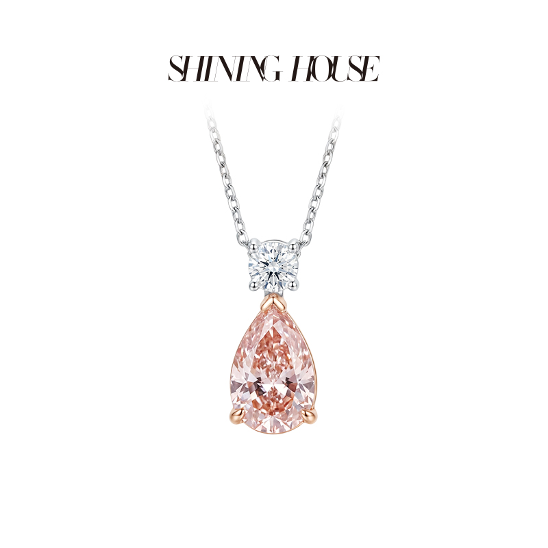 ShiningHouse[培育] 粉钻系列 18k金钻石吊坠 水滴形1克拉钻人工真钻人造钻石K金吊坠时尚钻石吊坠卓越匠心奢耀臻献【此商品不支持7天无理由退货退款】预计3日发货(单吊坠,图片为搭配展示)