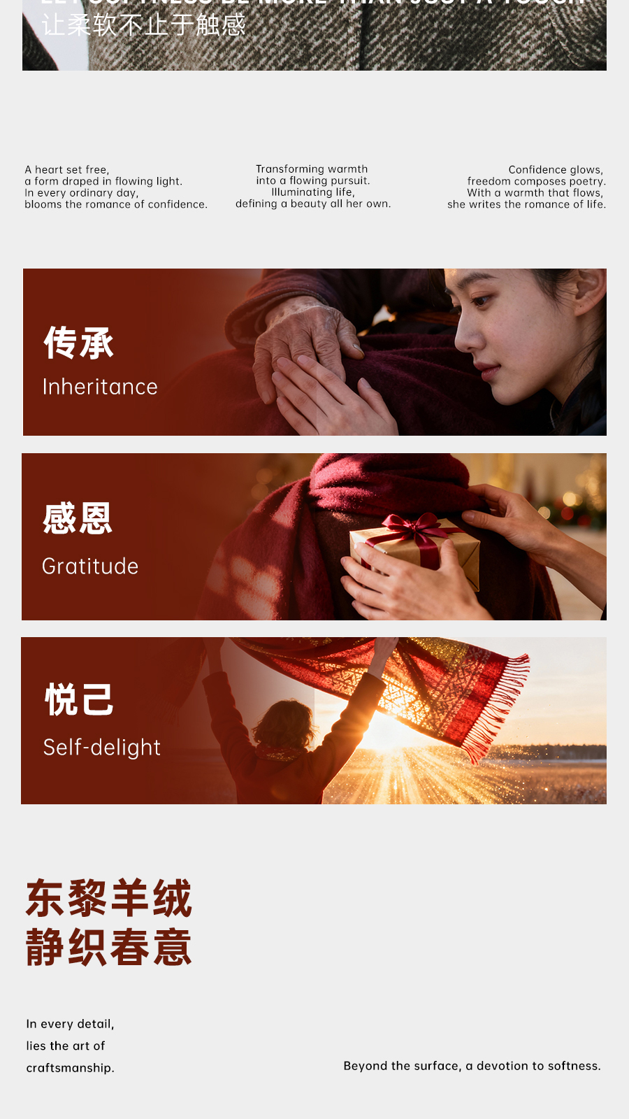 东黎羊绒是赤峰东荣集团自主品牌,自有牧场/羊绒制品全产业链优势,实现了羊绒从“牧场”到“商场”的华丽转变。