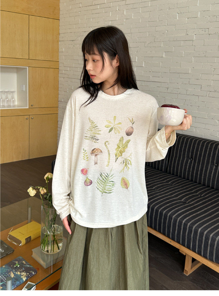 nothe Case布然/NC261627/nothe Case「植物叶片」棉麻感软糯印花T