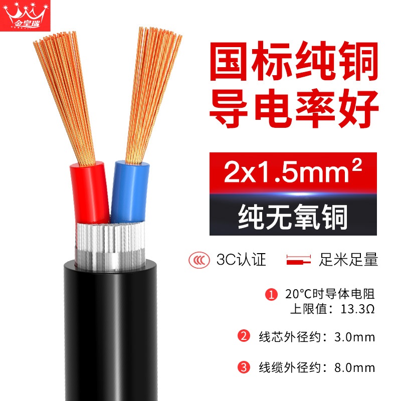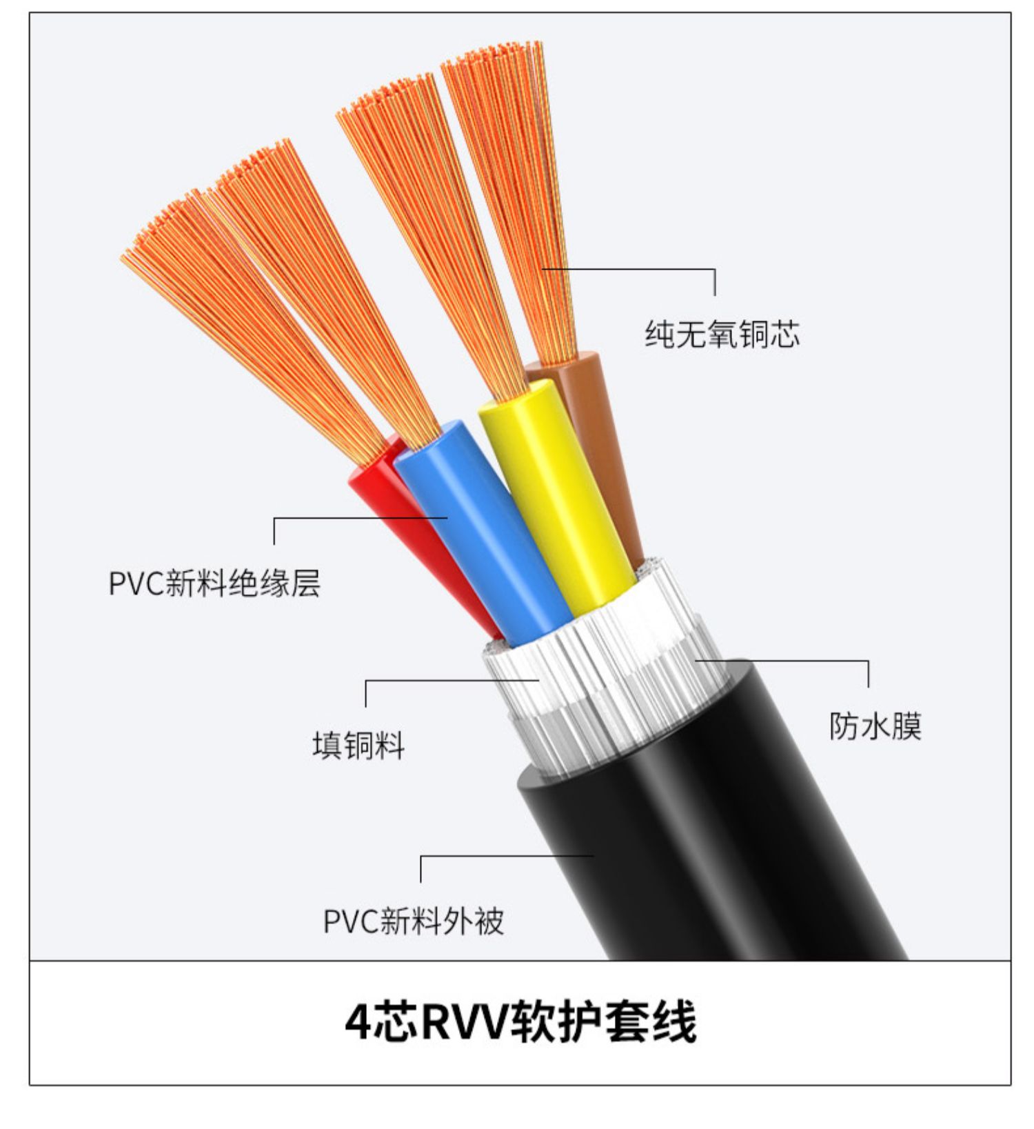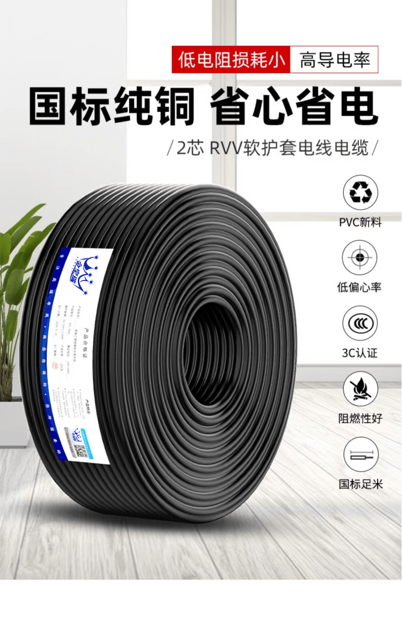 爆款★热销【 国标@包检】RVV电线软电缆线2/3/4/5/6/8芯0.5 0.75 1.0 1.5 2.5 4.0 6.0平方铜芯电源线电线护套线家用连接户外监控电缆线抄表消防电气供电线(防水抗冻)