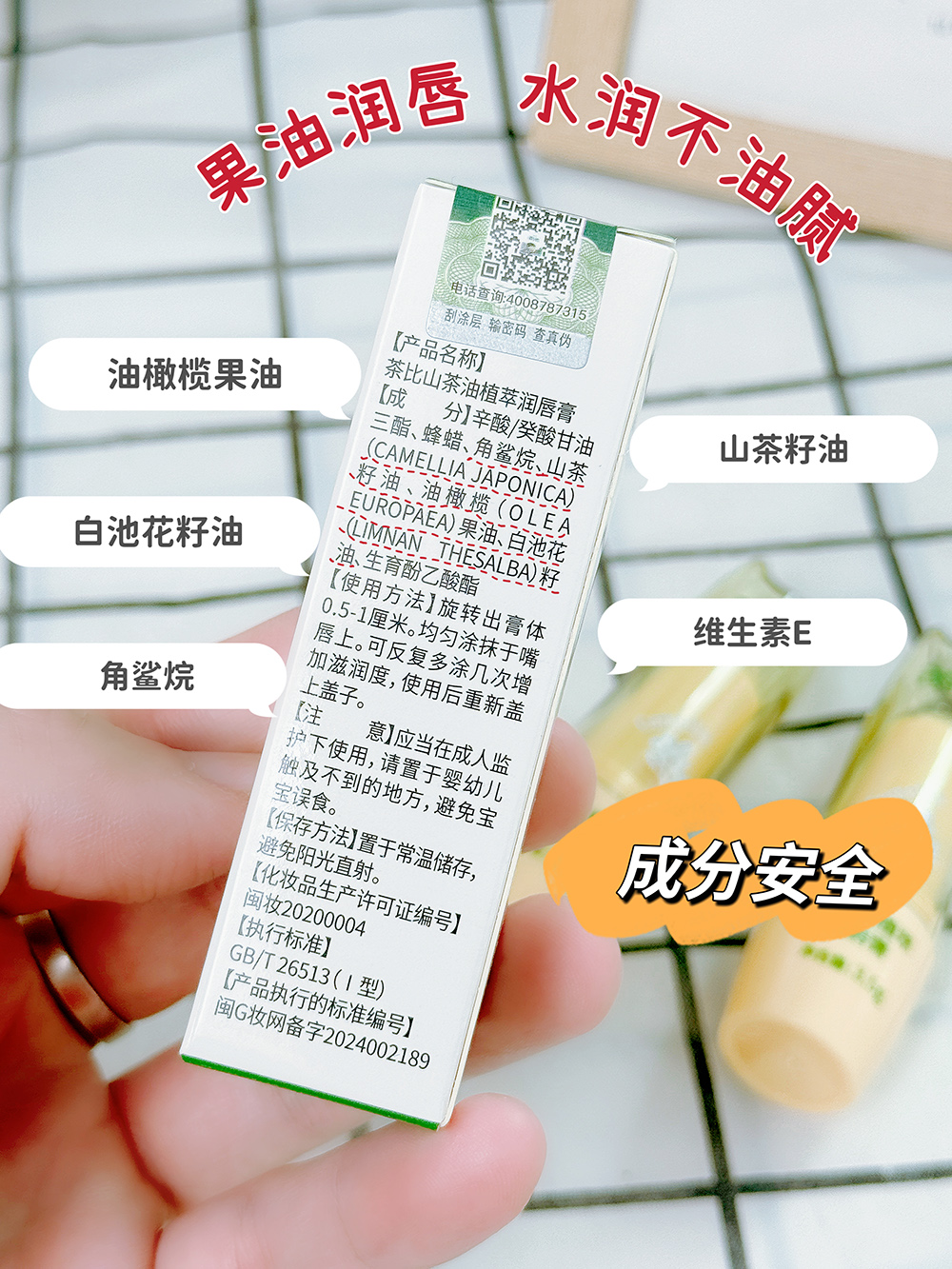 【预售-12月24日配送】【到手2支】茶比山茶油植萃润唇膏/1份(3.5g*2支)