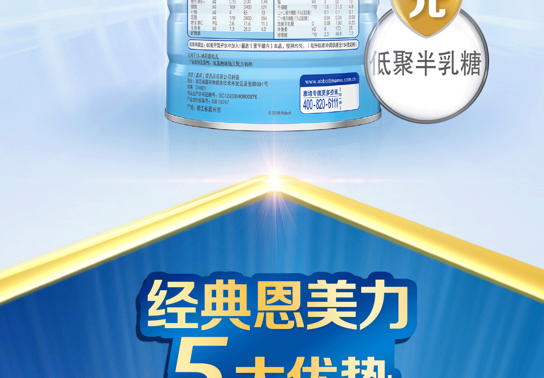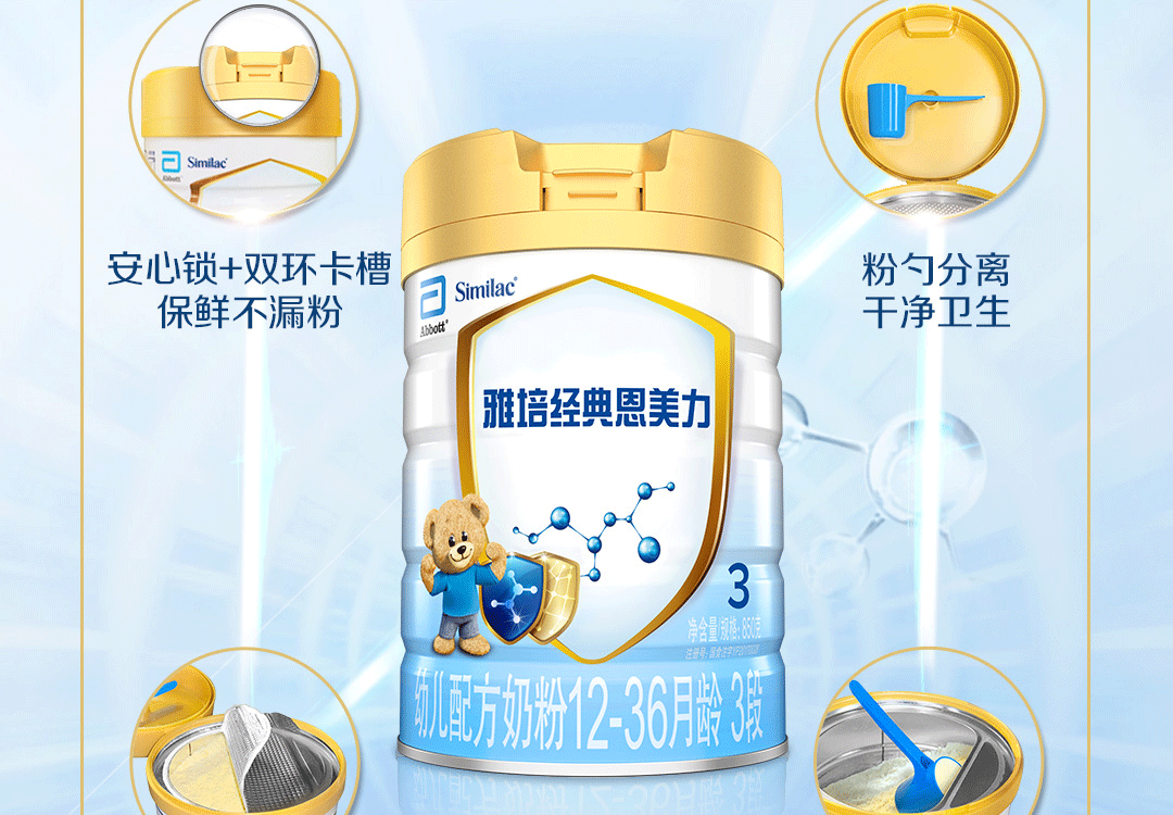 雅培经典恩美力幼儿配方奶粉3段850g(原雅培亲体金装喜康力)
