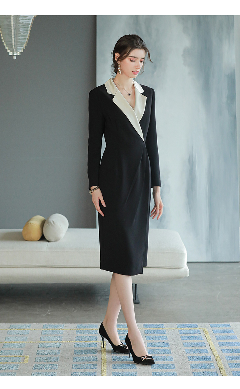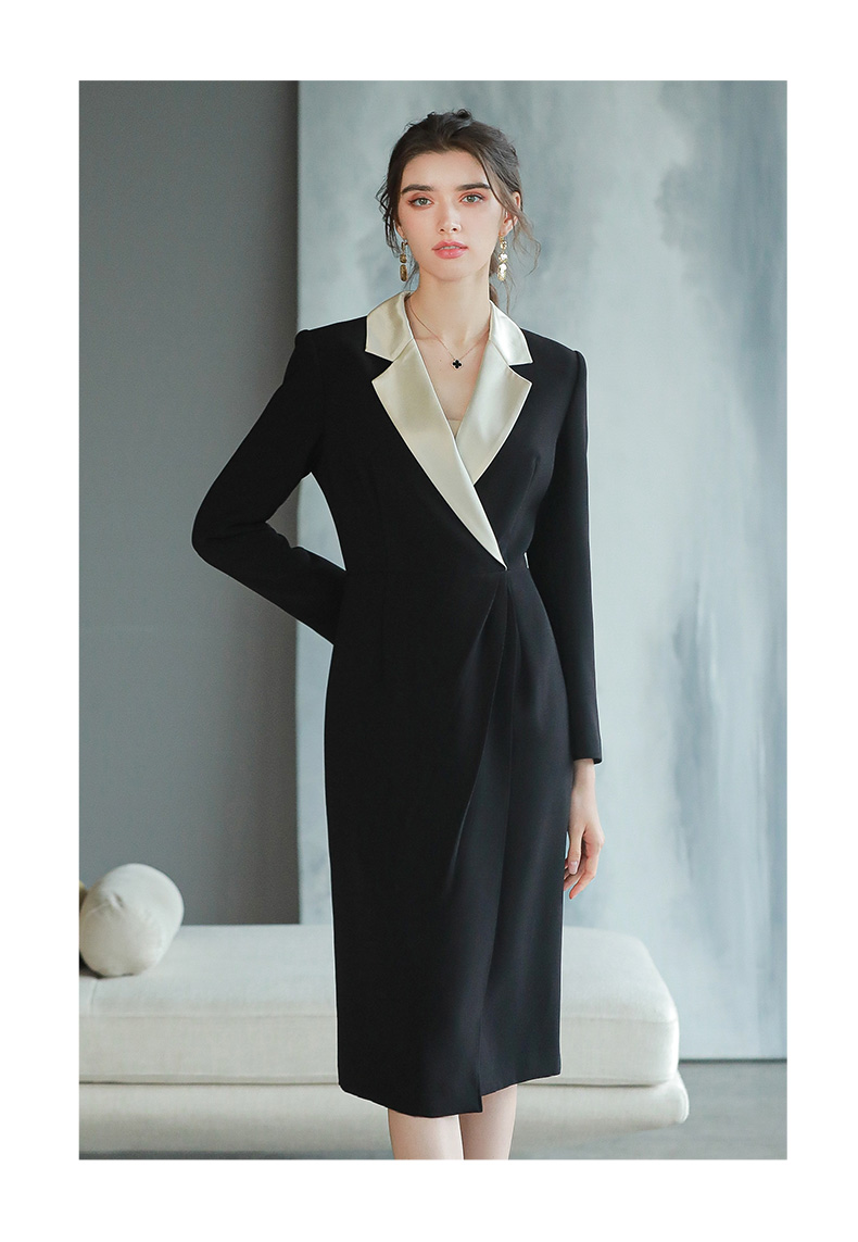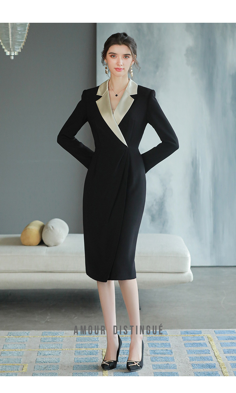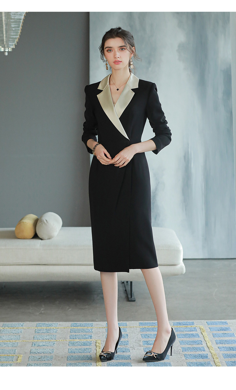 黑色职业连衣裙轻奢感正式场合醋酸西装裙子主持人正装裙Q693