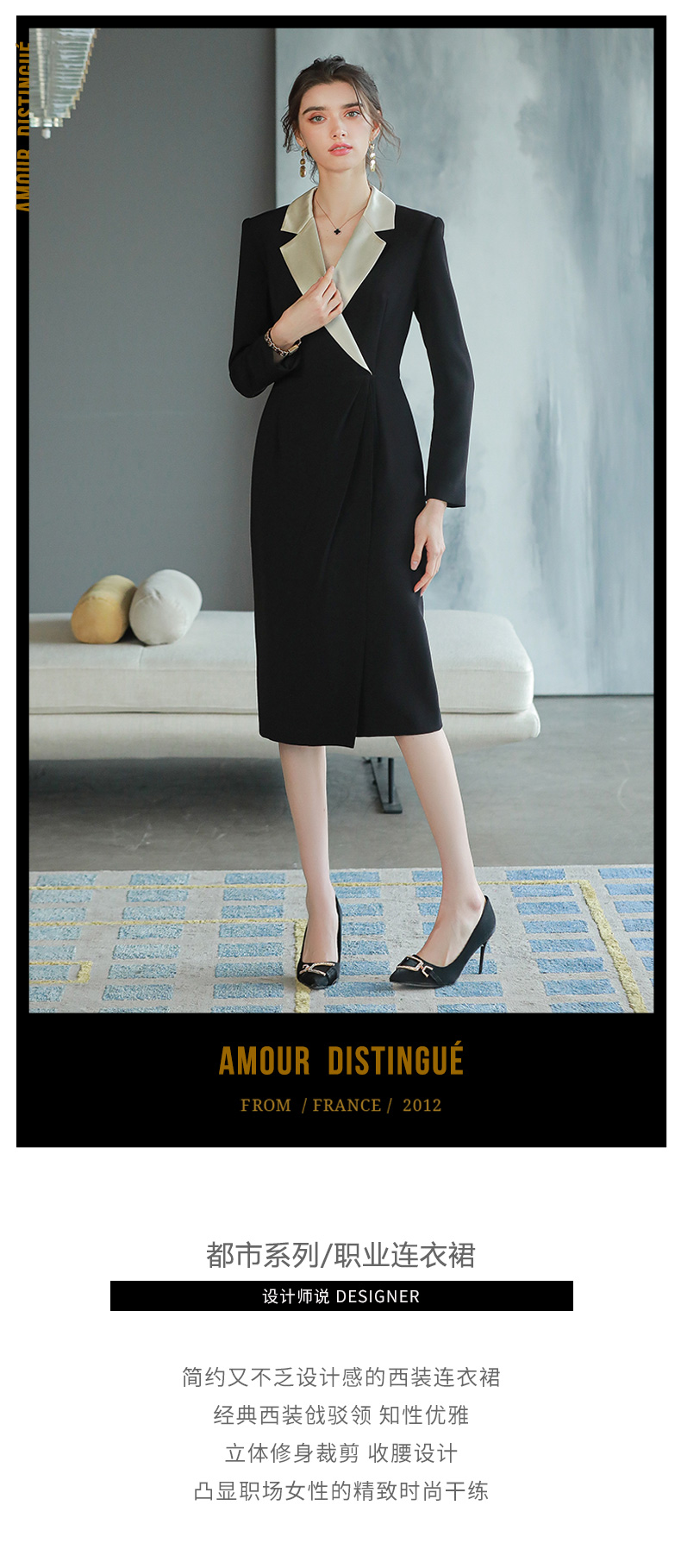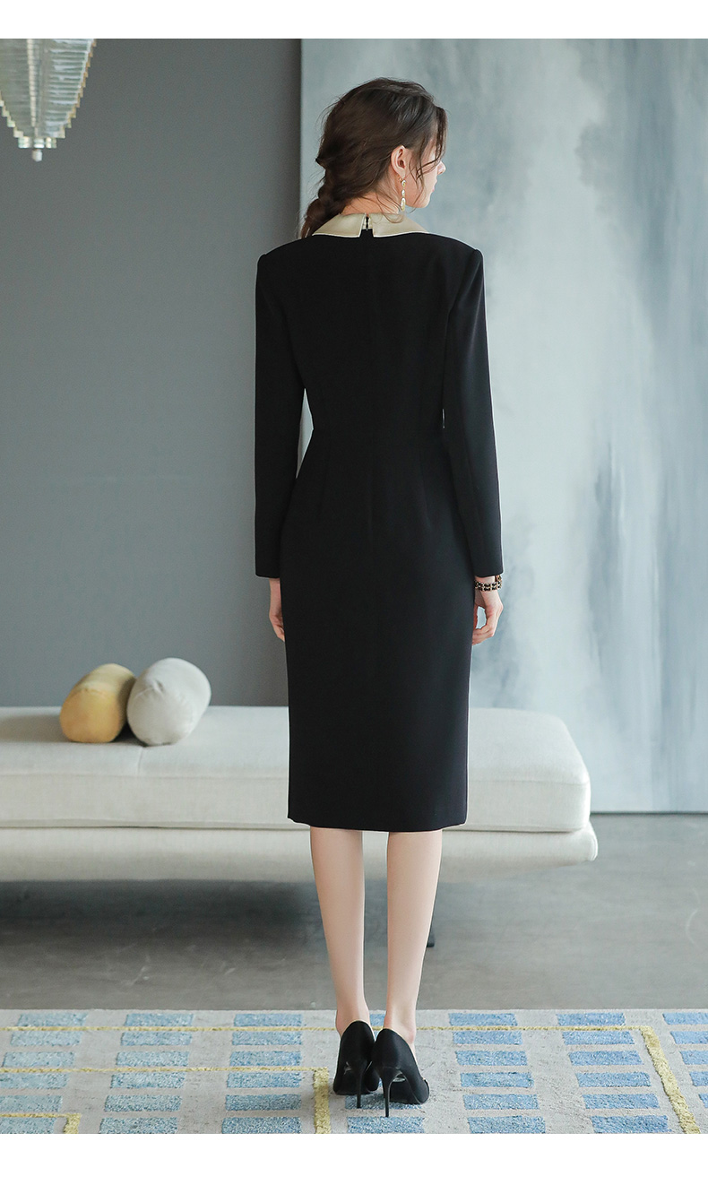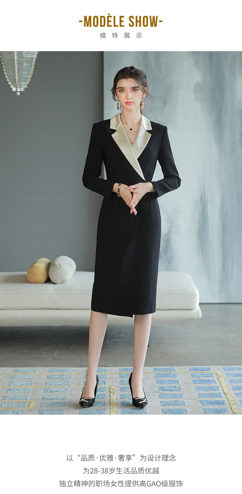 黑色职业连衣裙轻奢感正式场合醋酸西装裙子主持人正装裙Q693
